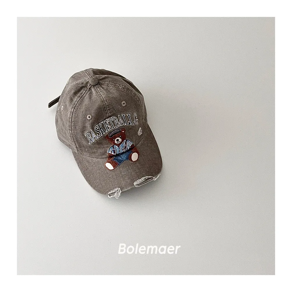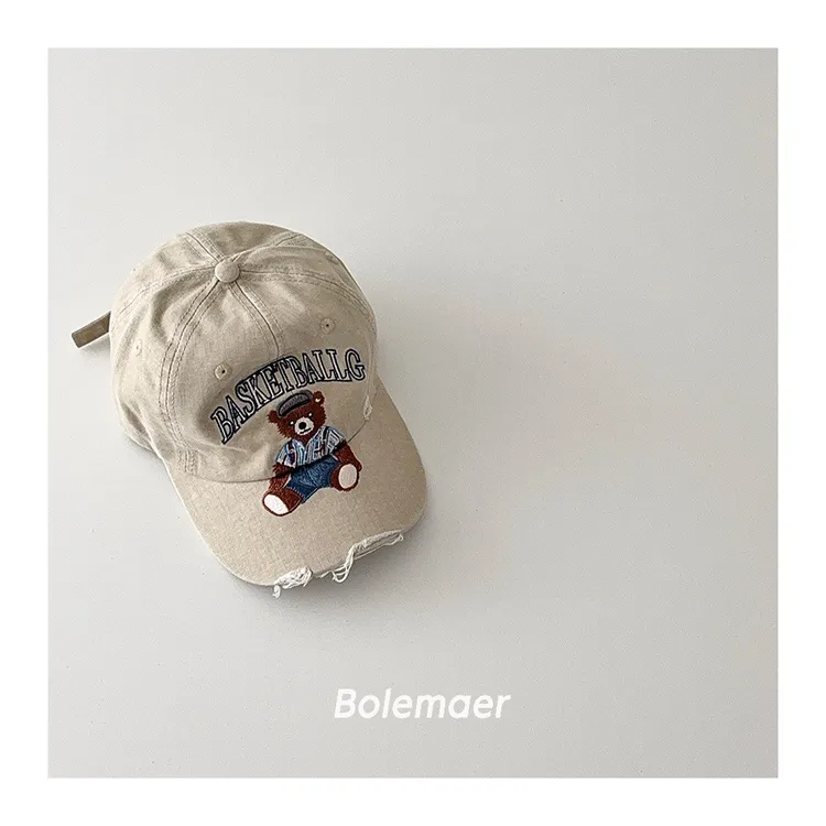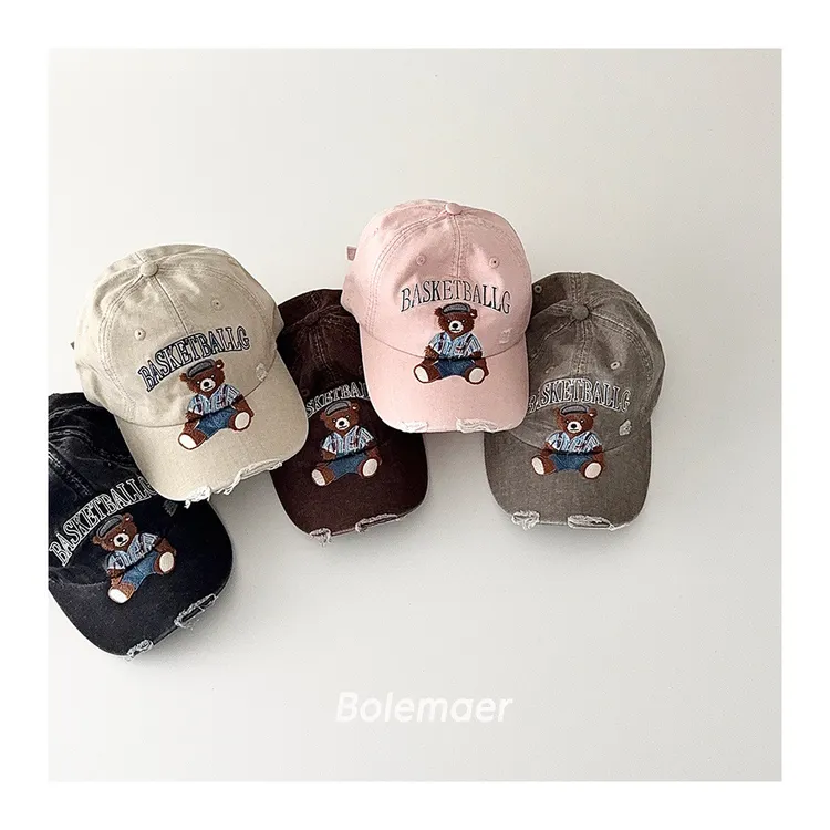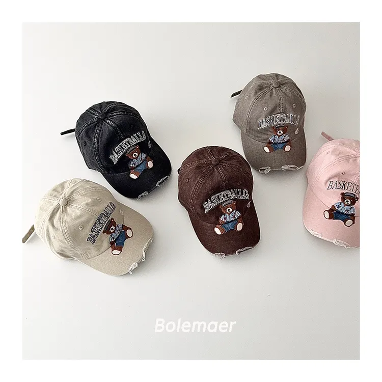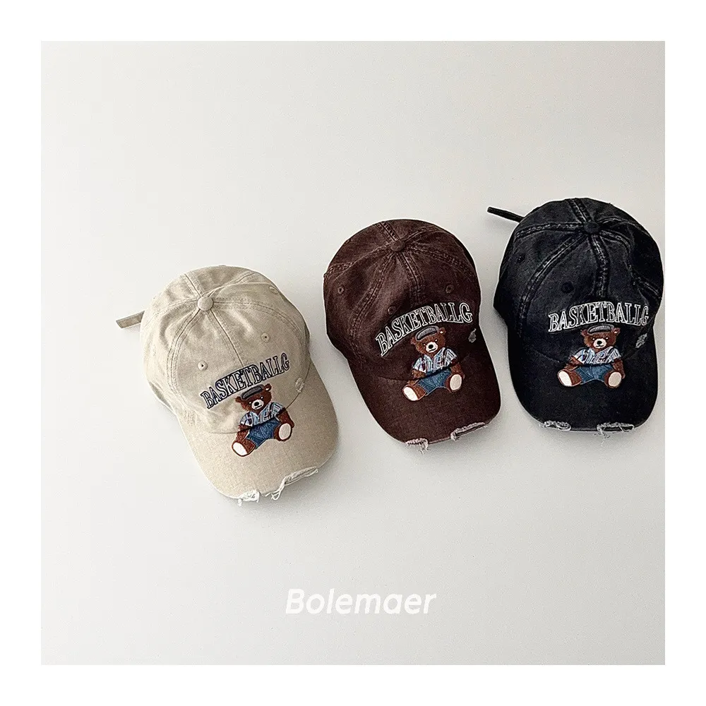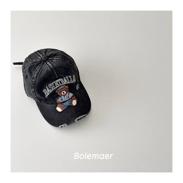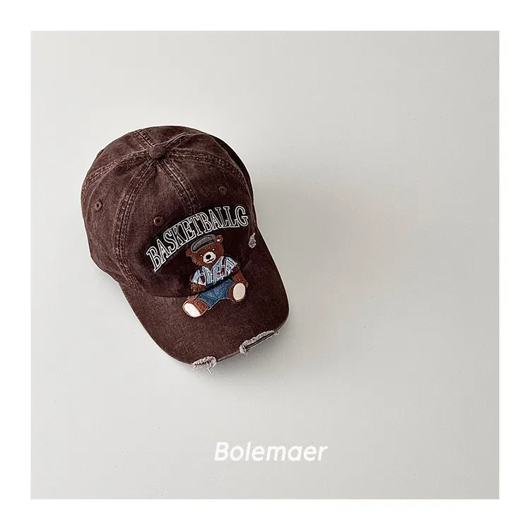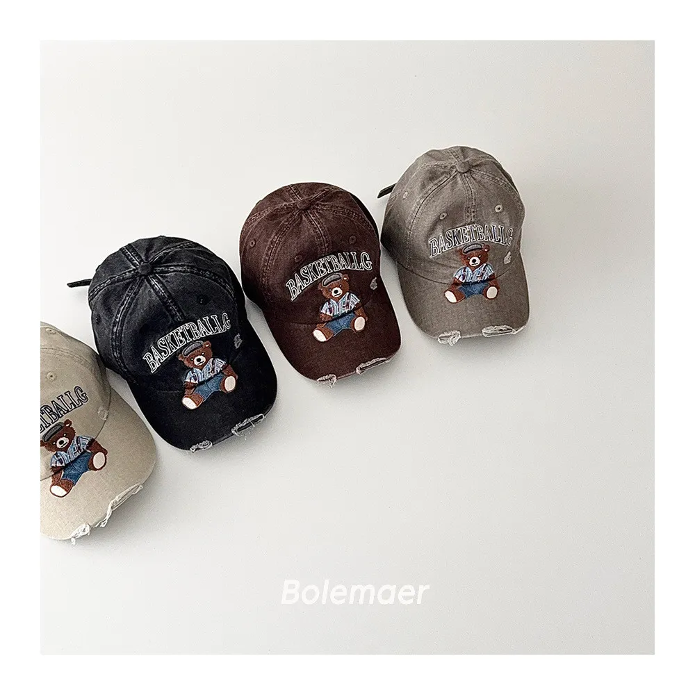 復古水洗仿舊感熊熊遮陽棒球帽-5色