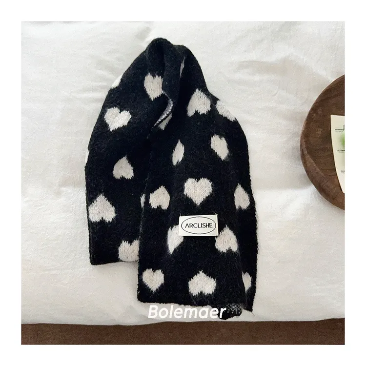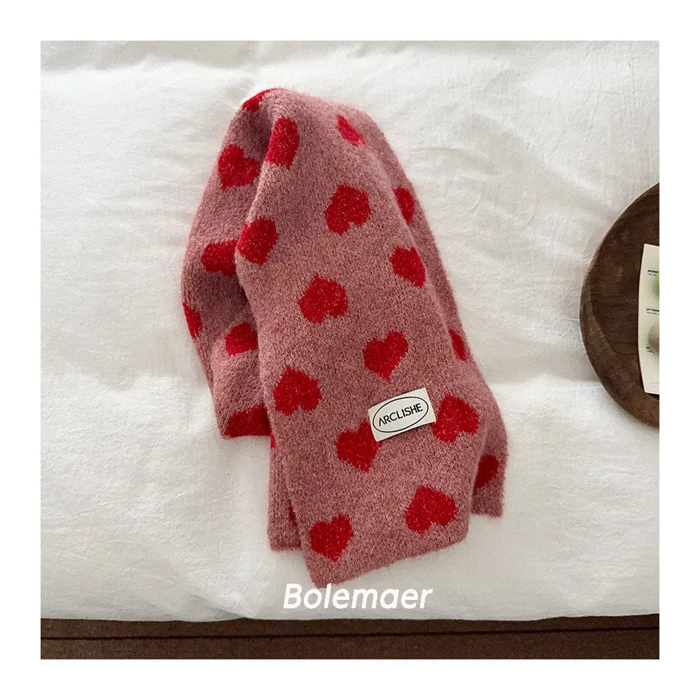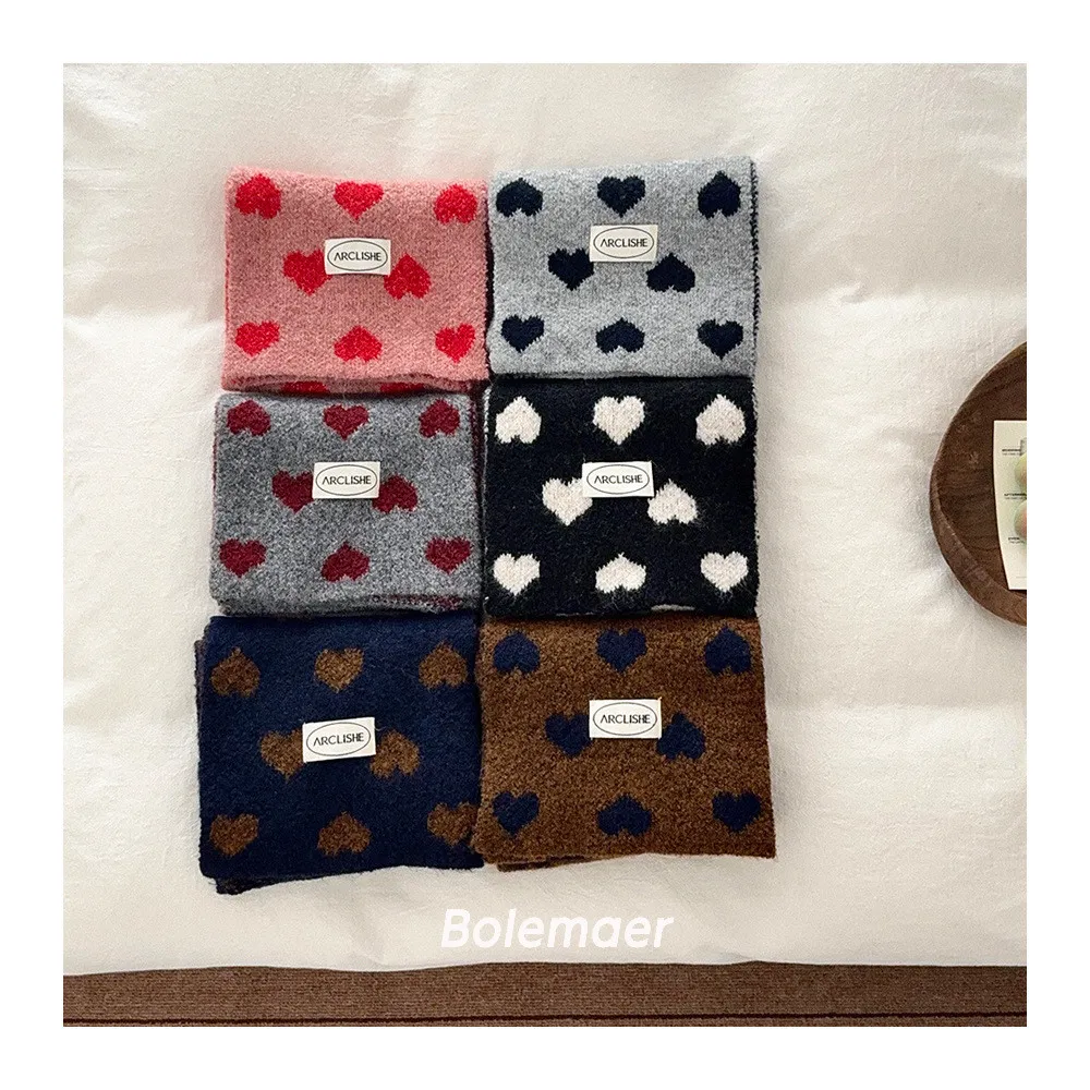 撞色愛心保暖圍巾-6色