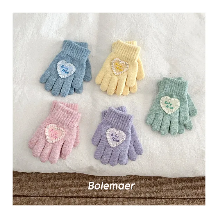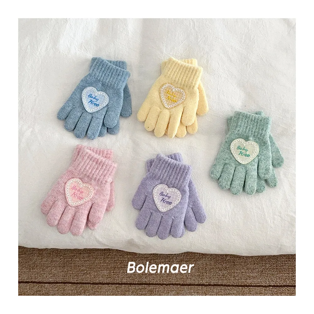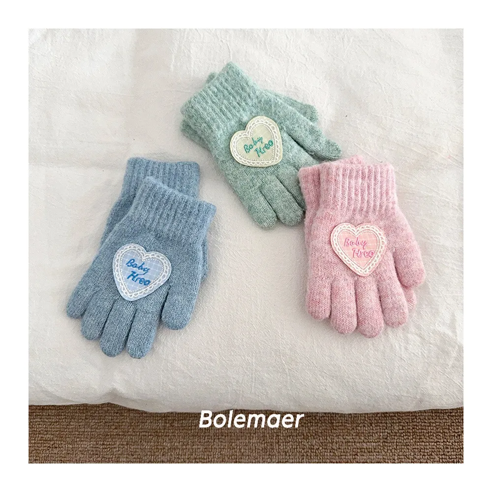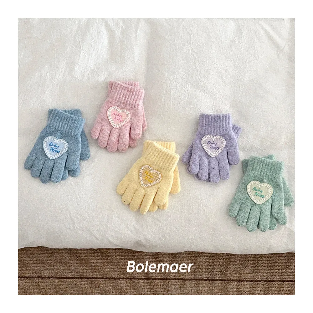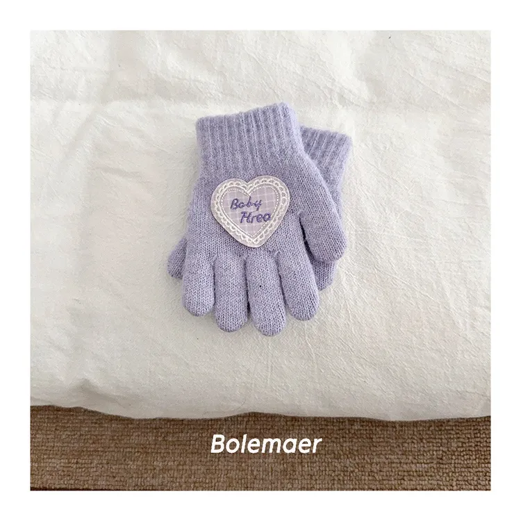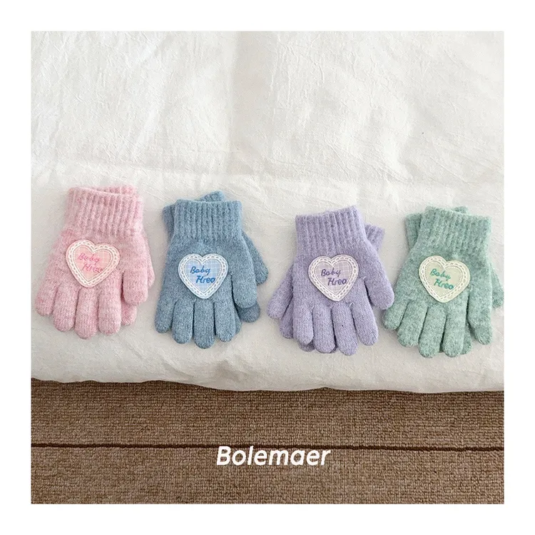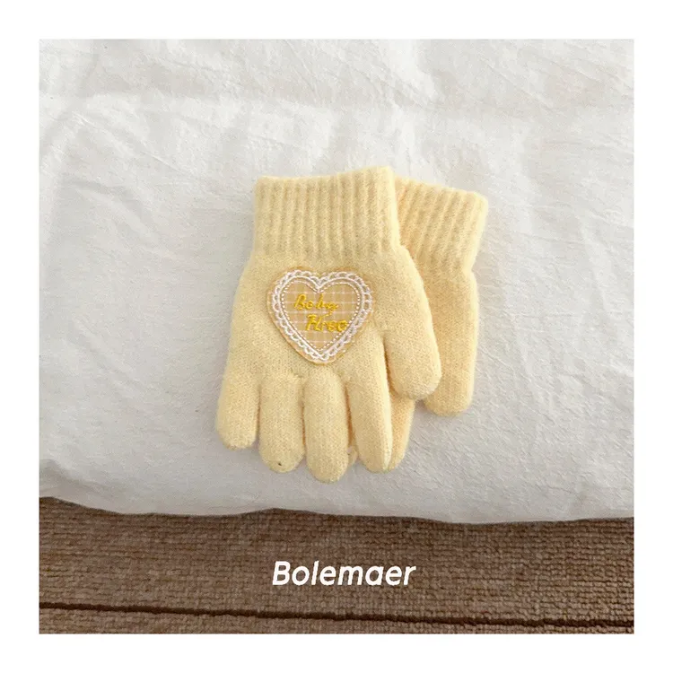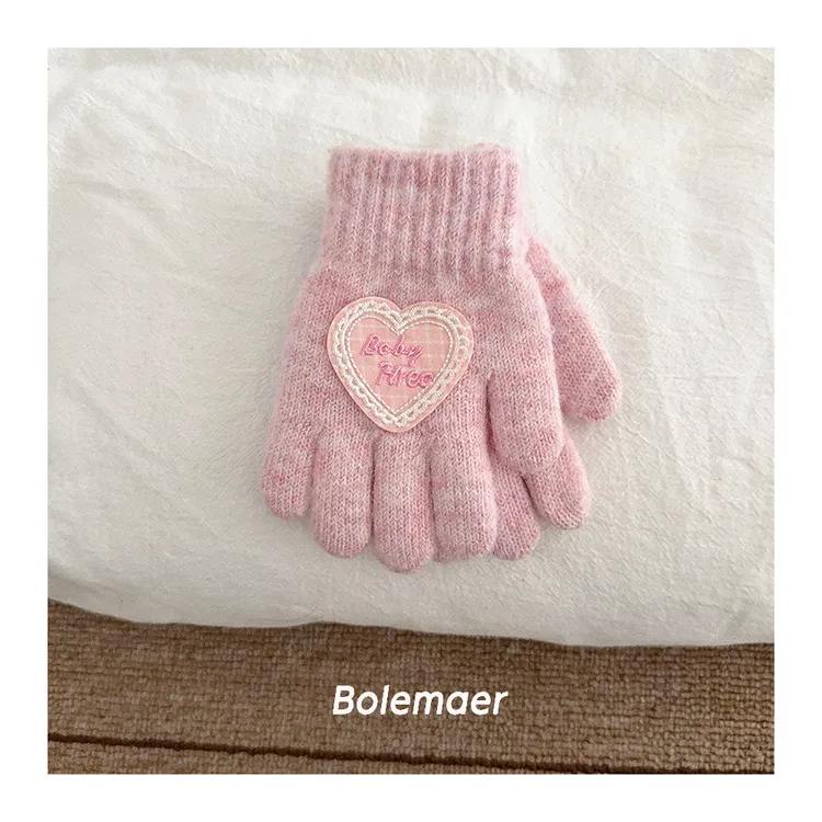 兒童款#軟糯糯百搭愛心手套-5色