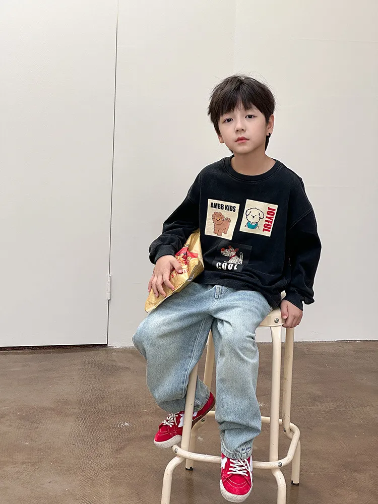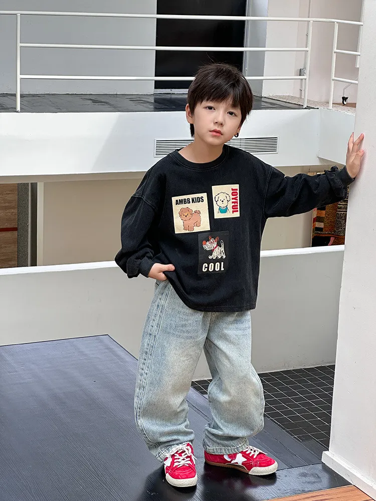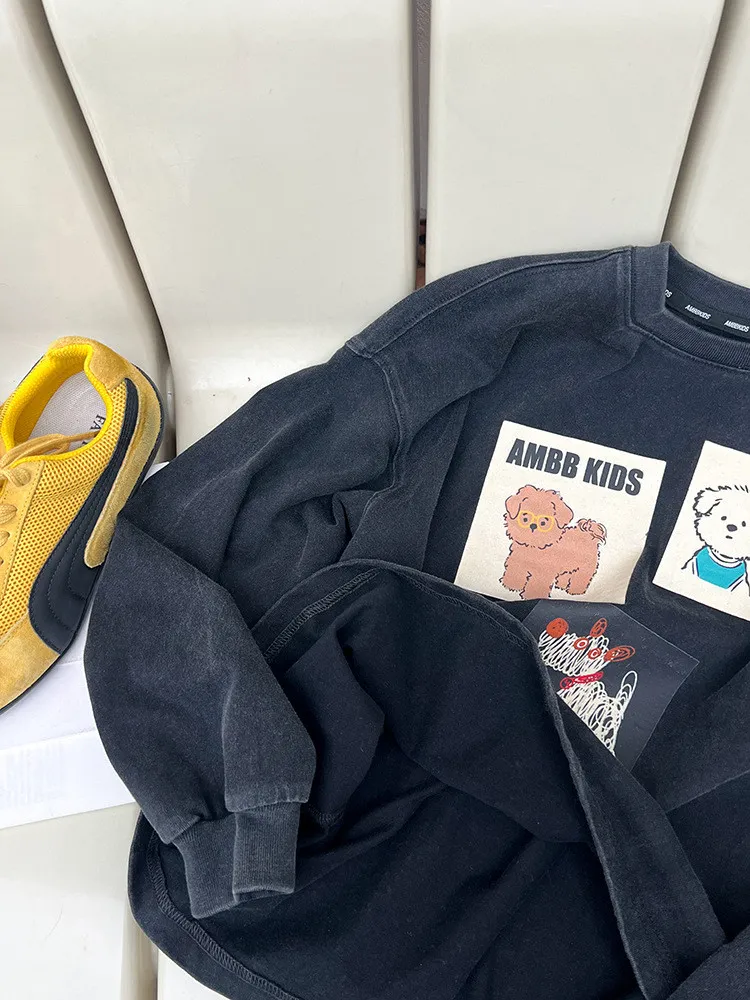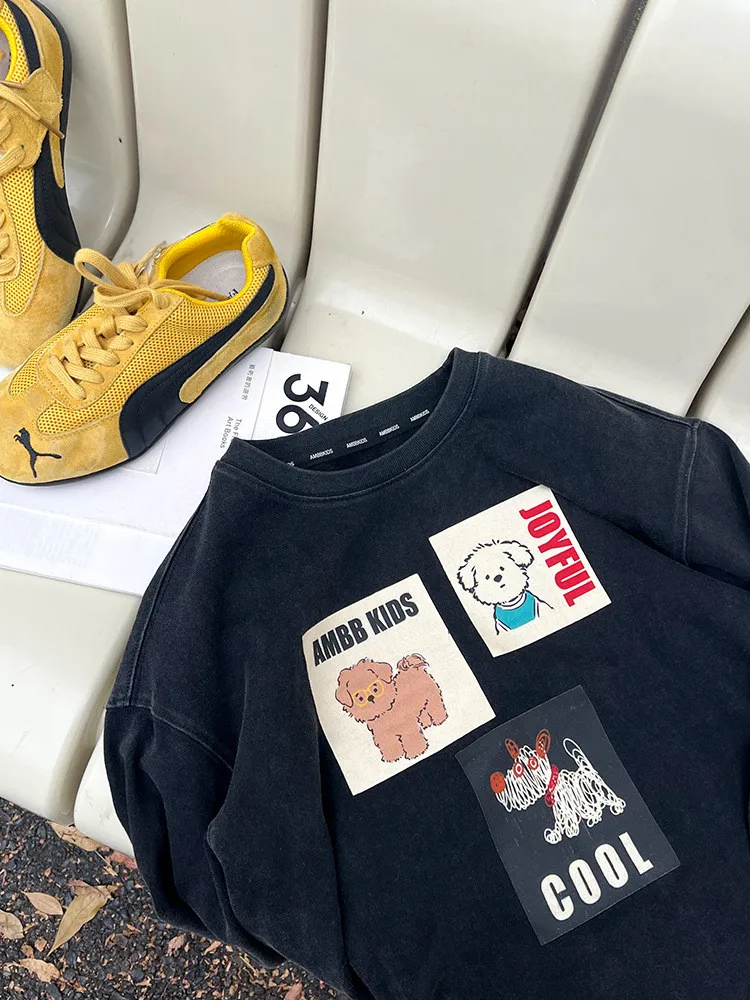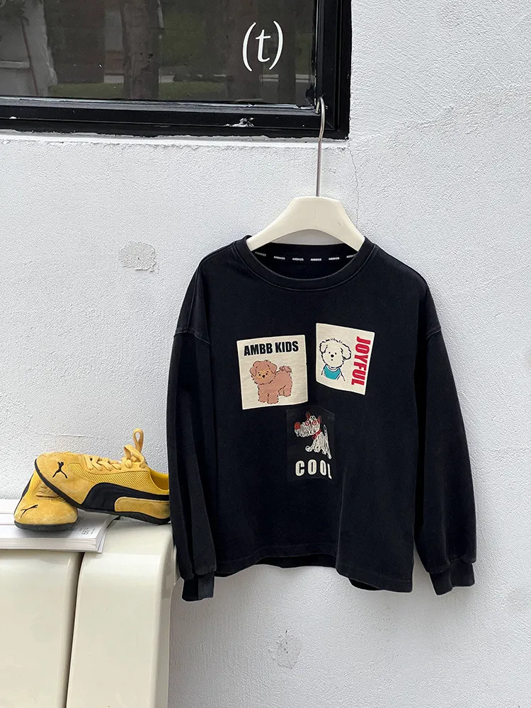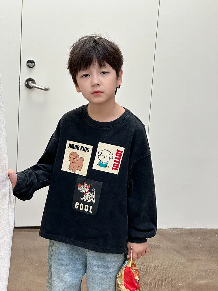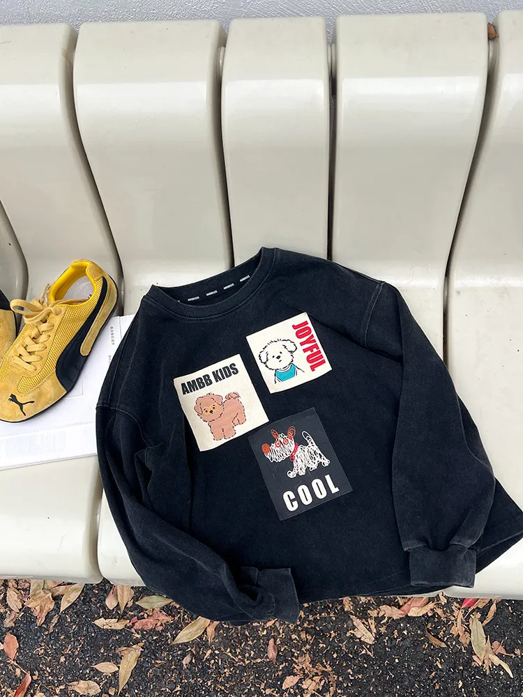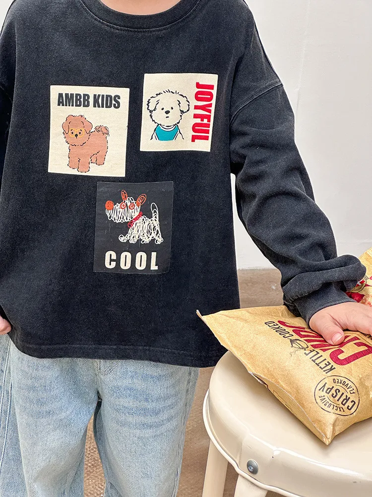 [90-150碼]仿舊感小狗印花休閒上衣