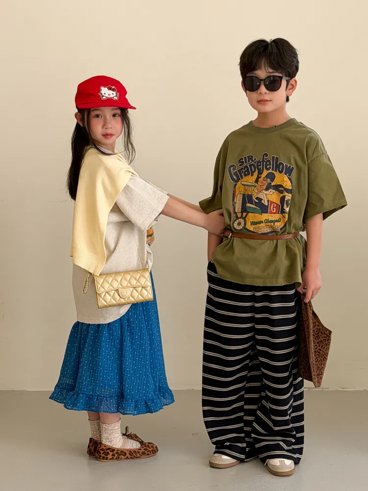 材質:95%棉💡試穿報告 👦🏻model身高135cm 體重30kg 拍照穿140碼 👧🏻model身高125cm 體重26kg 拍照穿130碼 🌟版型寬鬆無需再大一碼可參考下方詳細尺寸表手工測量存在1-3cm誤差屬正常非瑕疵。