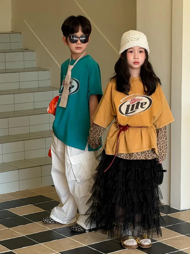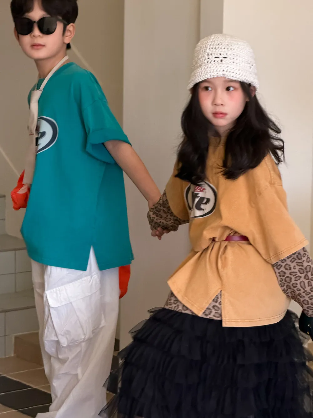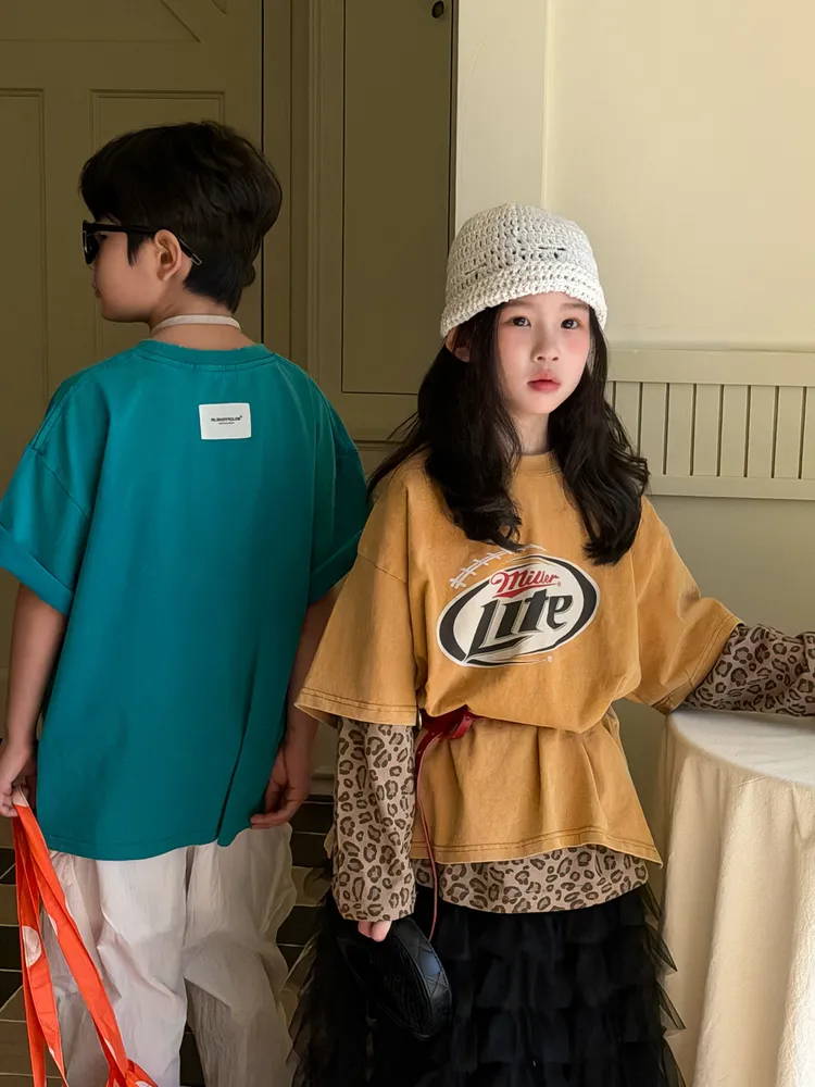 (100-150碼)厚磅洗褪字母寬鬆短T-2色