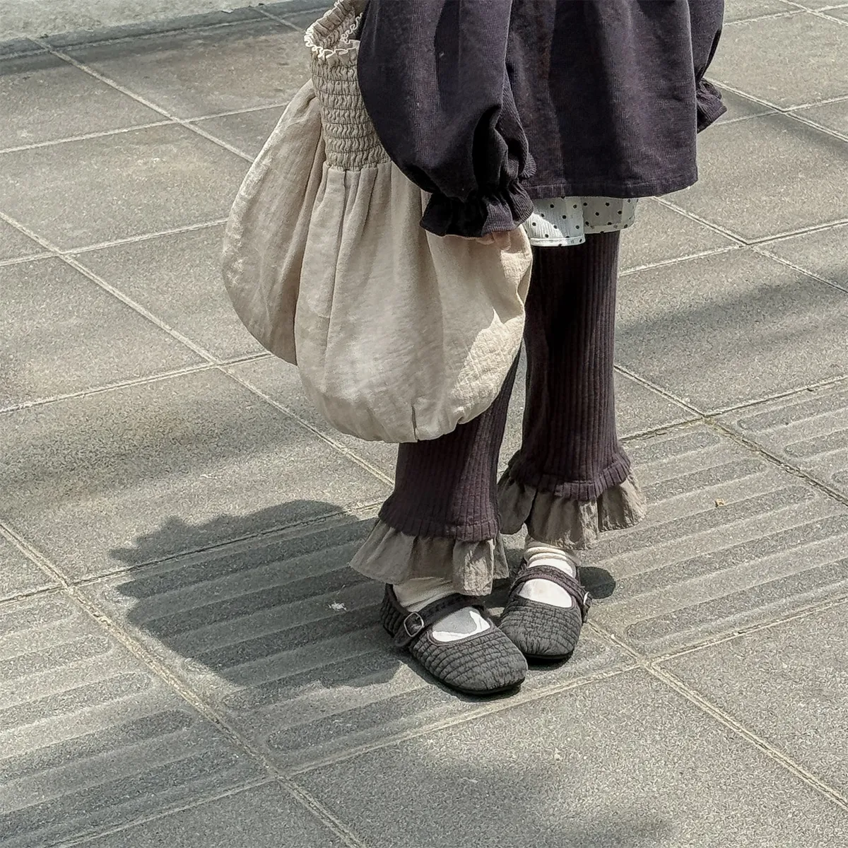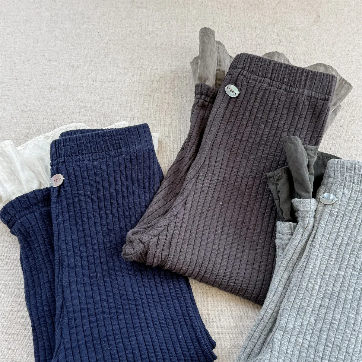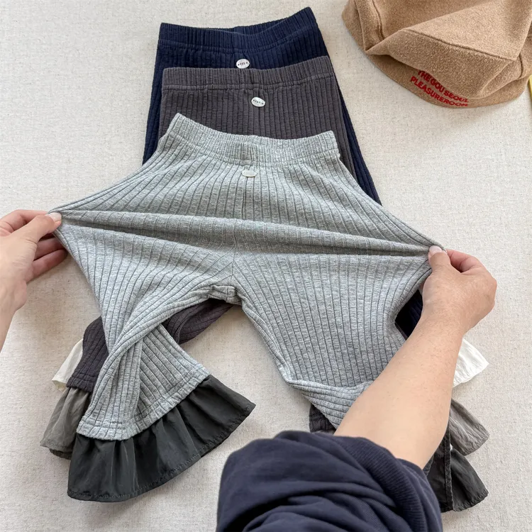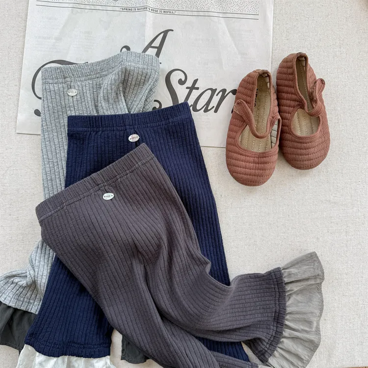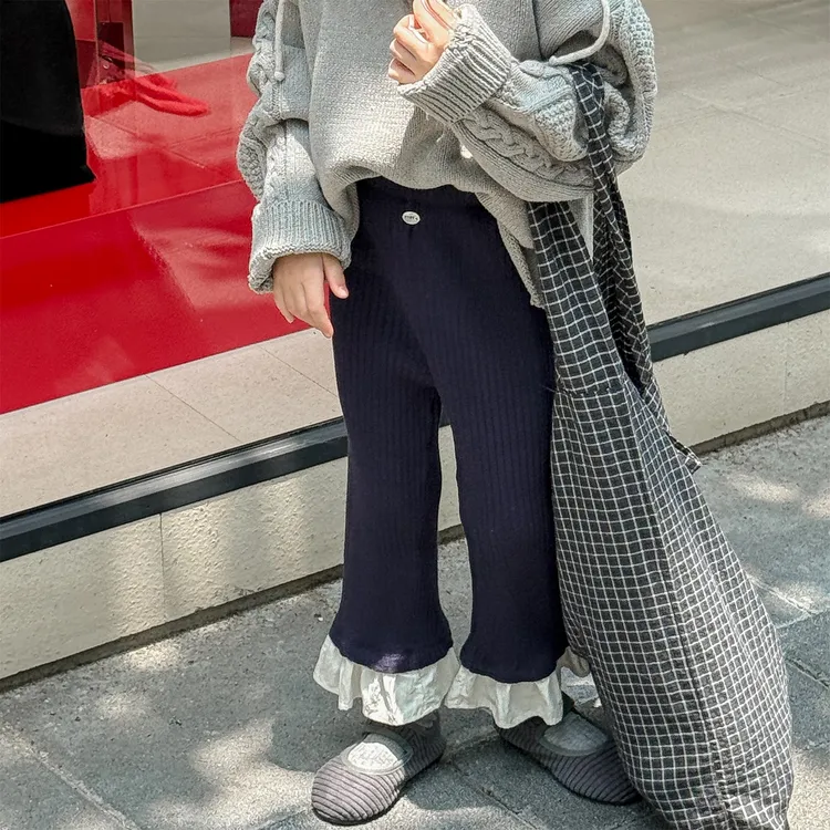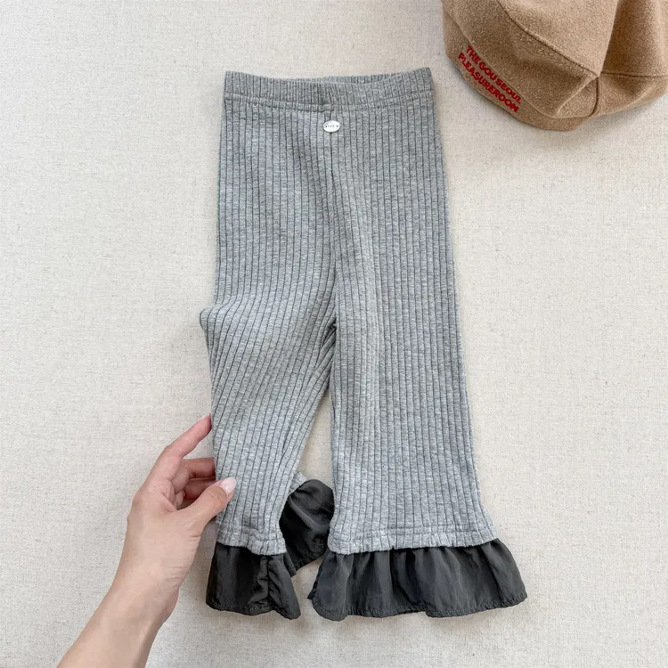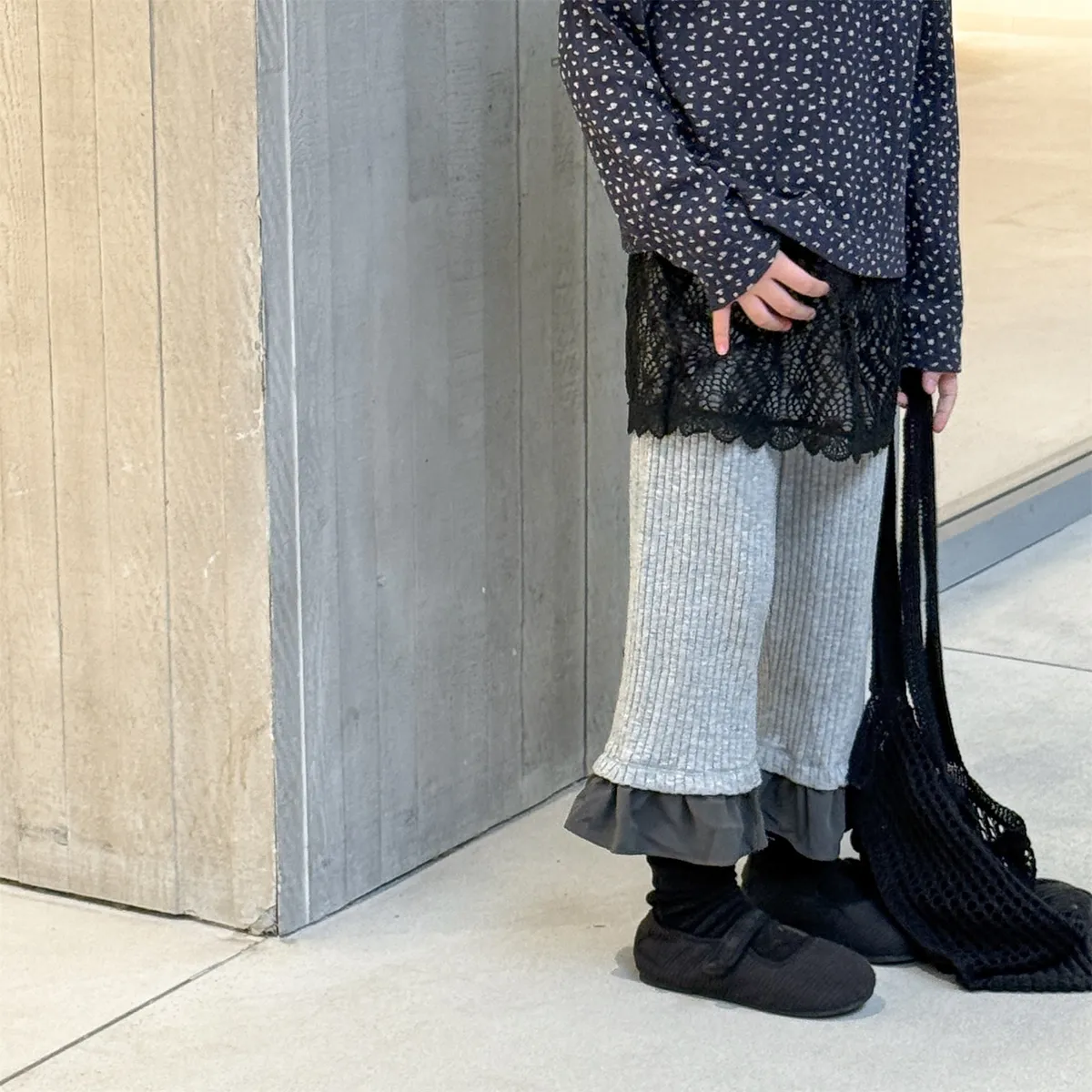 [90-130碼]基礎百搭花邊坑條打底褲-3色