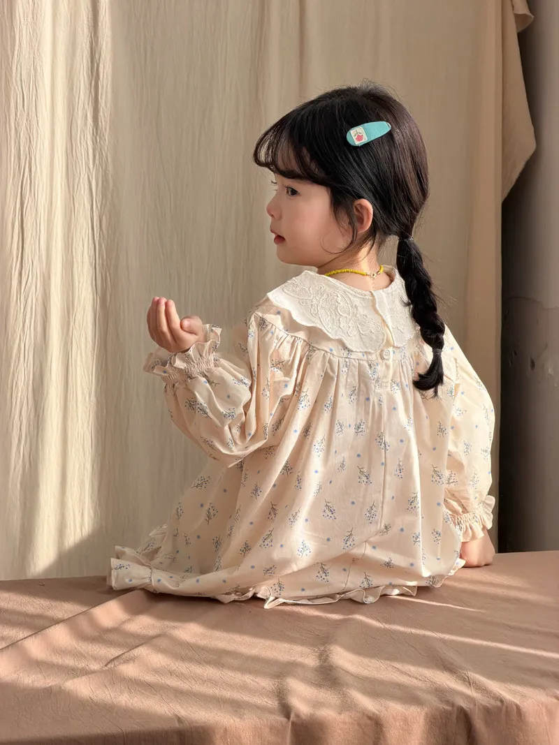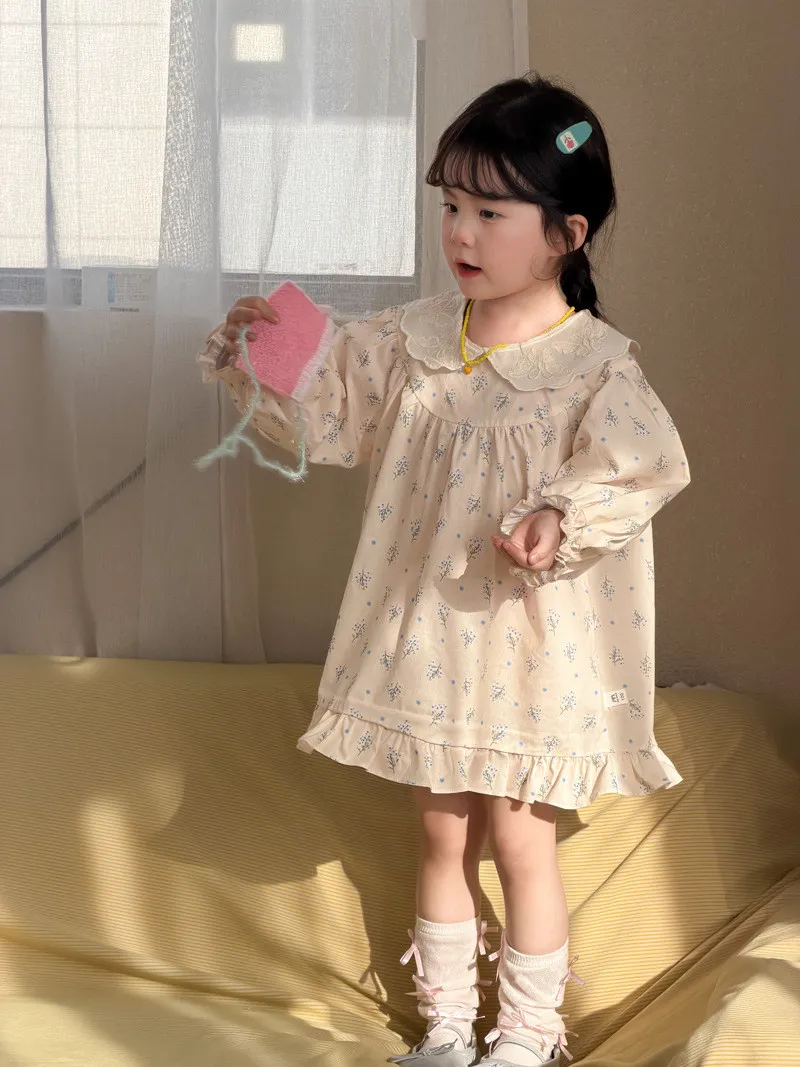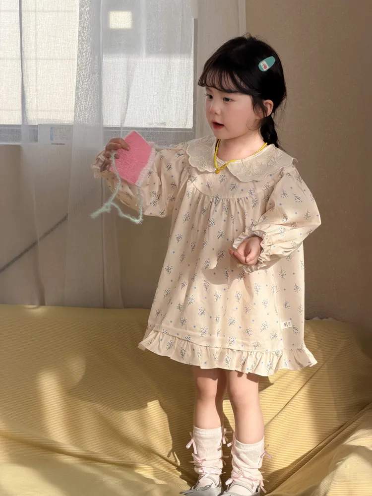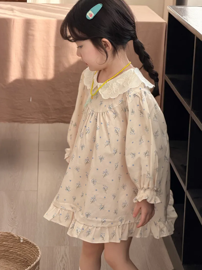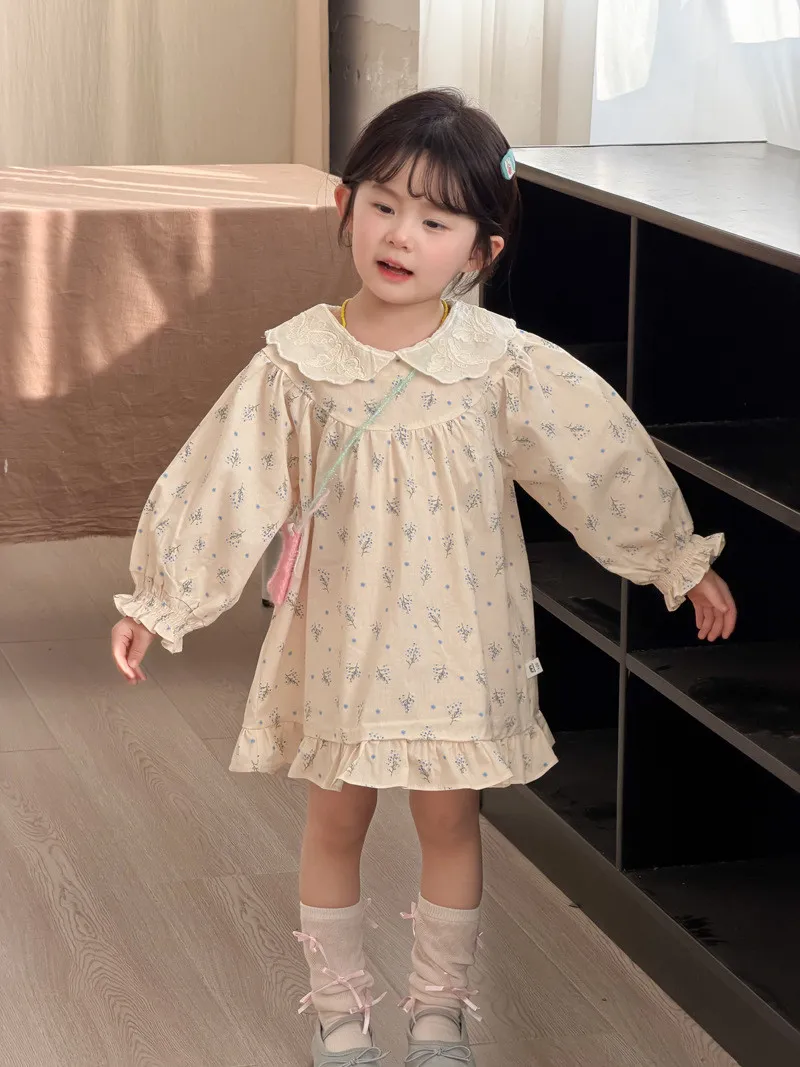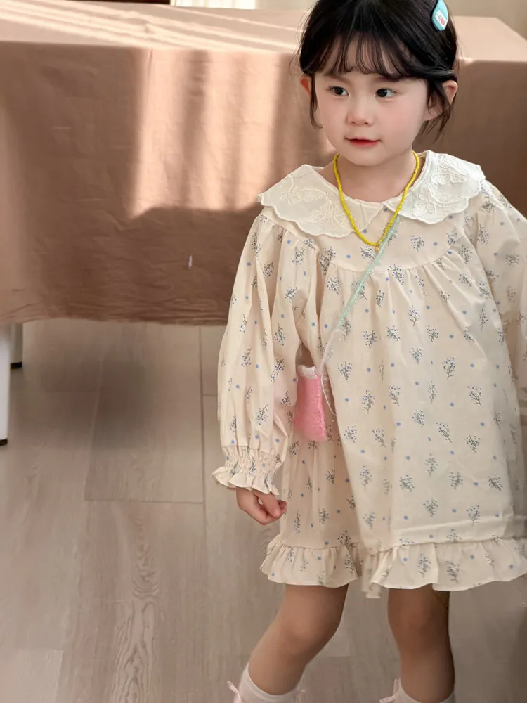 (90-140碼)甜美清新碎花翻領連身裙