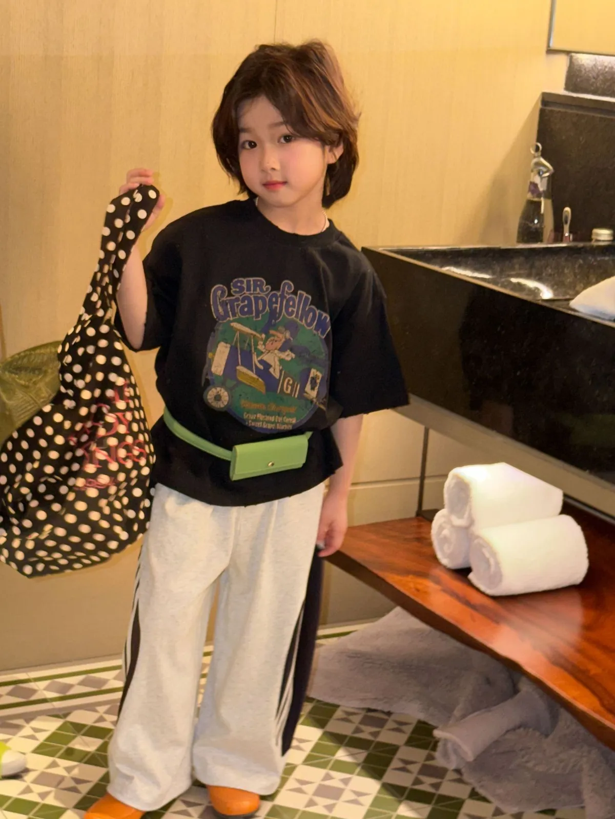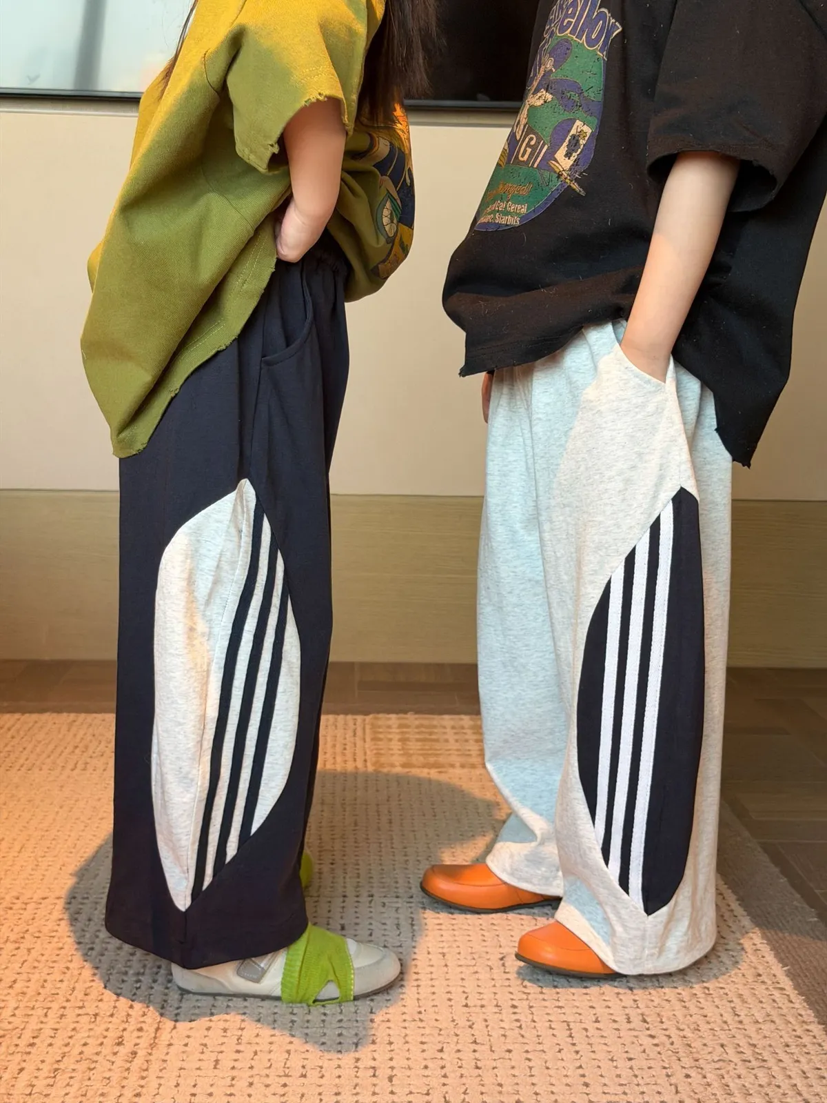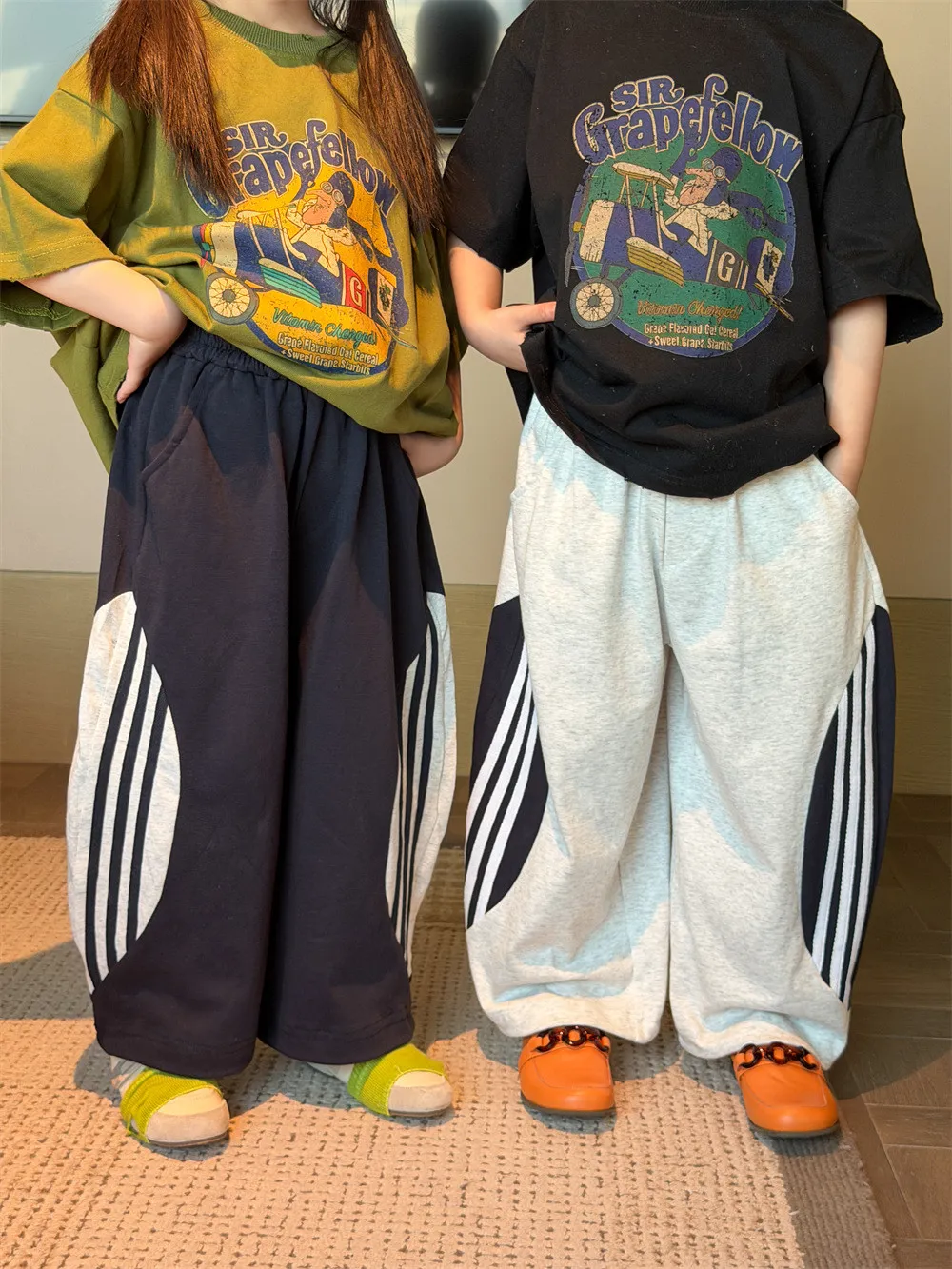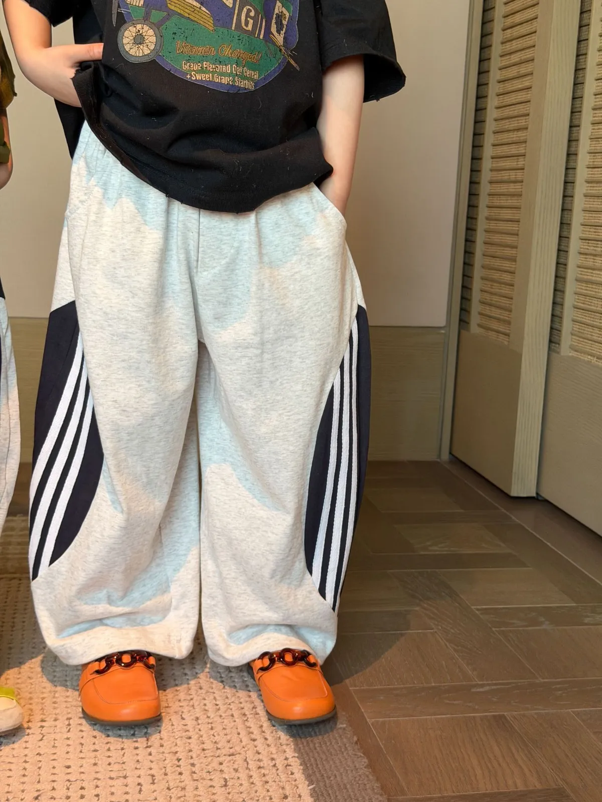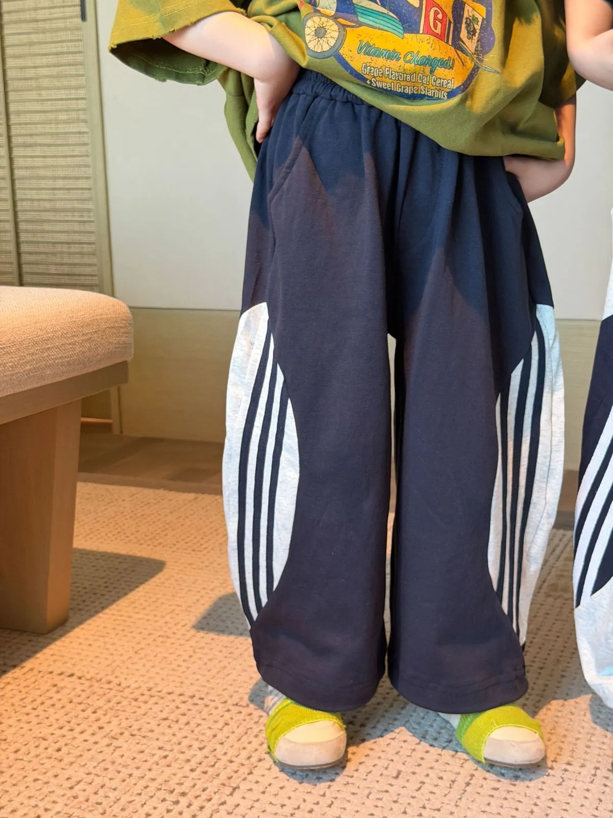 材質:75%棉💡試穿報告 👦🏻model身高127cm 體重24kg 穿130碼 👧🏻model身高123cm 體重20kg 穿130碼⚠️寬鬆版型無需再大一碼 可參考下方尺寸對照表手工測量存在1-3cm誤差屬正常非瑕疵。