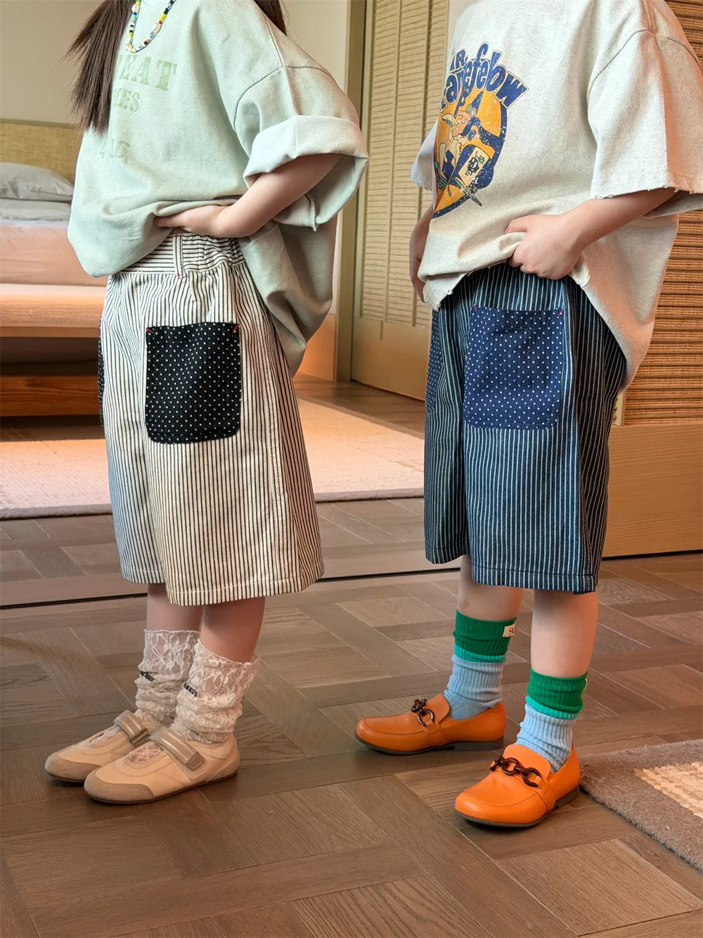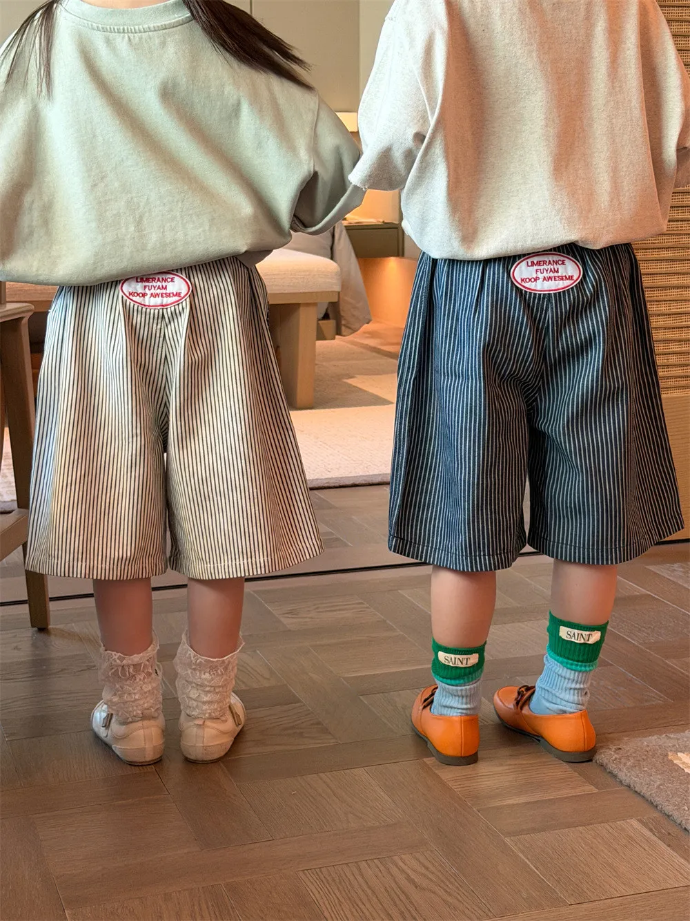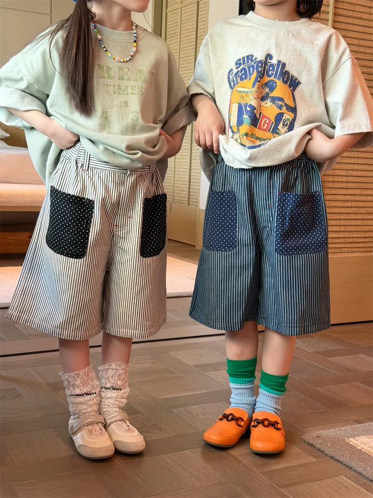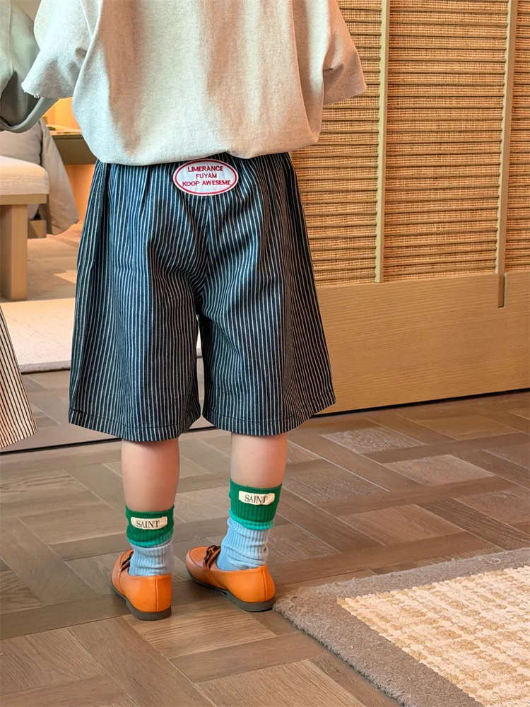 (90-150碼)日系百搭貼標牛仔五分中褲-2色