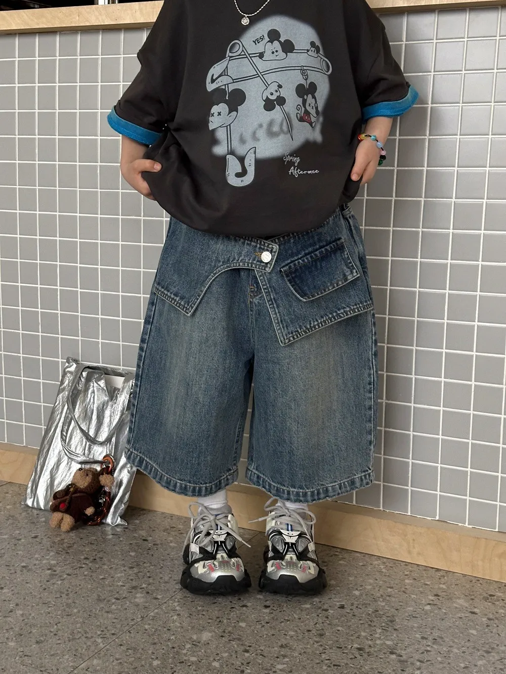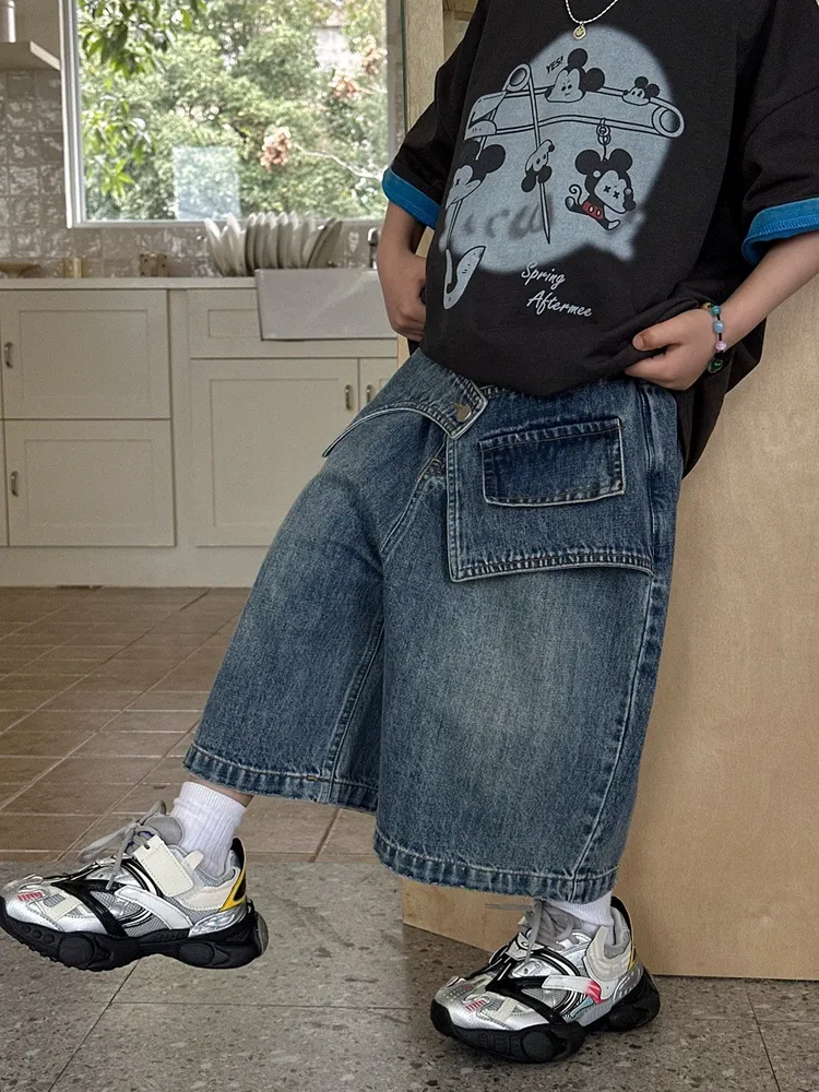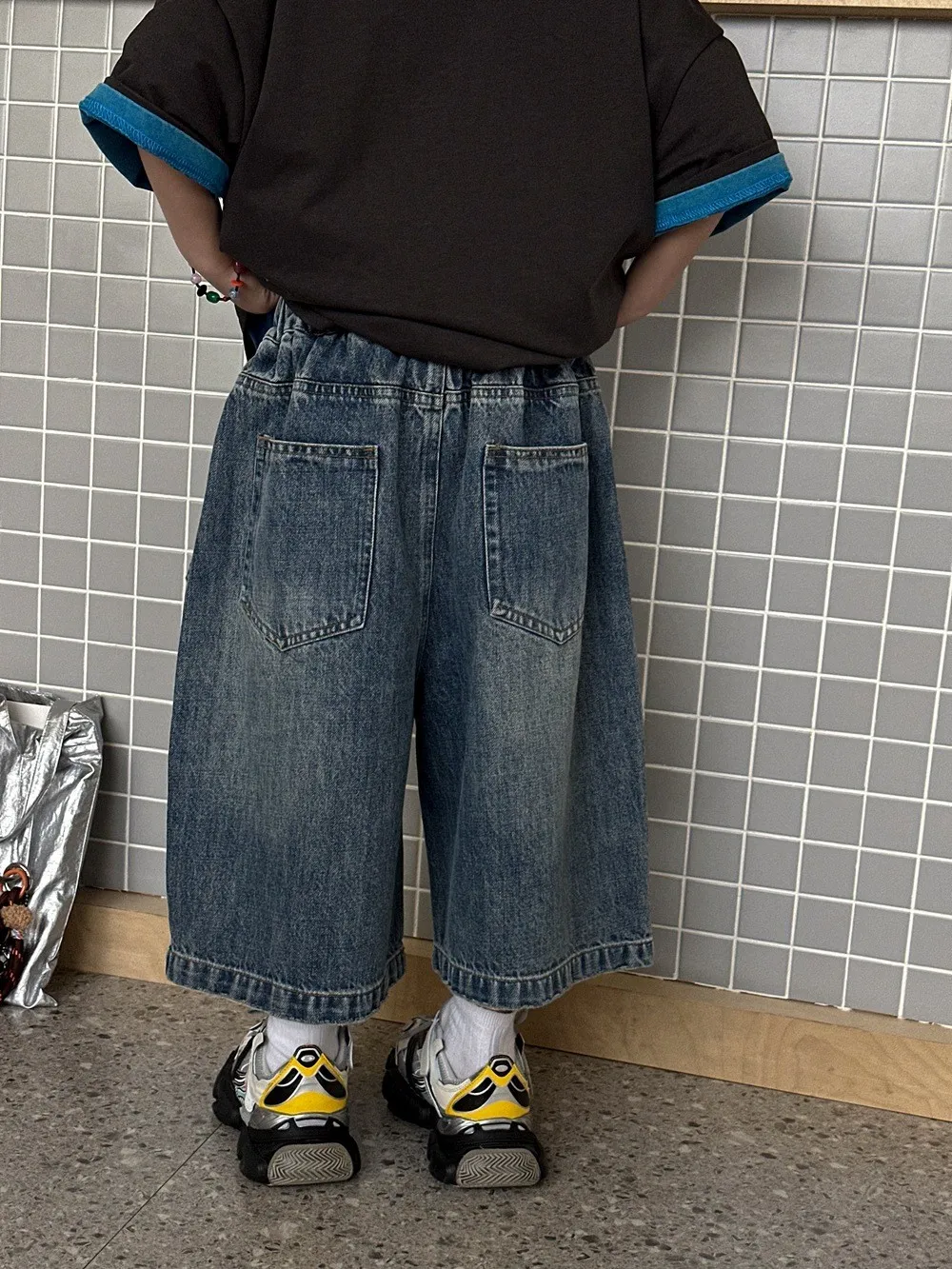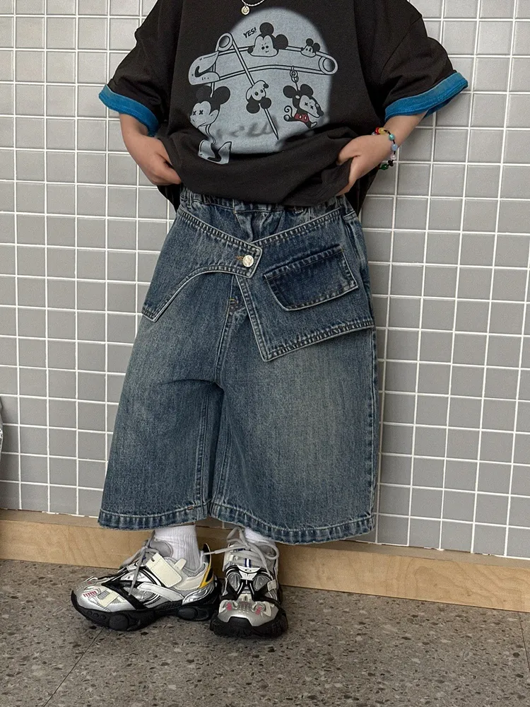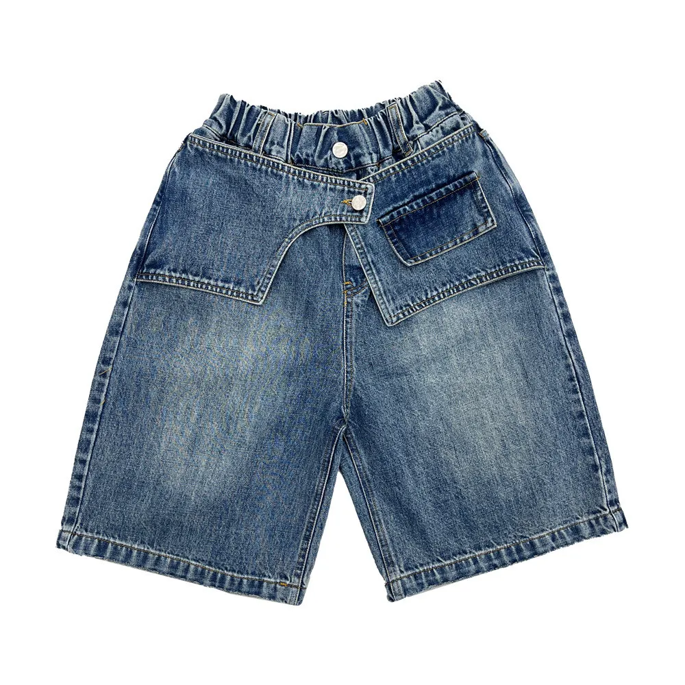 (100-150碼)設計感假兩件牛仔七分褲