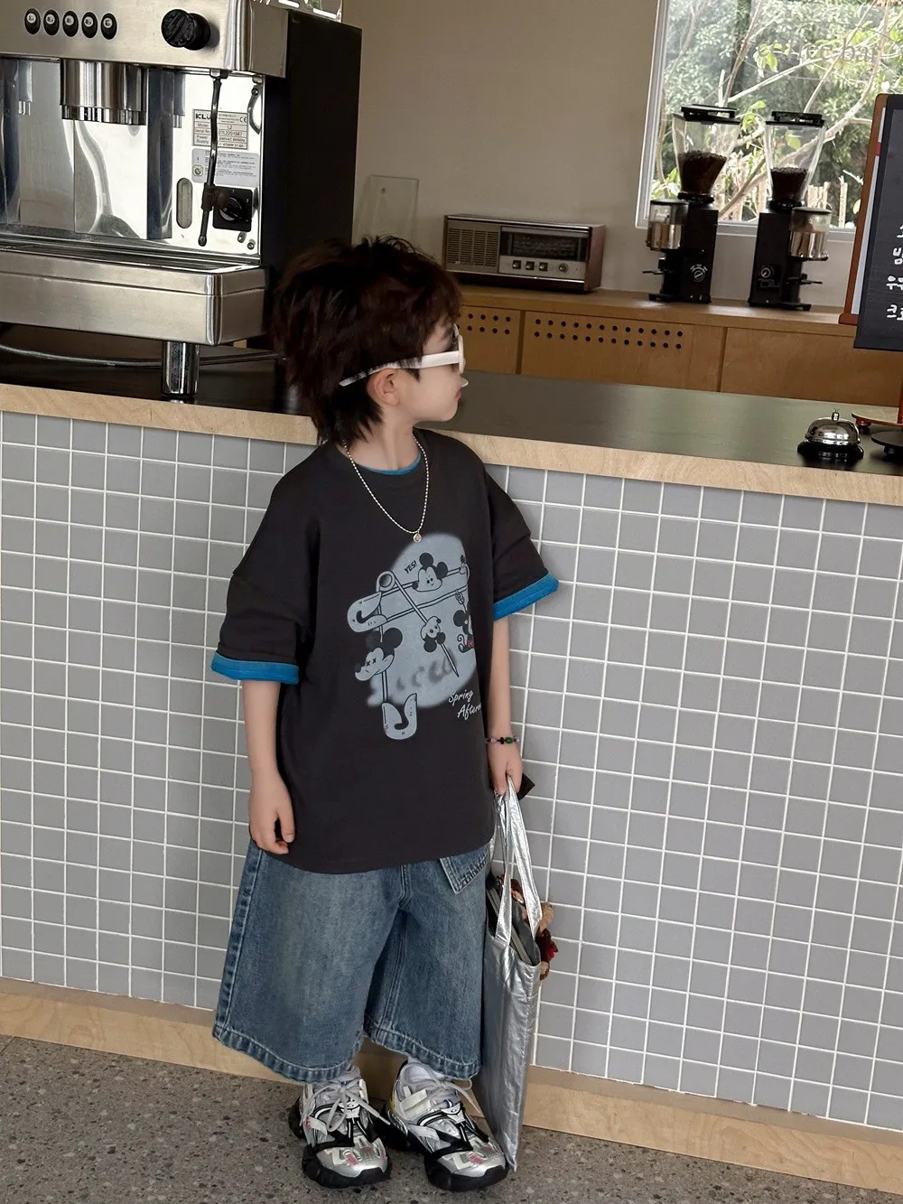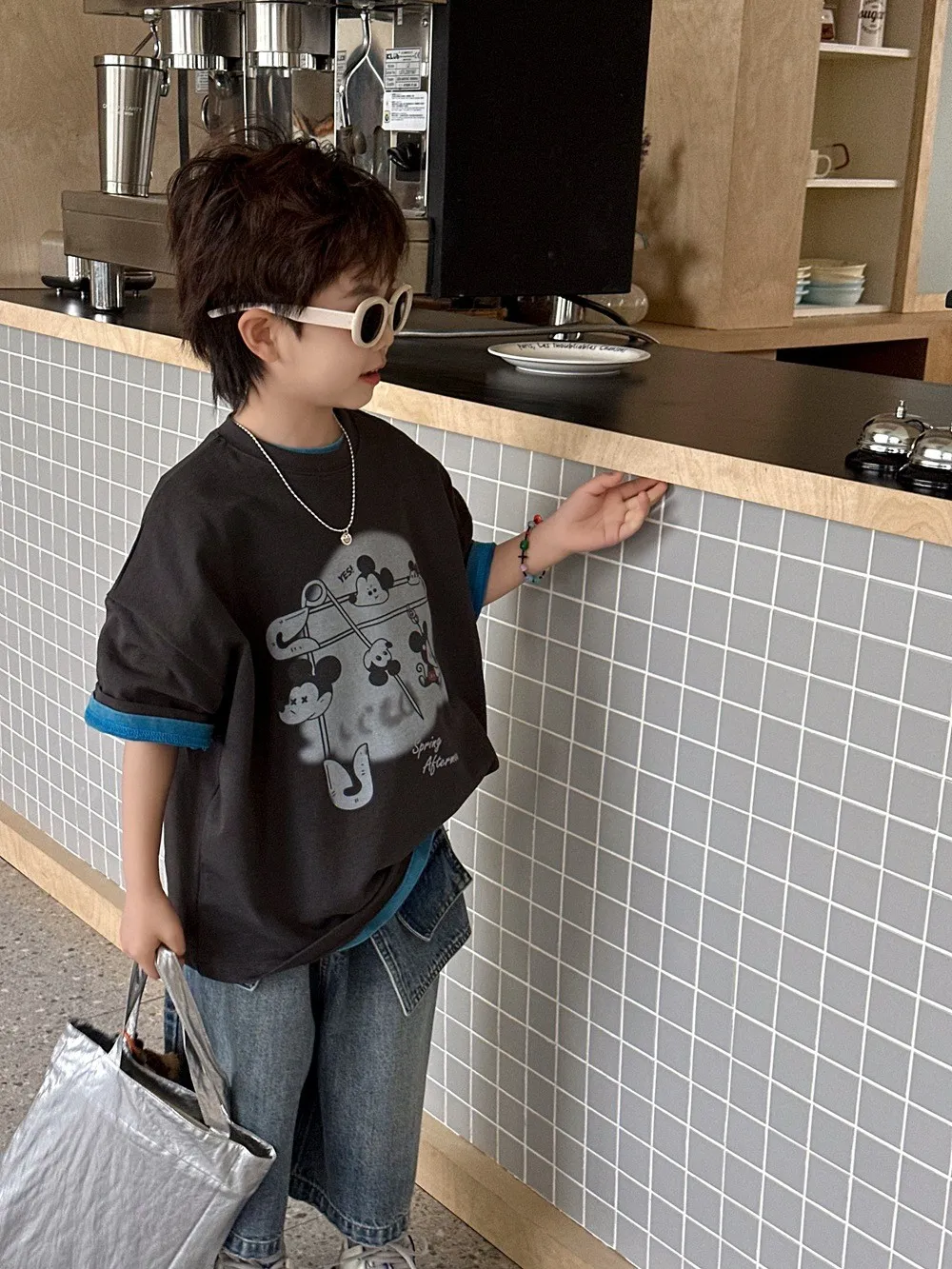 Model 身高118cm 體重21kg 拍照著130寬鬆