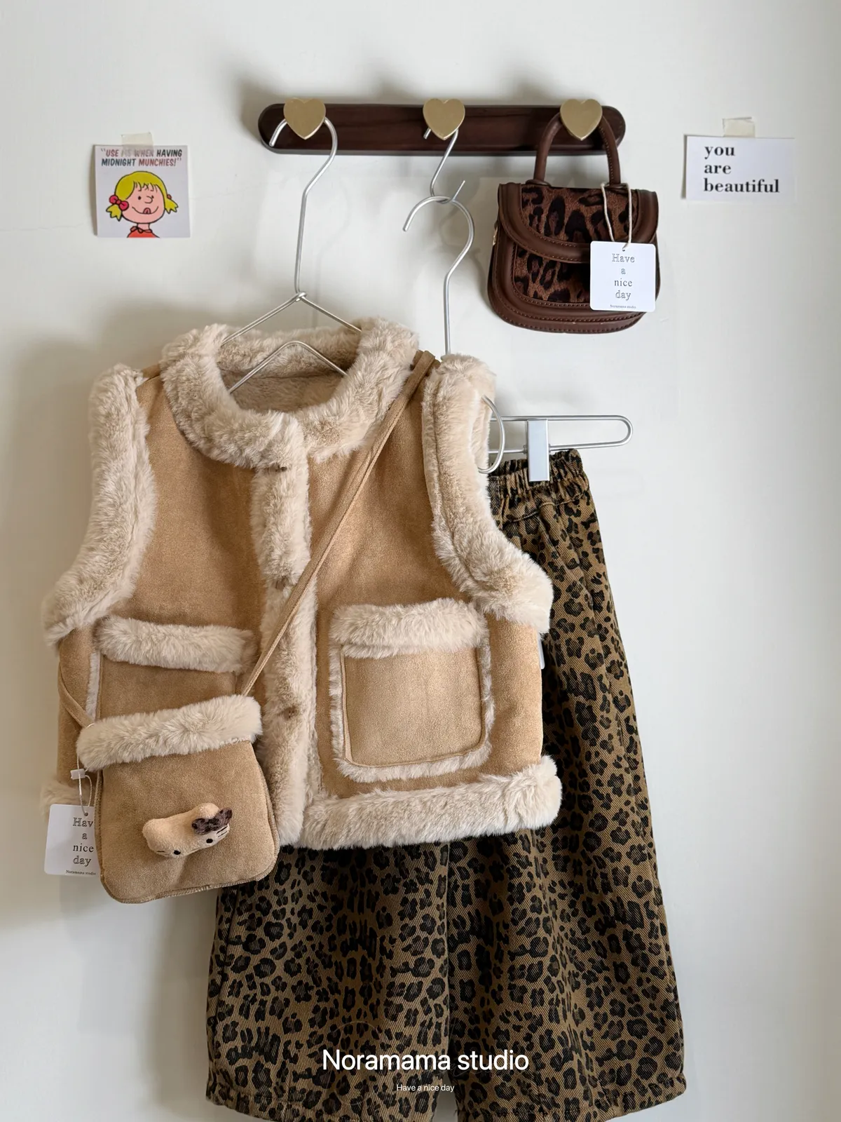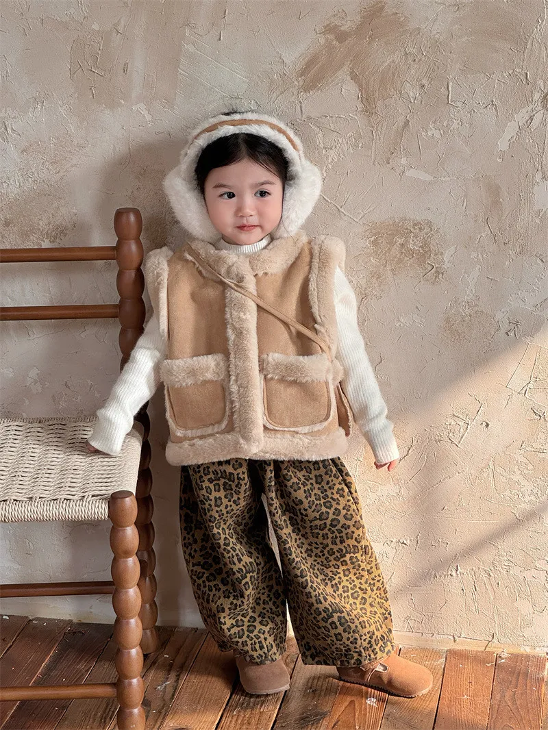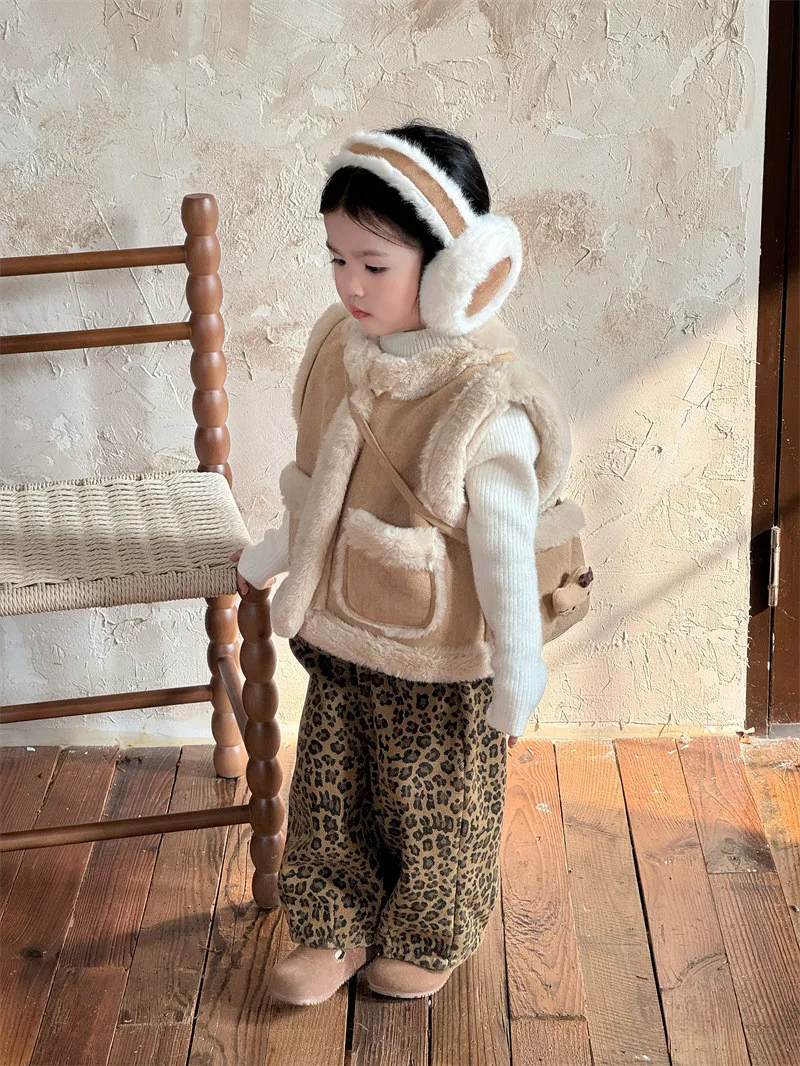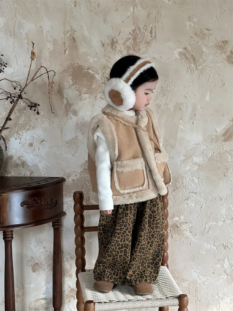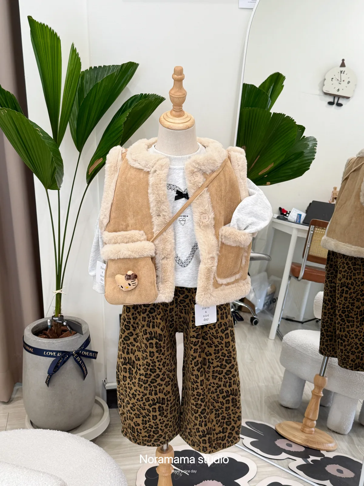 [90-140碼]暖呼呼麂皮背心/加絨款豹紋彎刀褲