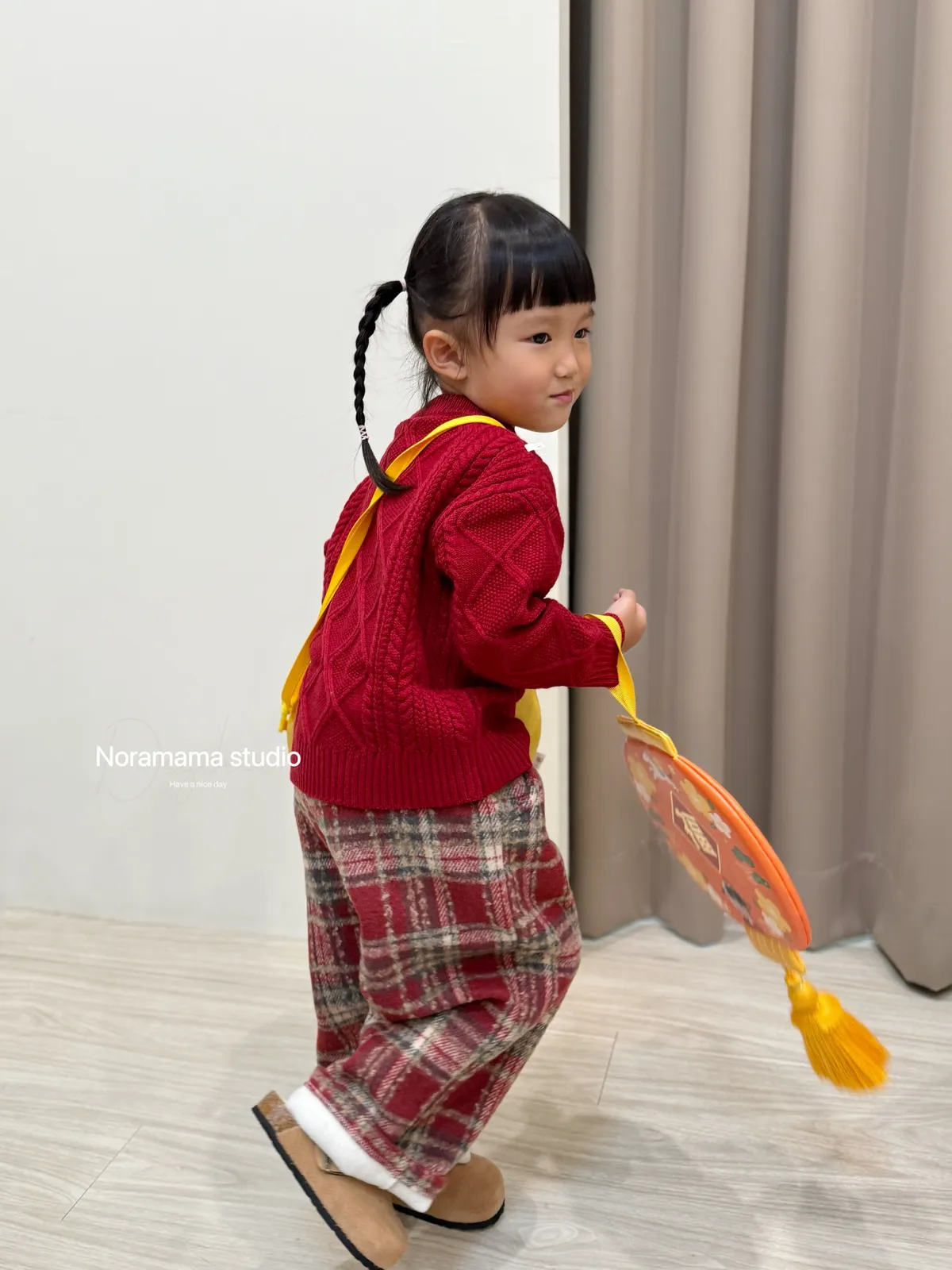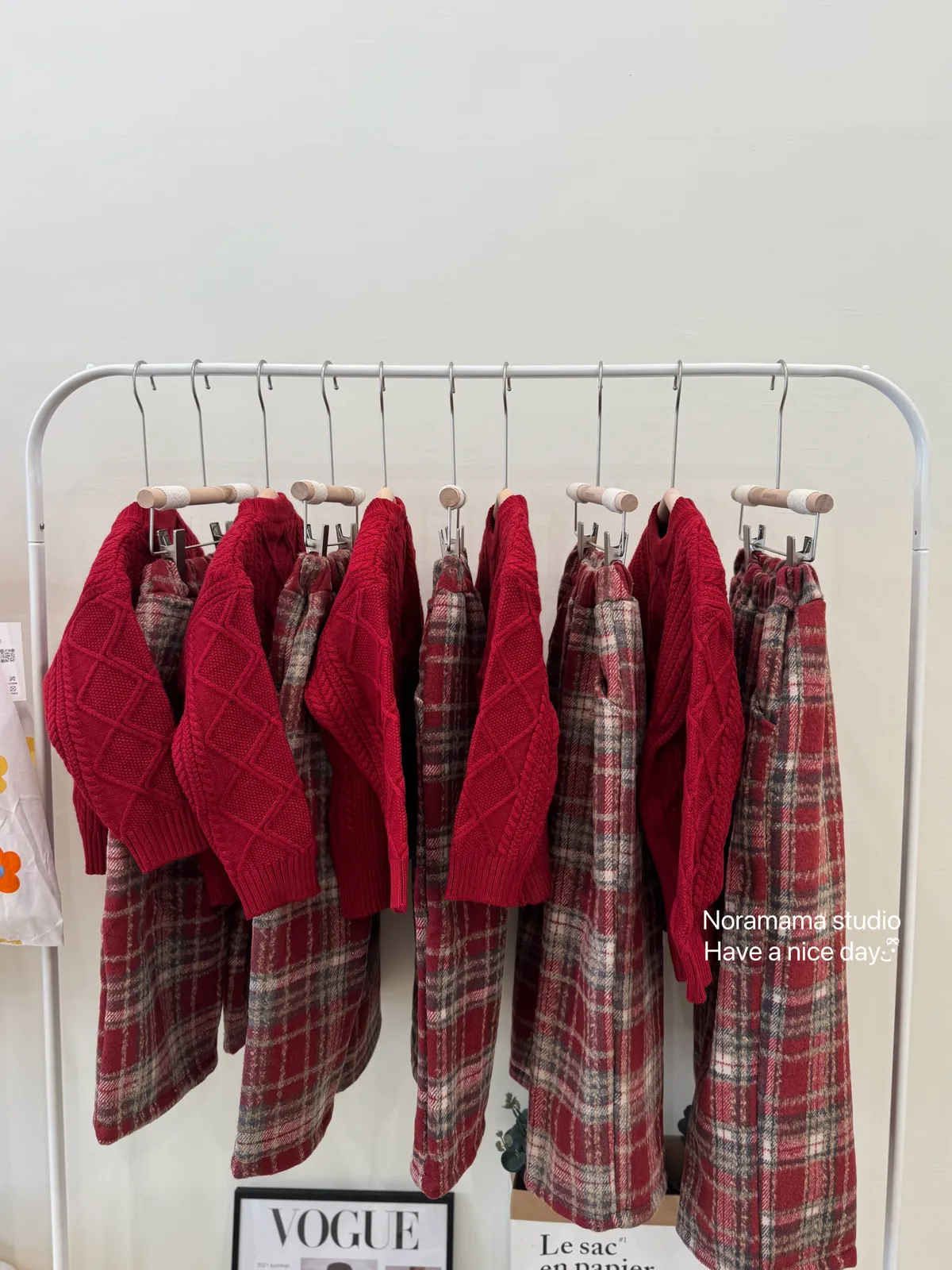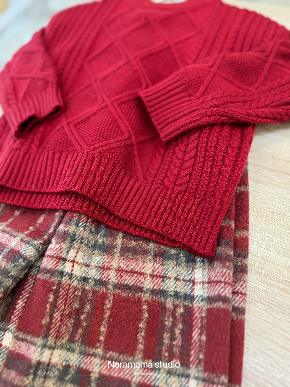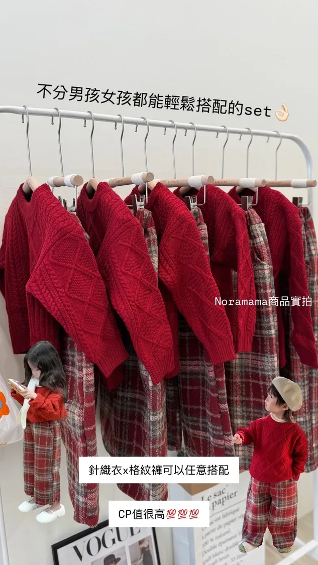 [90-140碼]加絨款#喜氣洋洋針織格紋套裝