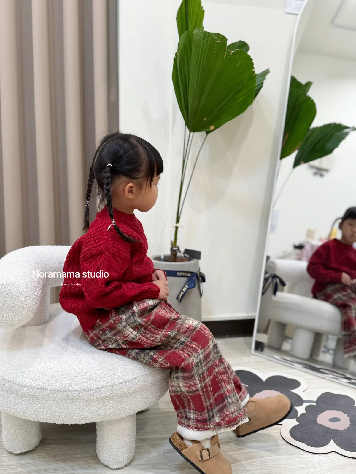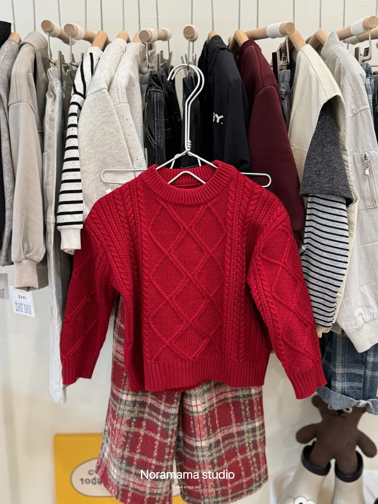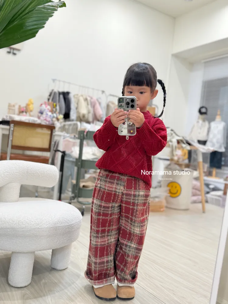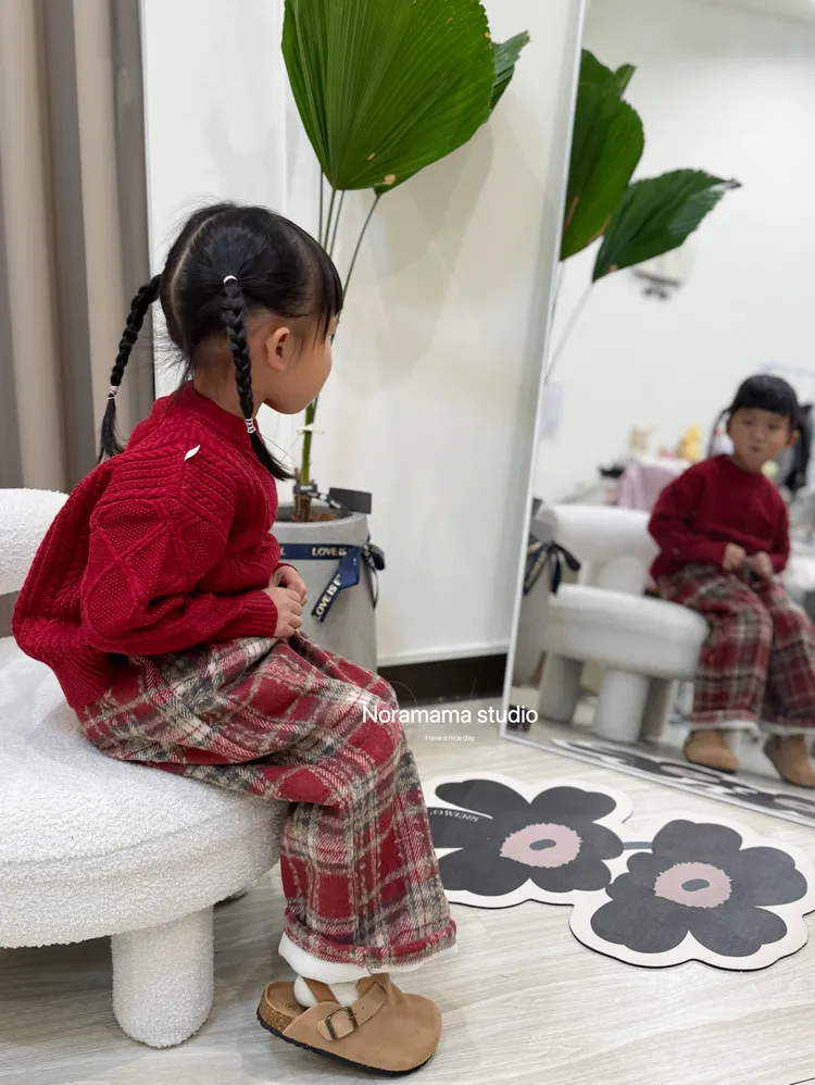 [90-140碼]加絨款#喜氣洋洋針織格紋套裝