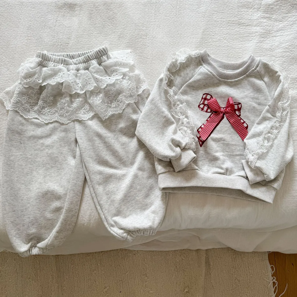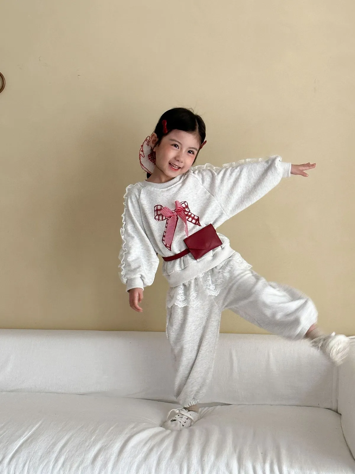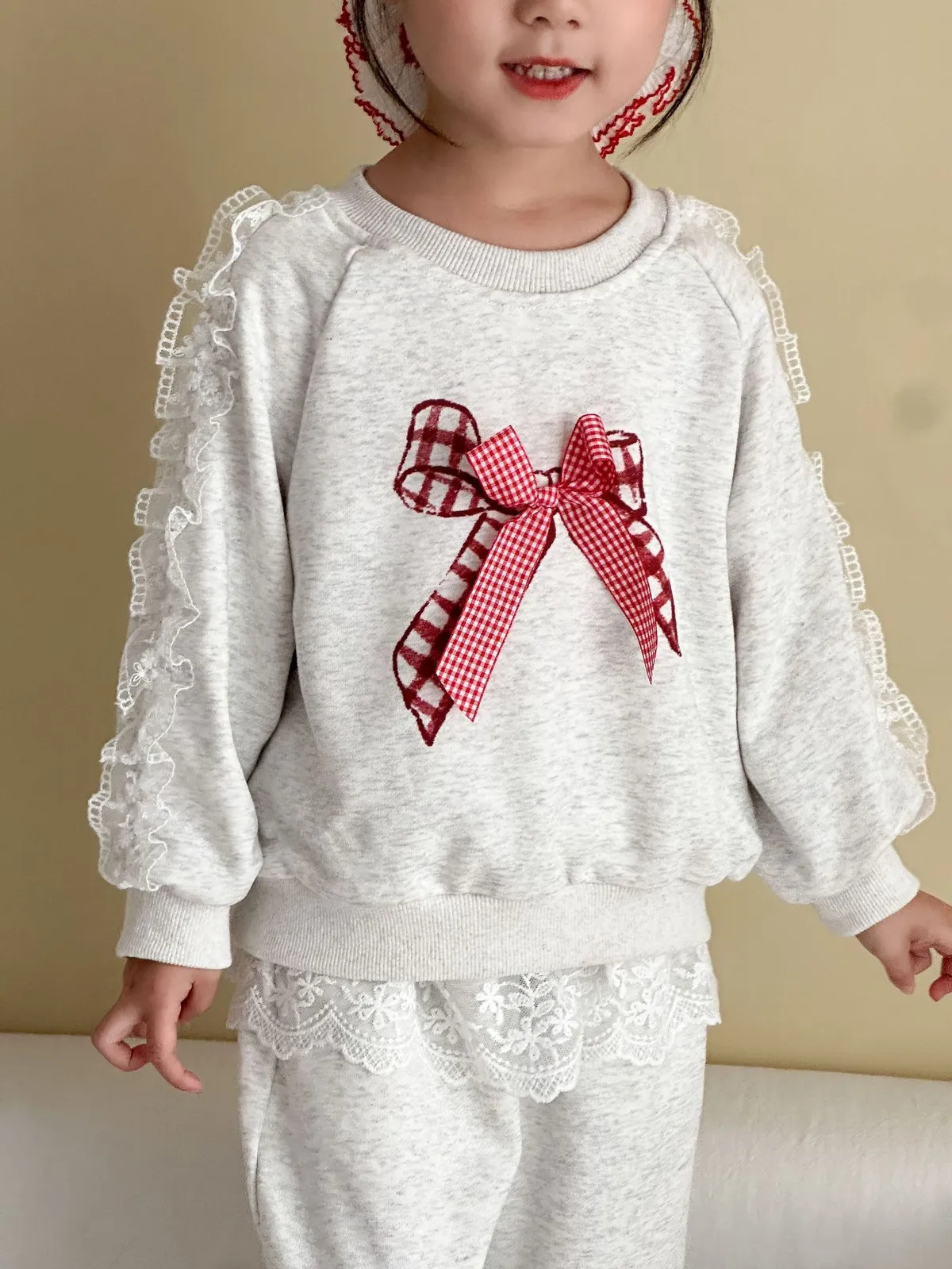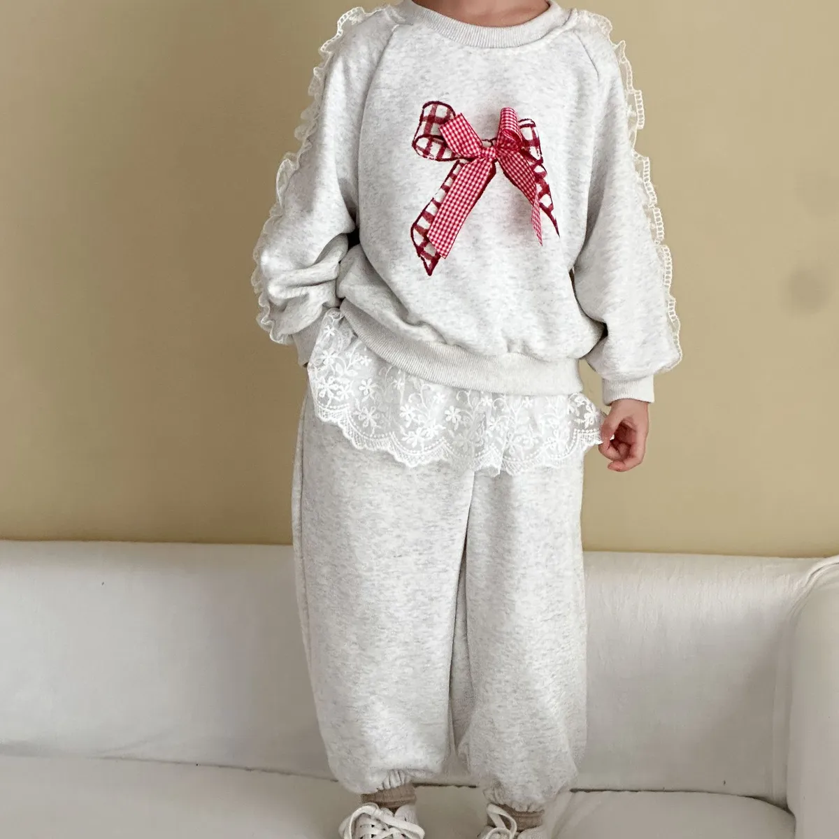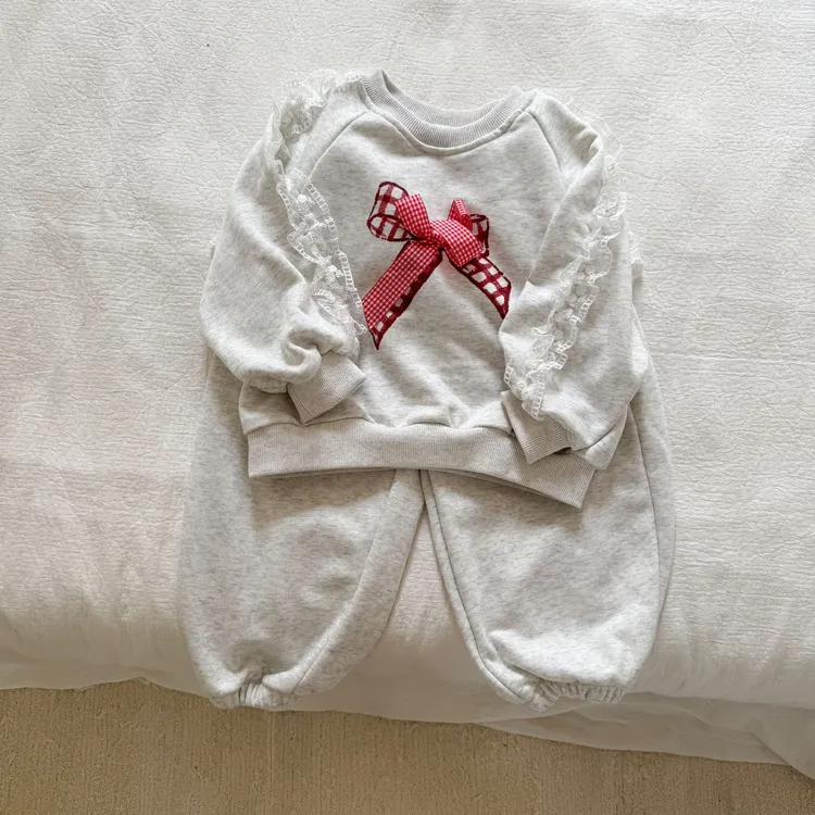 [90-150碼]蝴蝶結拼花邊休閒套裝