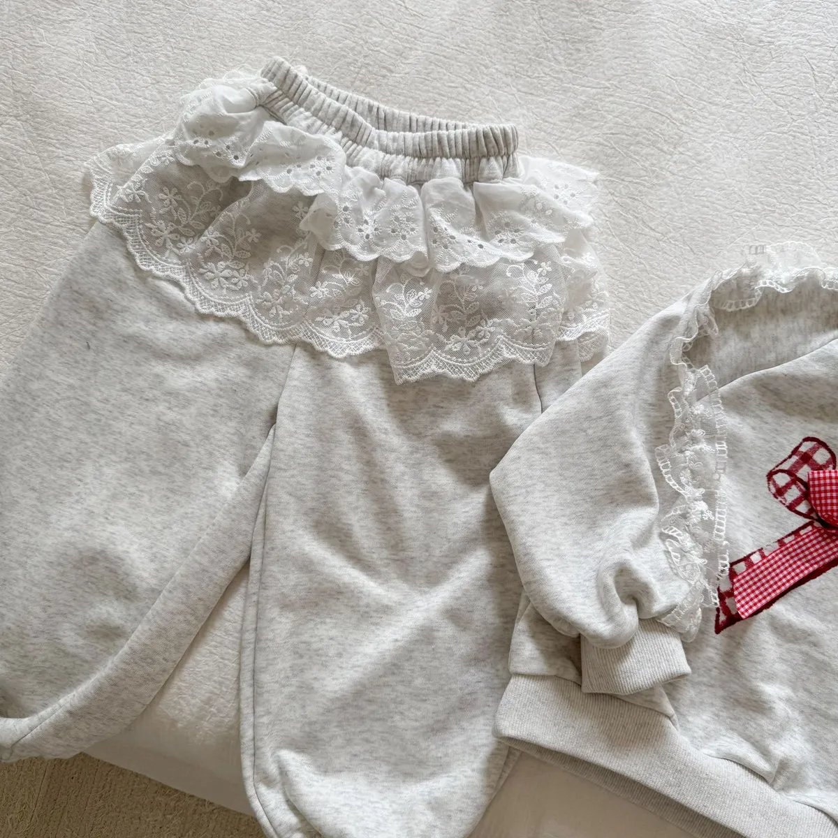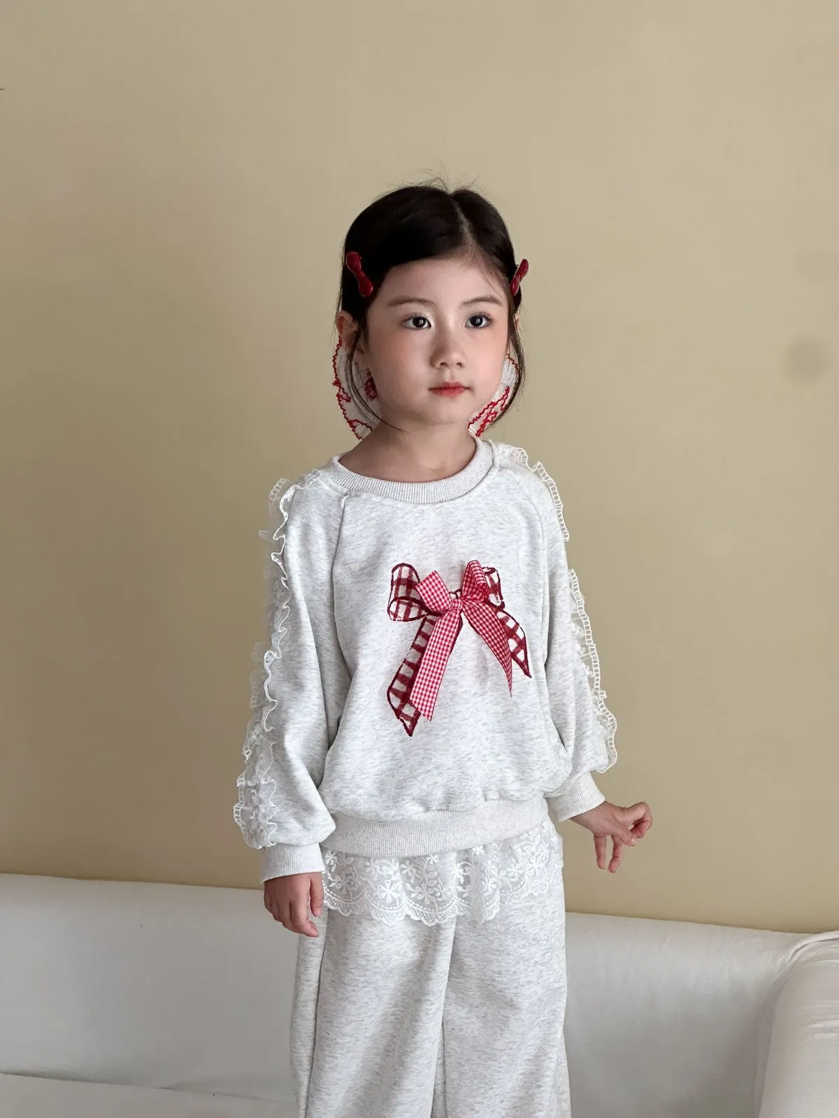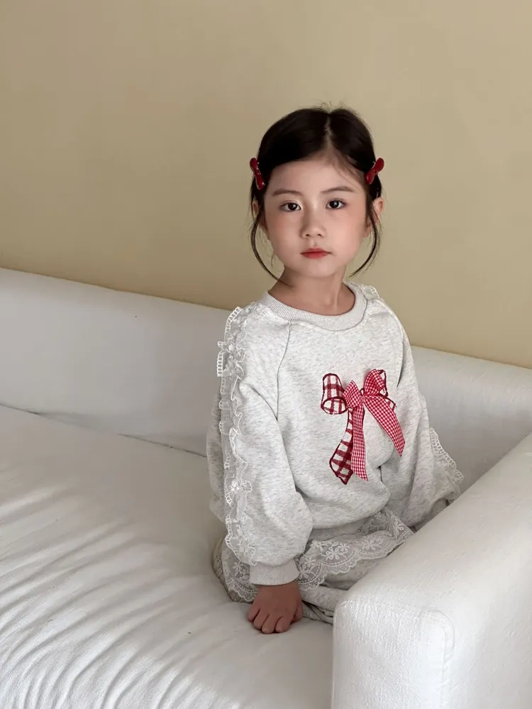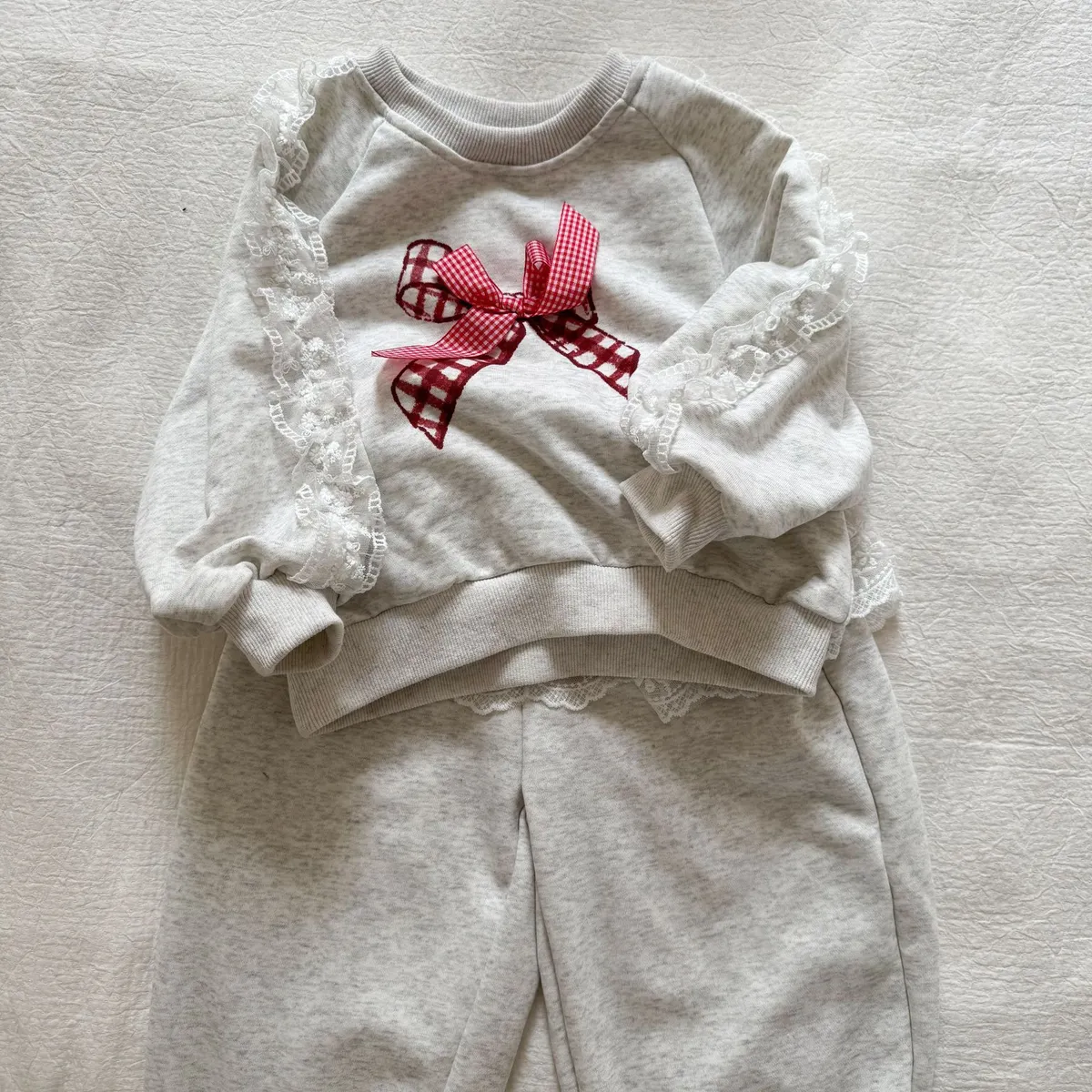 [90-150碼]蝴蝶結拼花邊休閒套裝