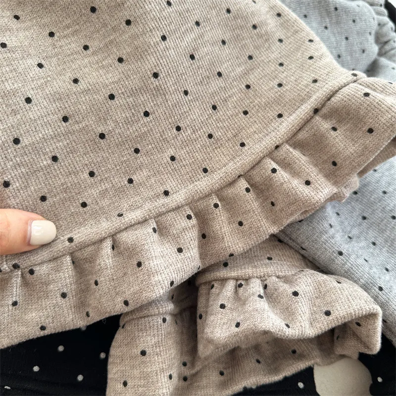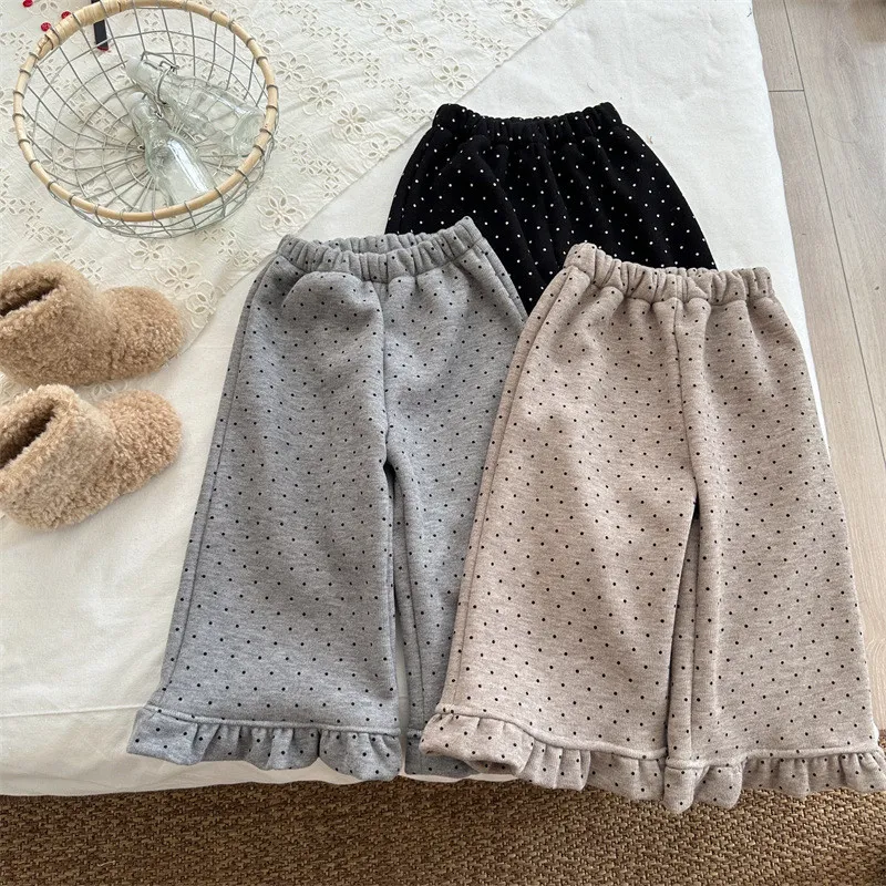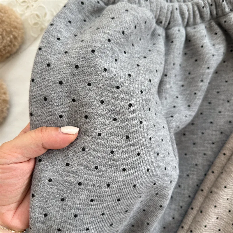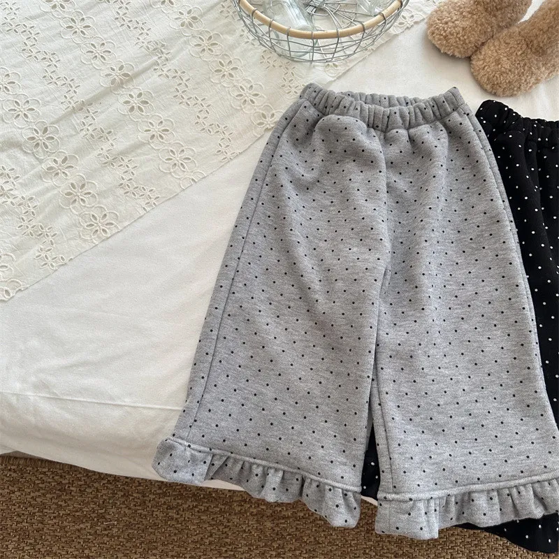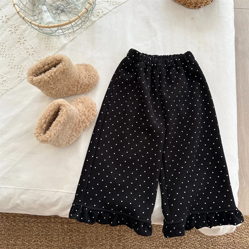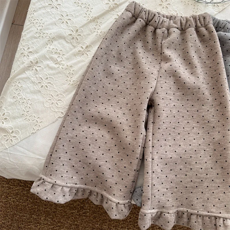 [90-130碼]加絨款#小圓點木耳邊直筒褲-3色