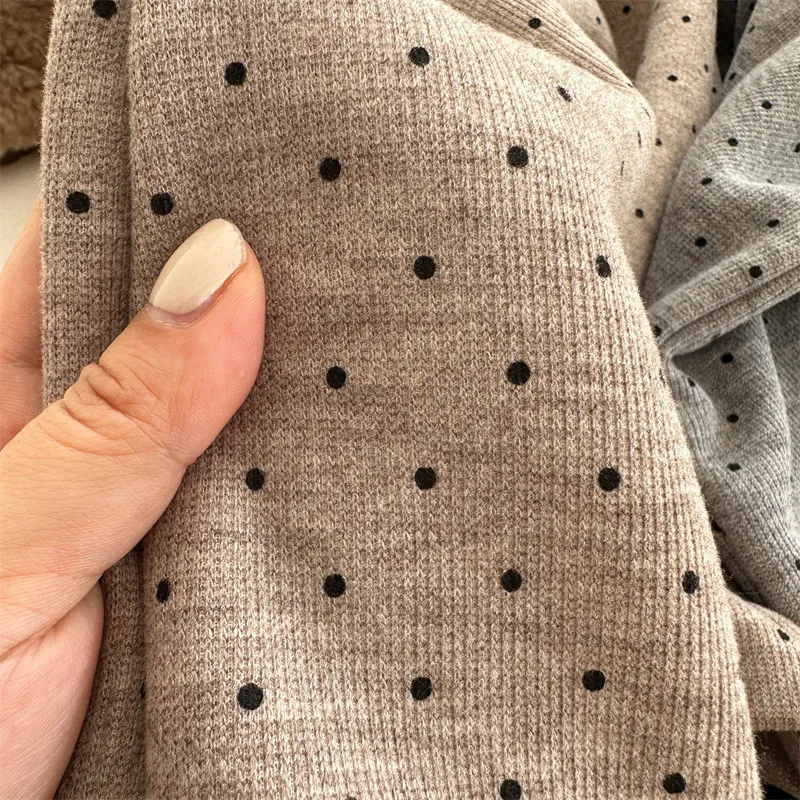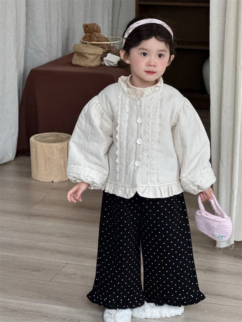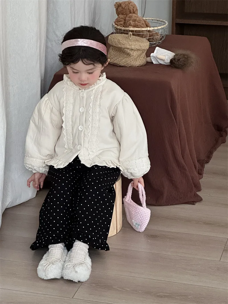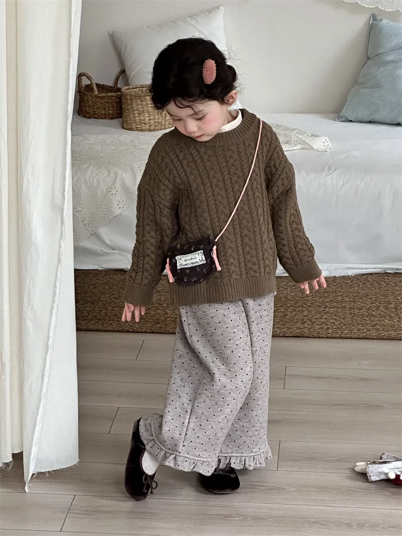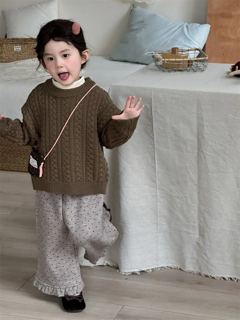 [90-130碼]加絨款#小圓點木耳邊直筒褲-3色