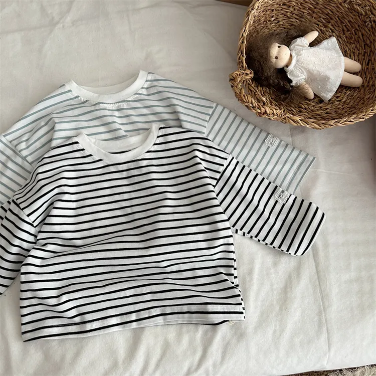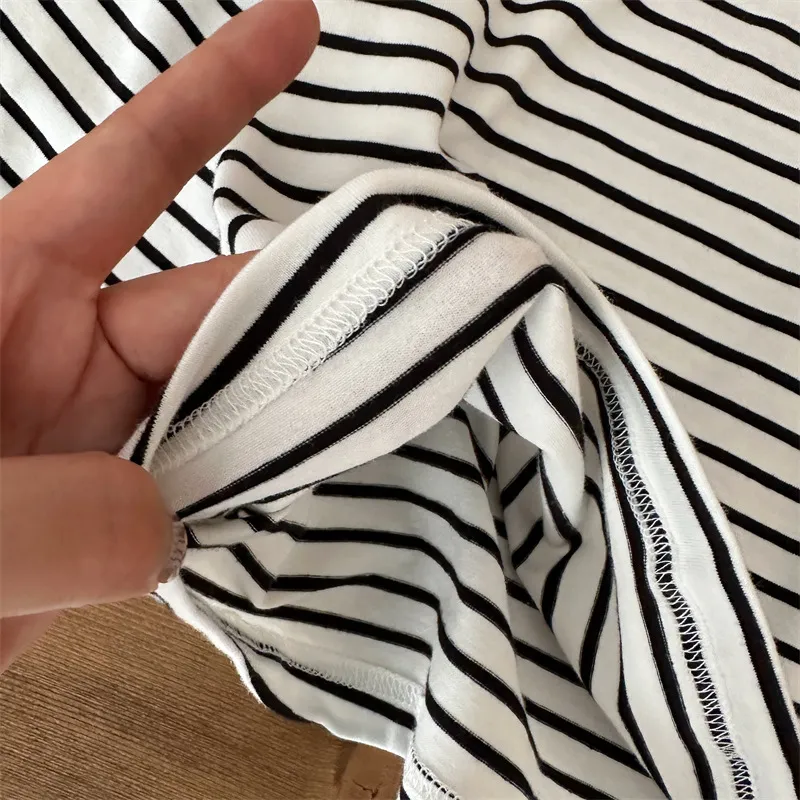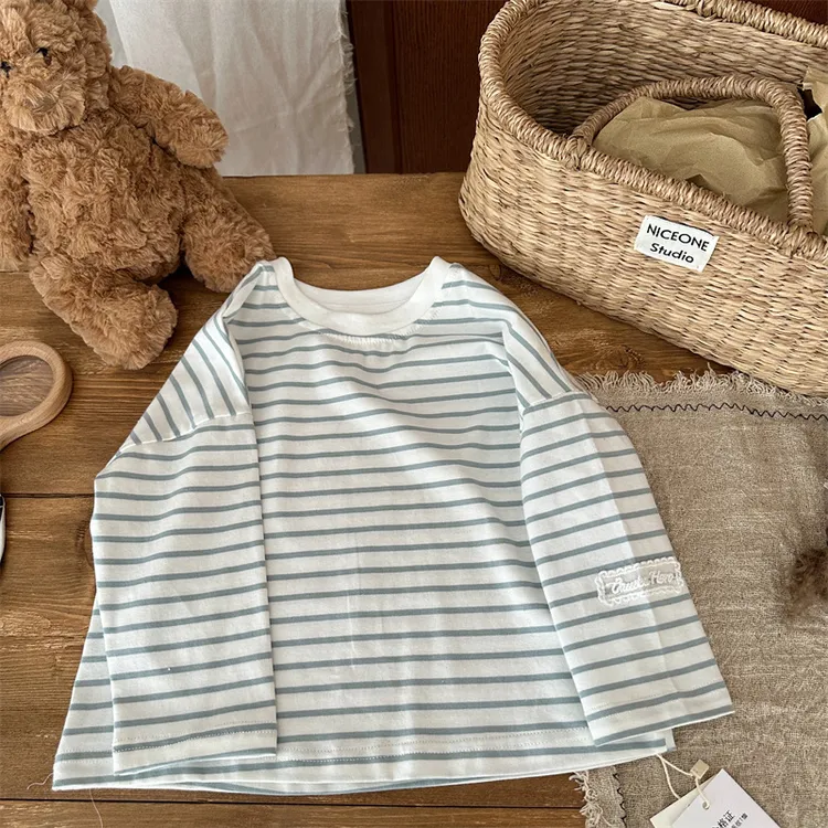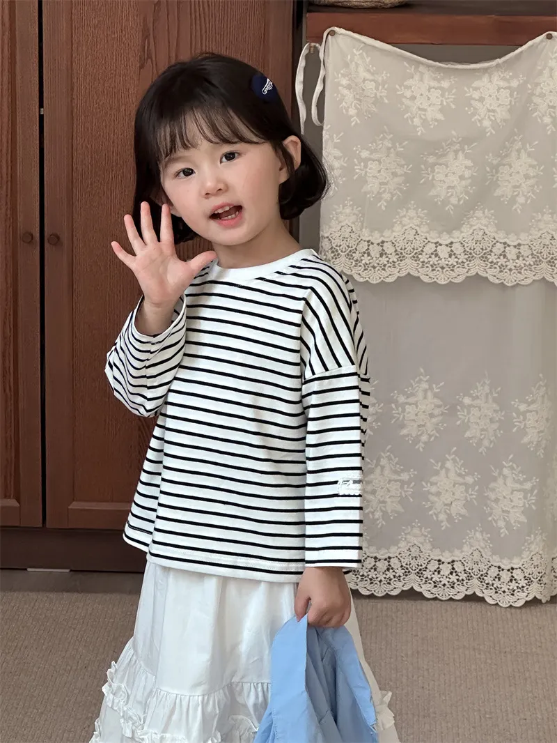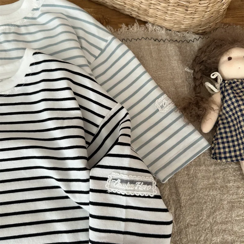 [90-130碼]條紋控必收❤️蕾絲貼標上衣-2色