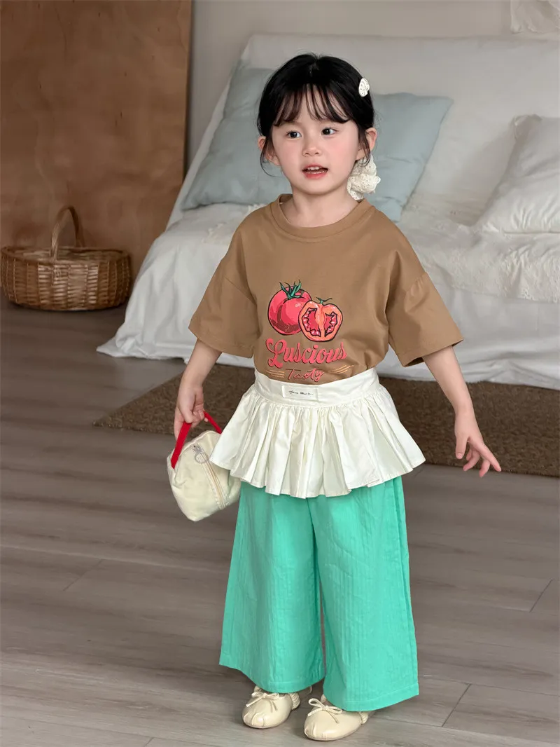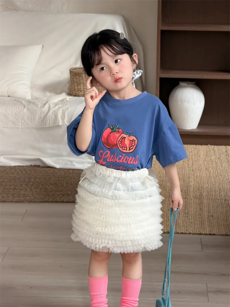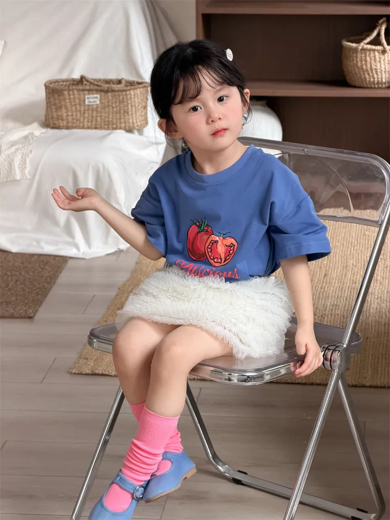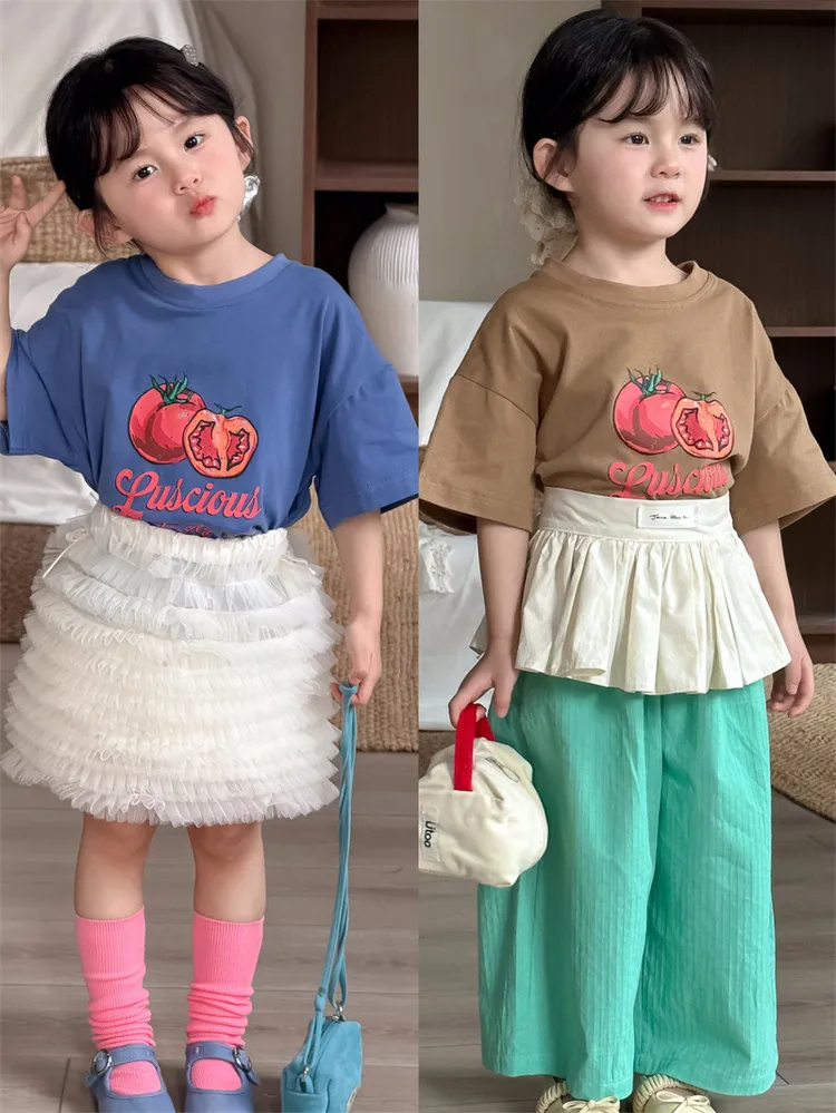 (90-130碼)美式番茄印花寬鬆短T-2色