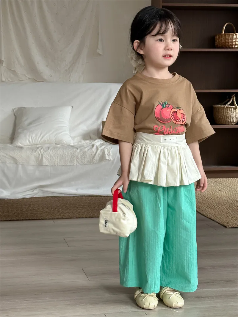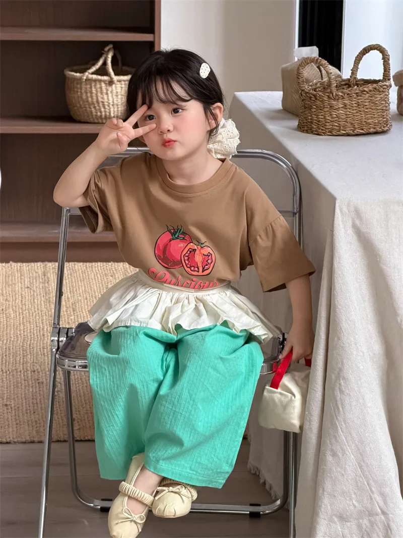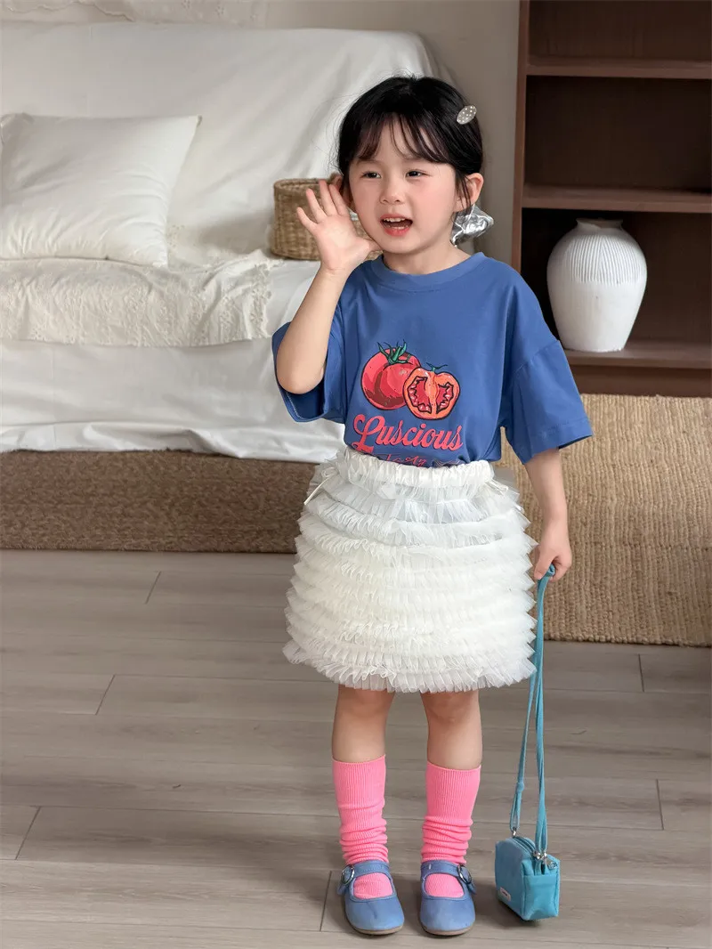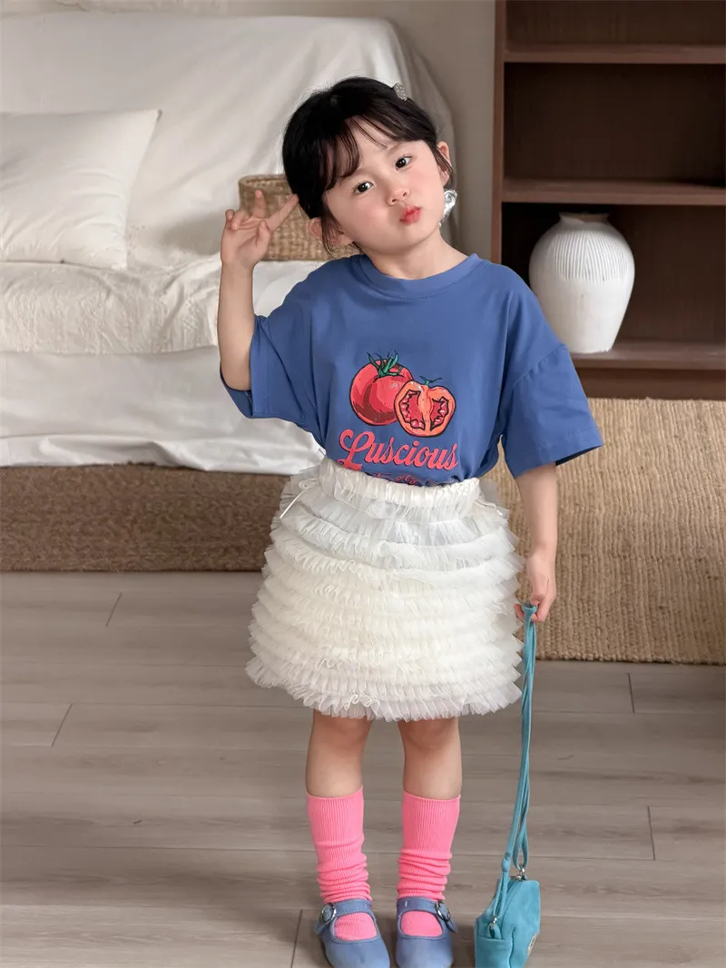 (90-130碼)美式番茄印花寬鬆短T-2色