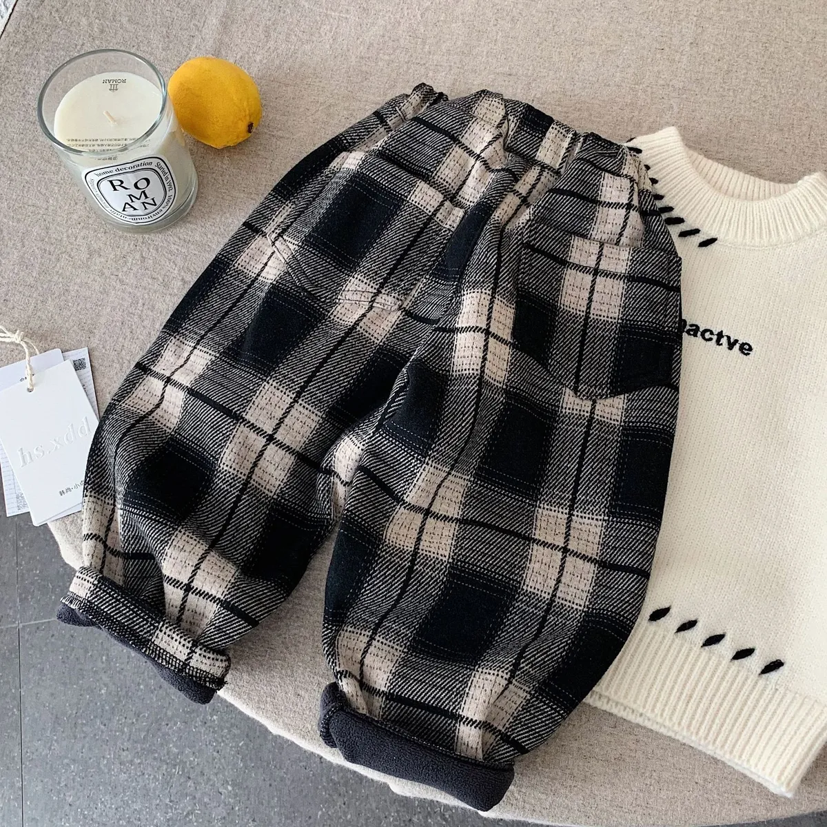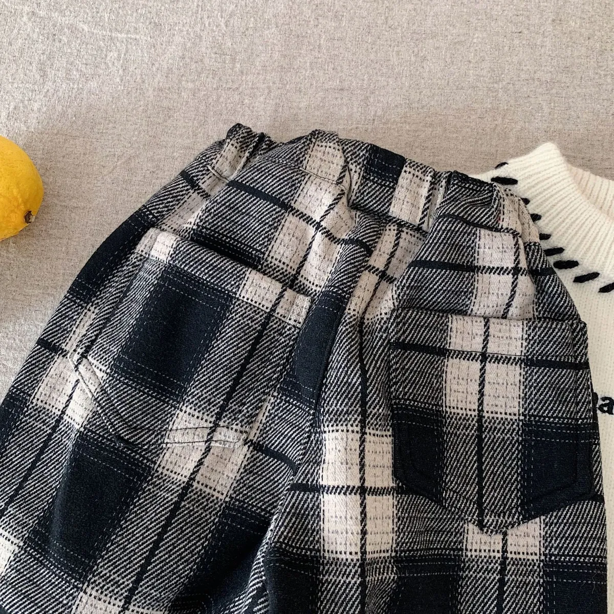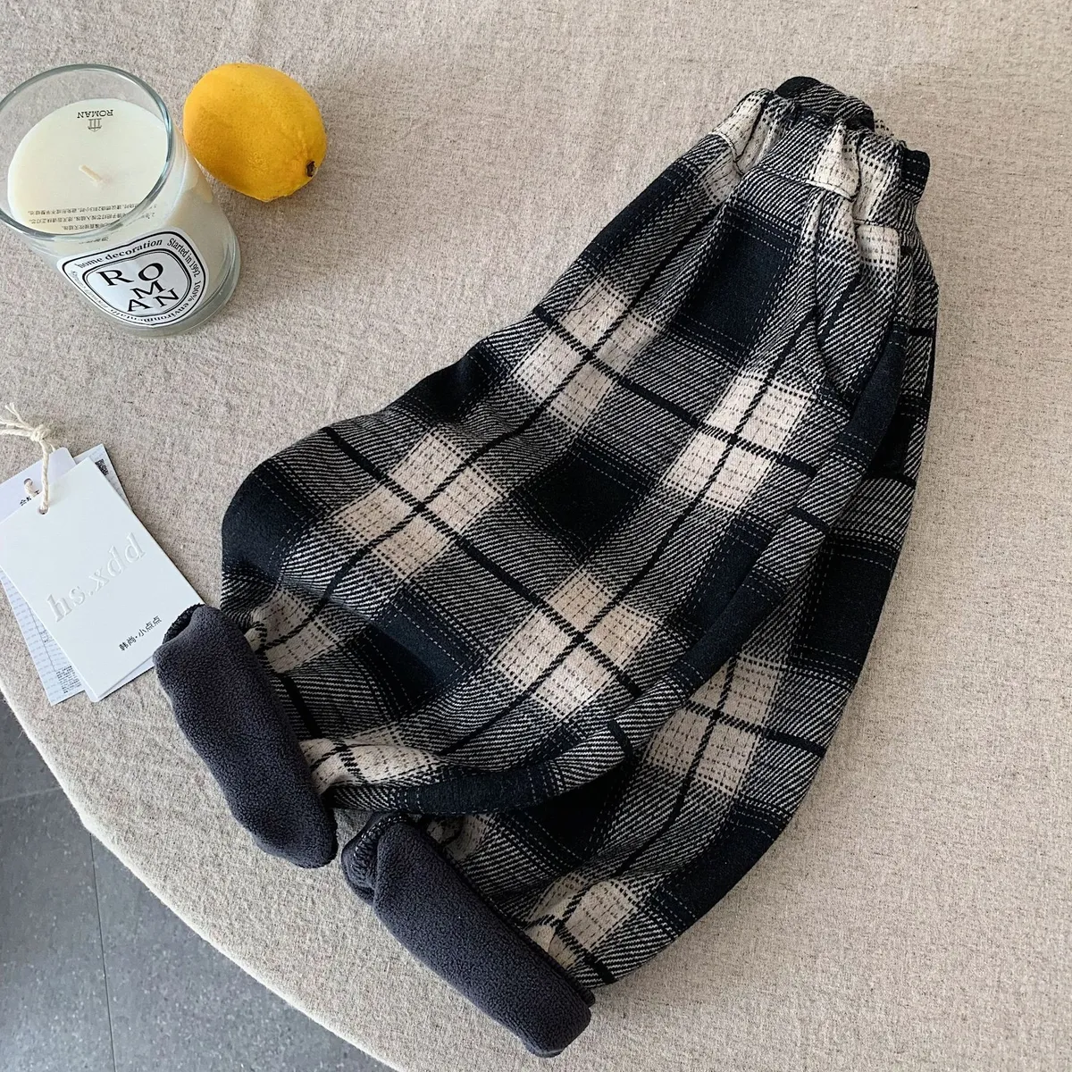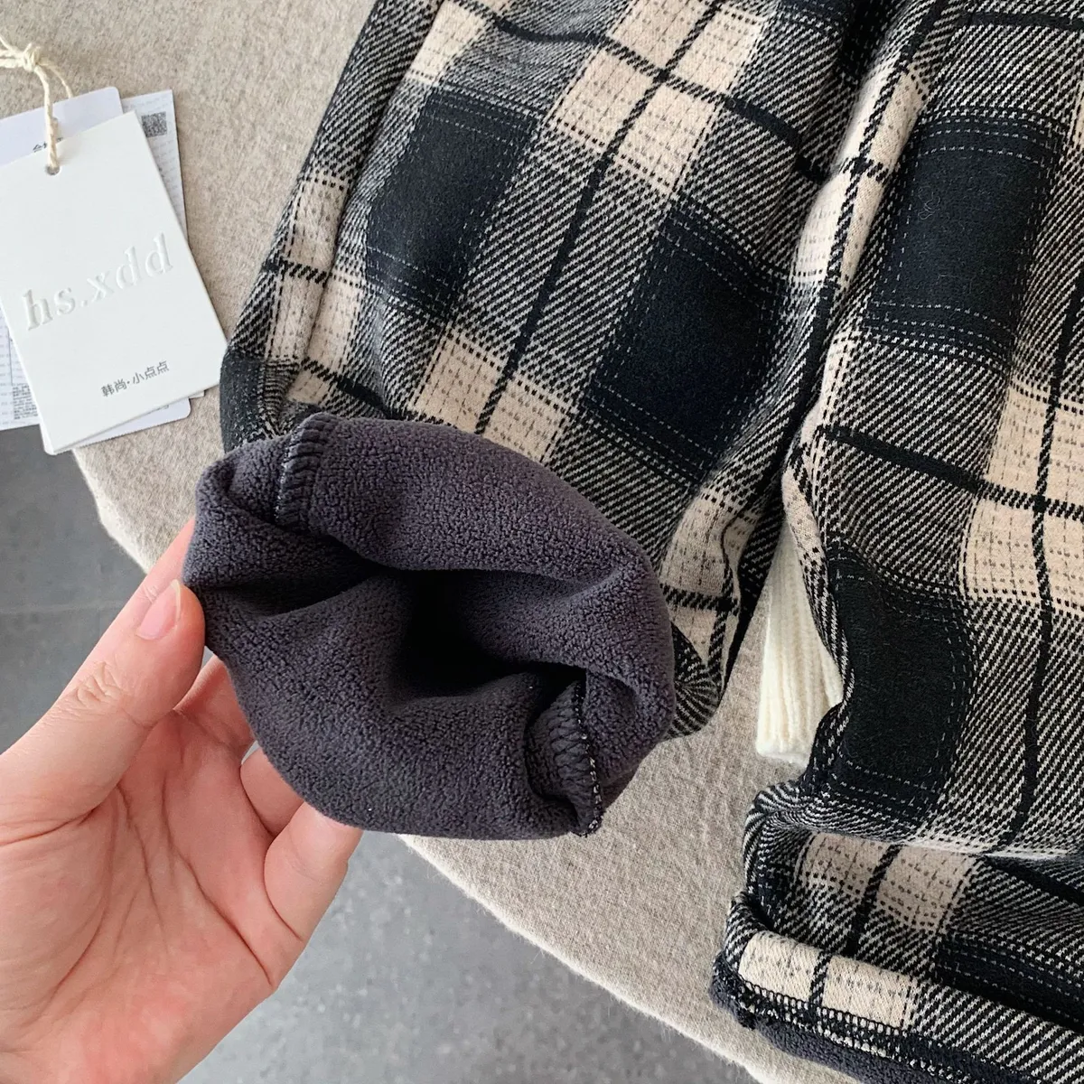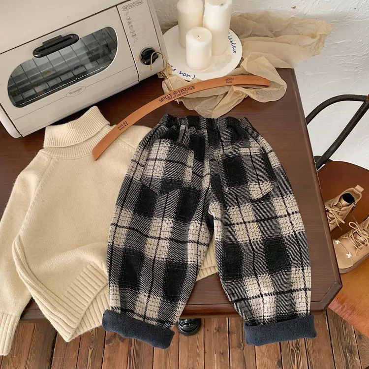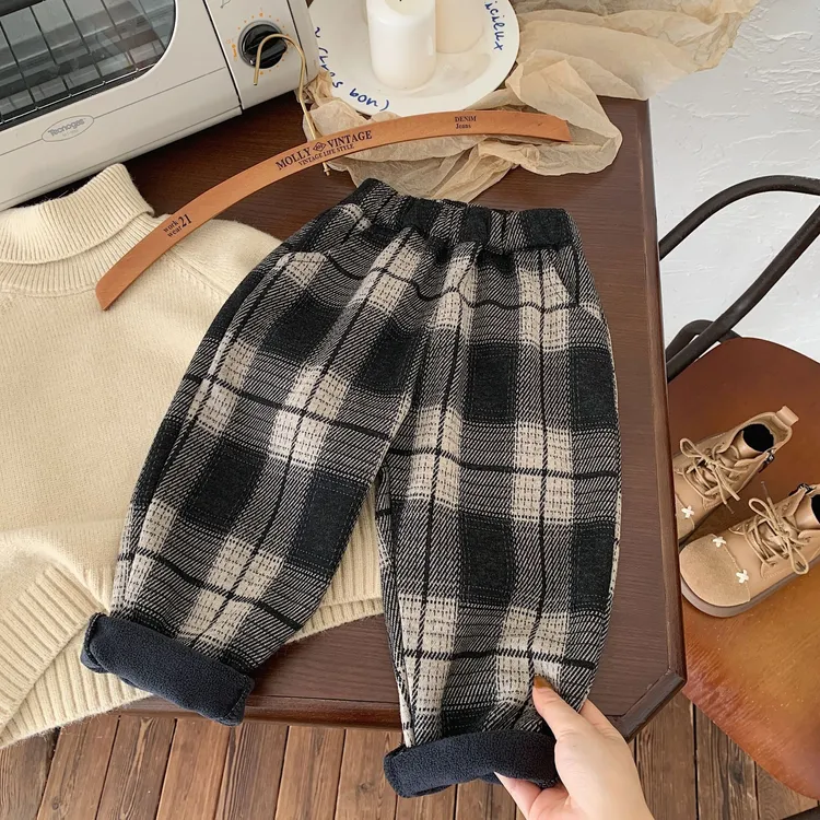 [90-140碼]加絨款#百搭格紋休閒褲