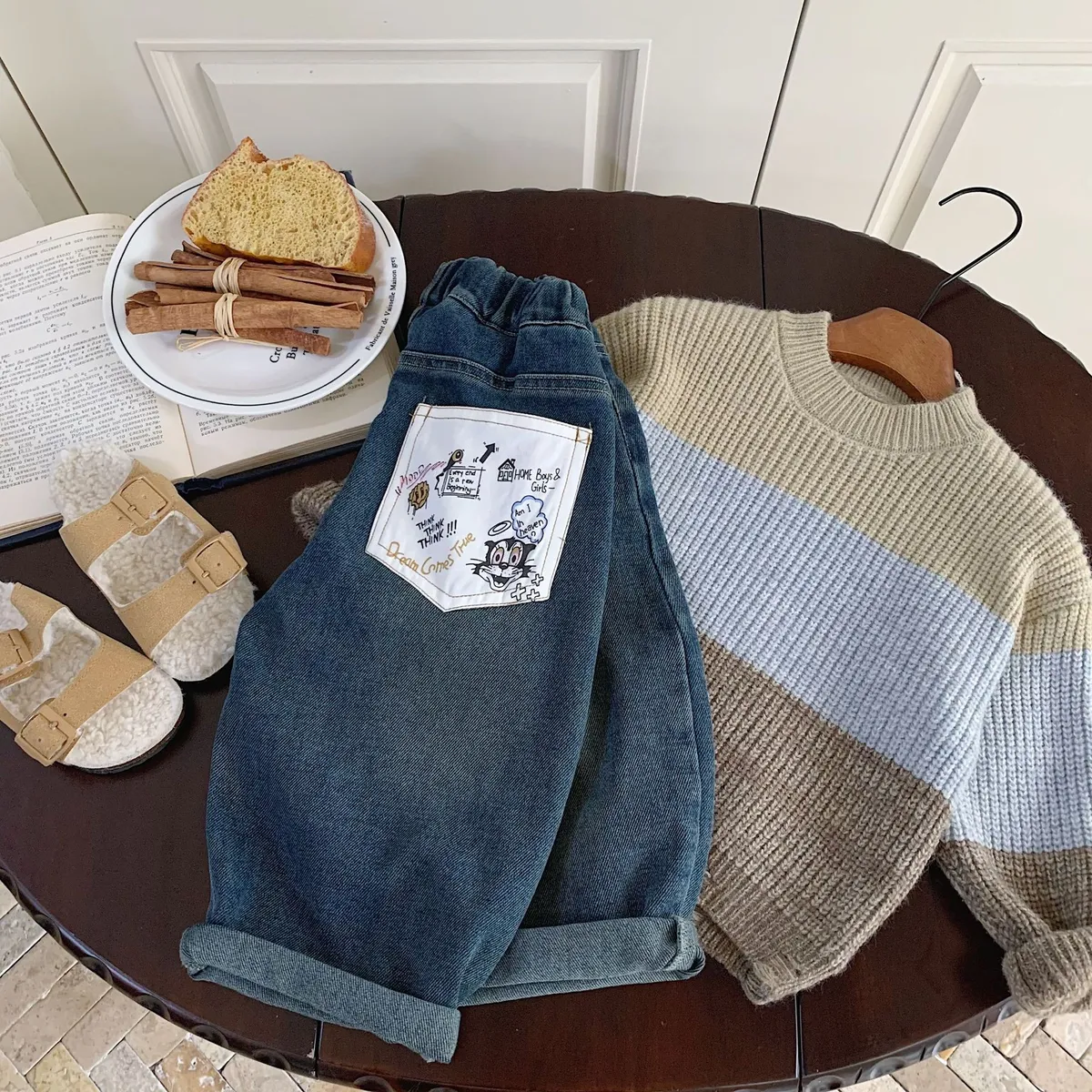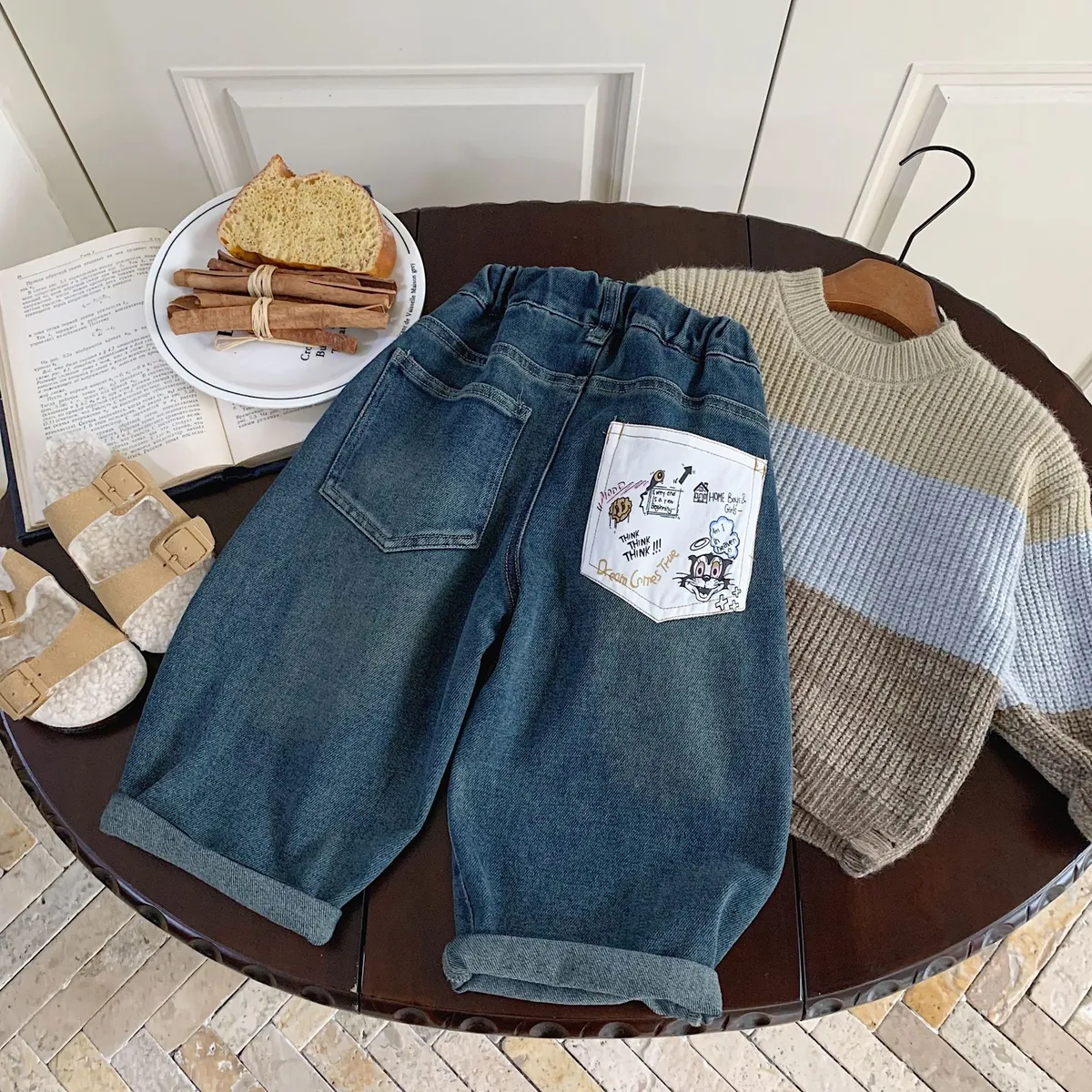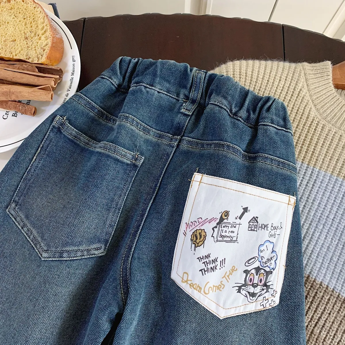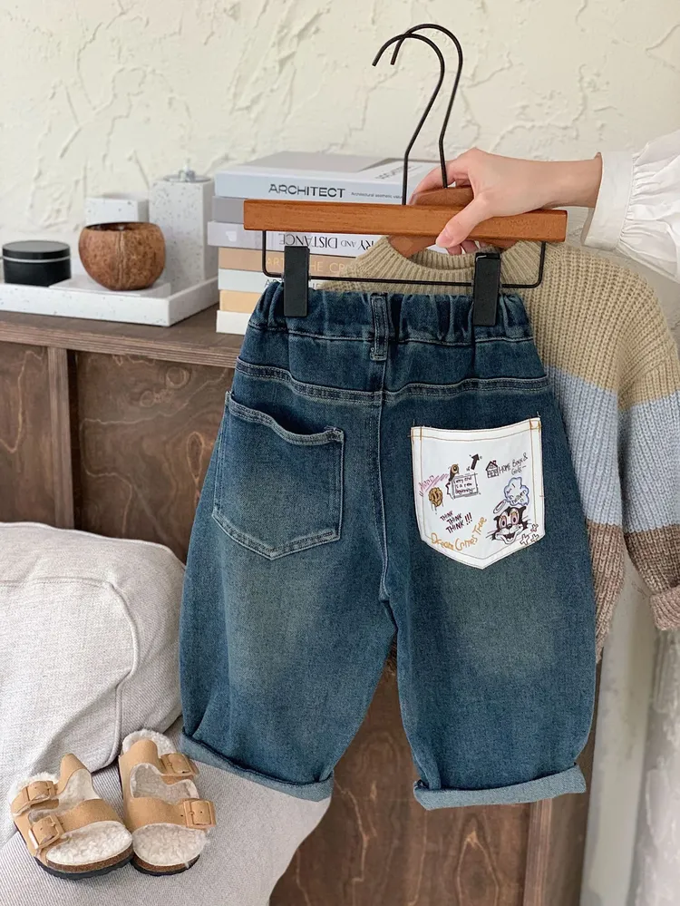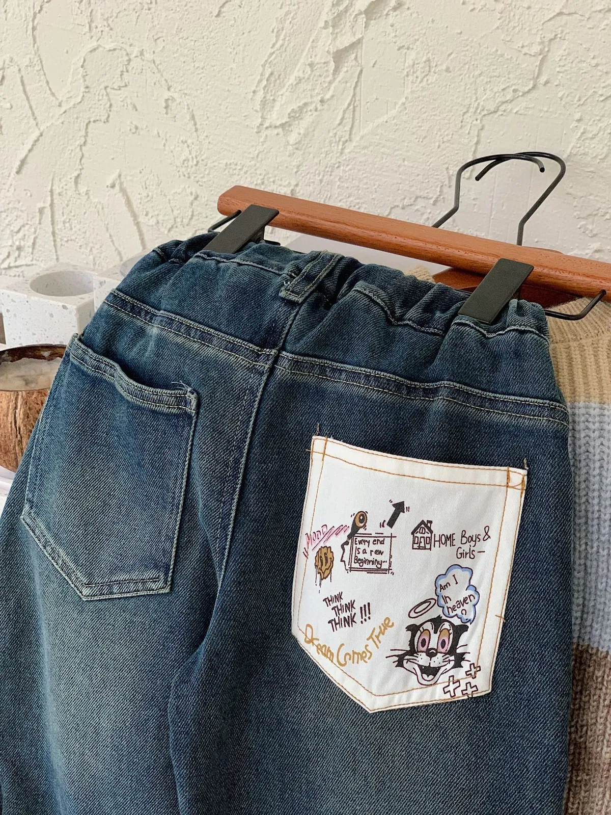 [90-140碼]百搭塗鴉口袋牛仔褲