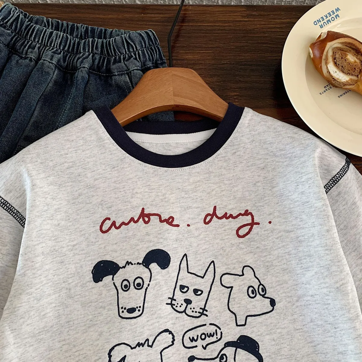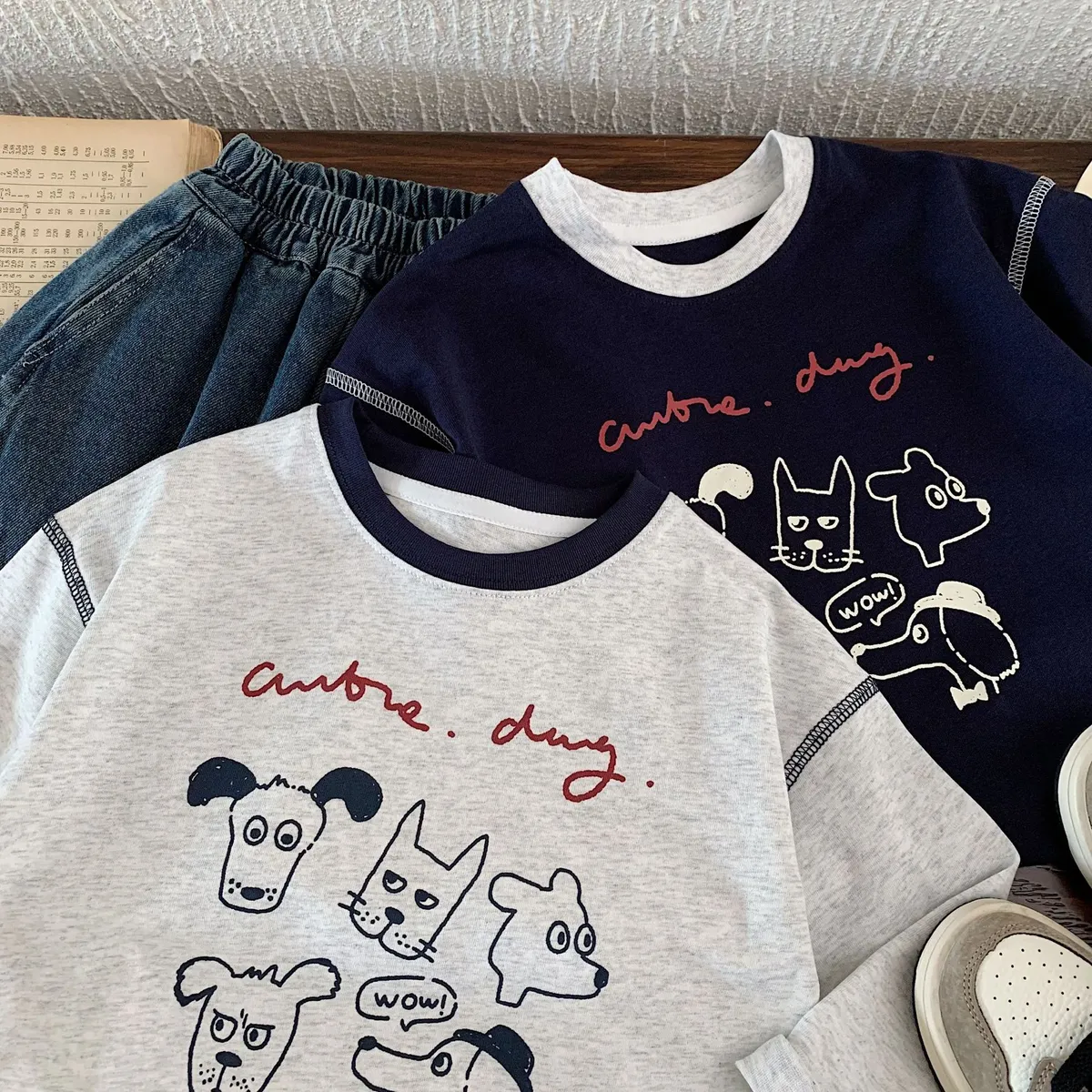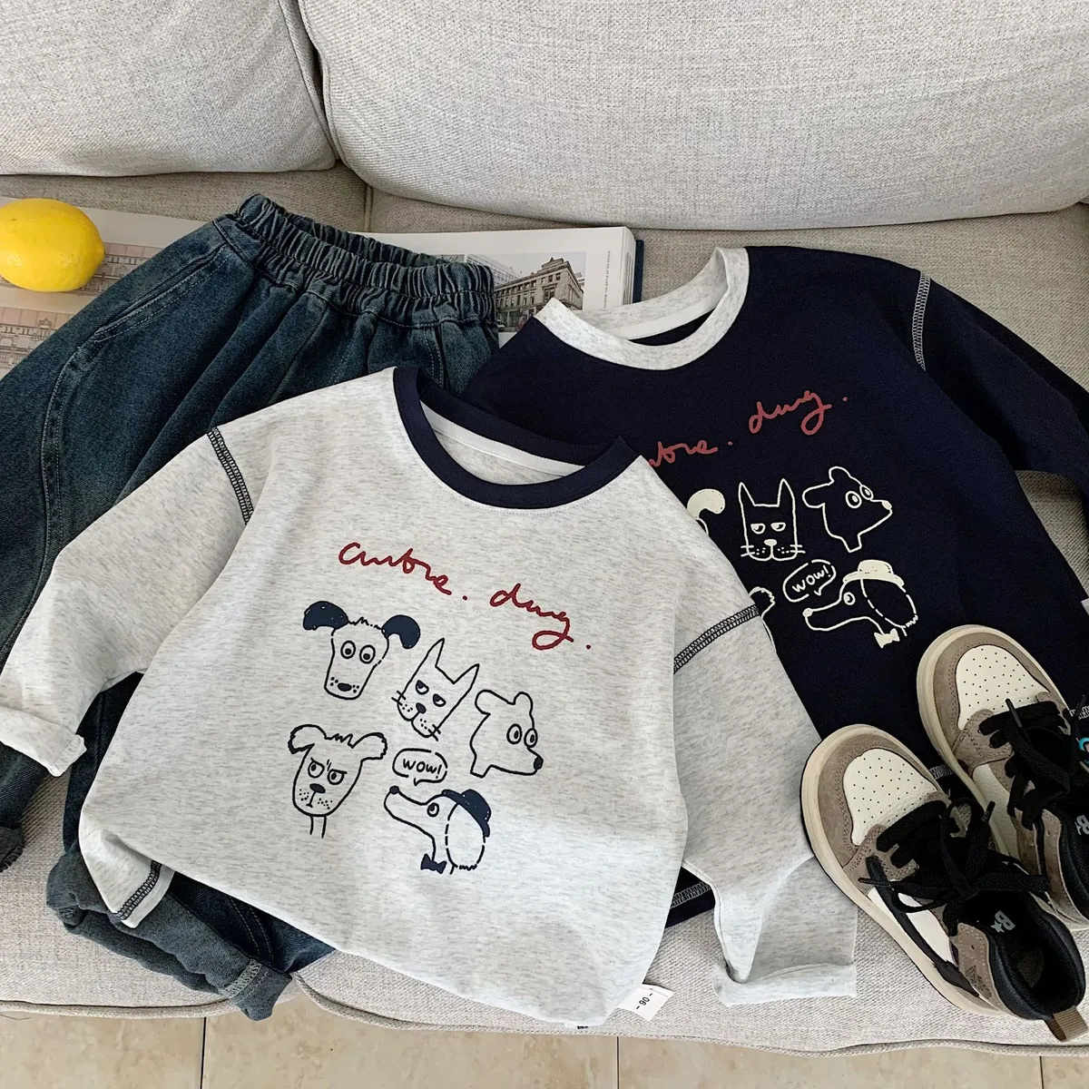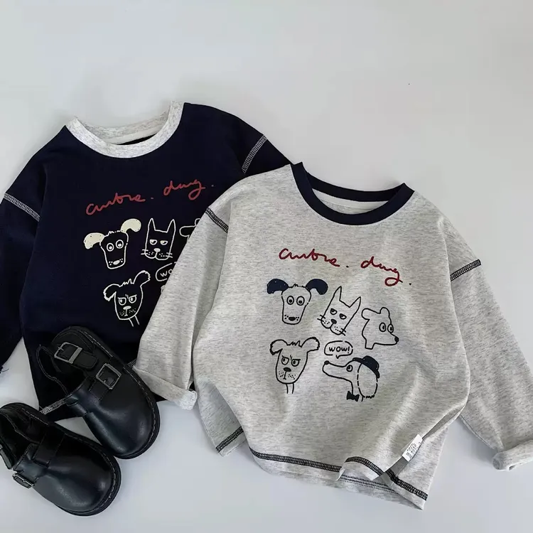 [90-130碼]日常手繪風狗狗印花明線上衣-2色