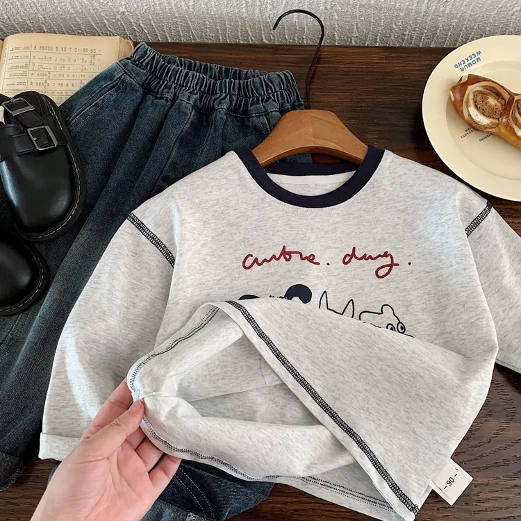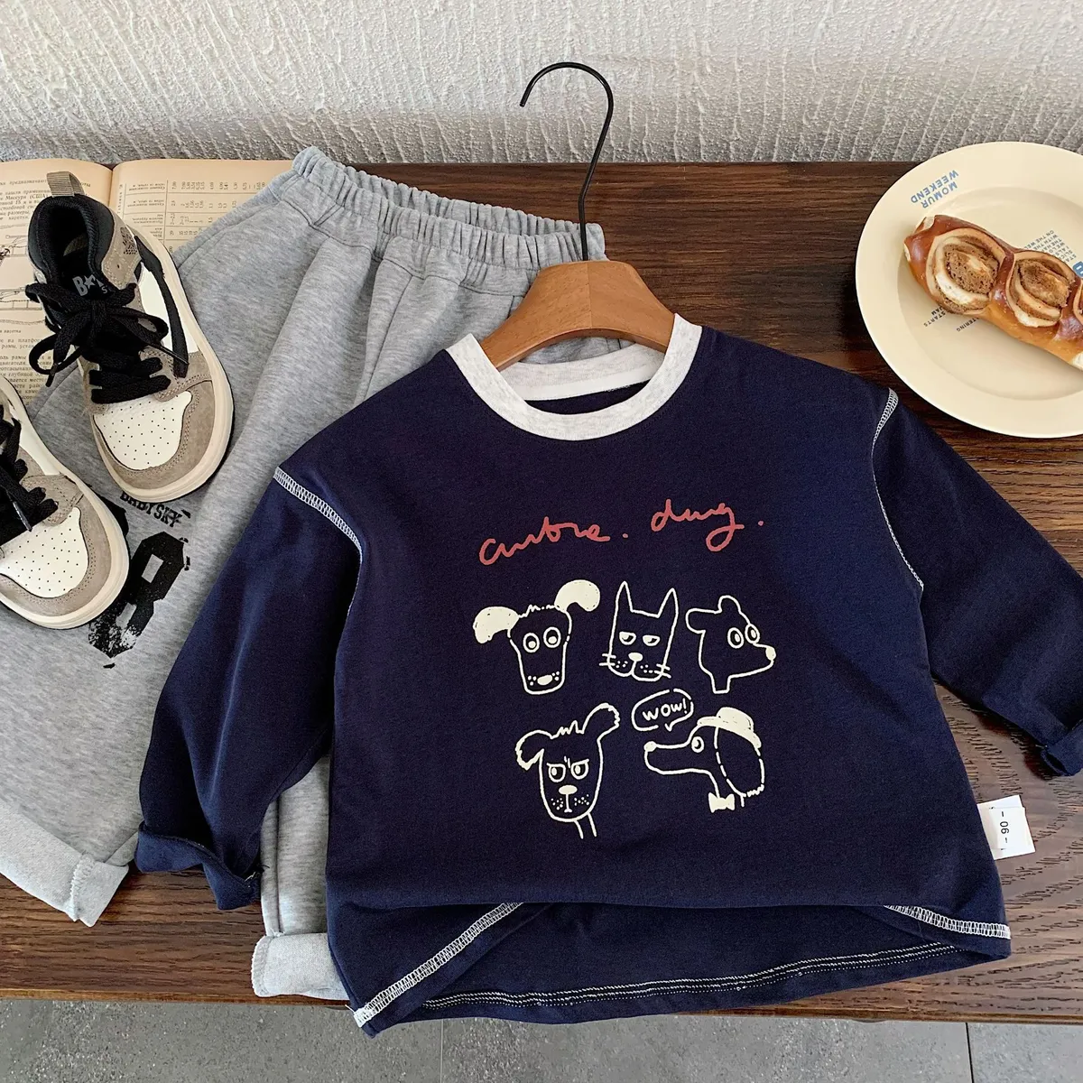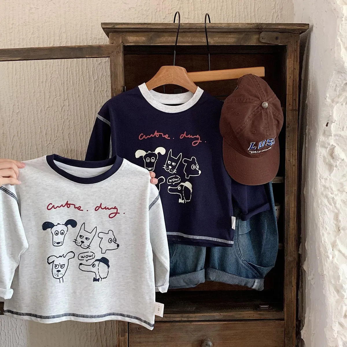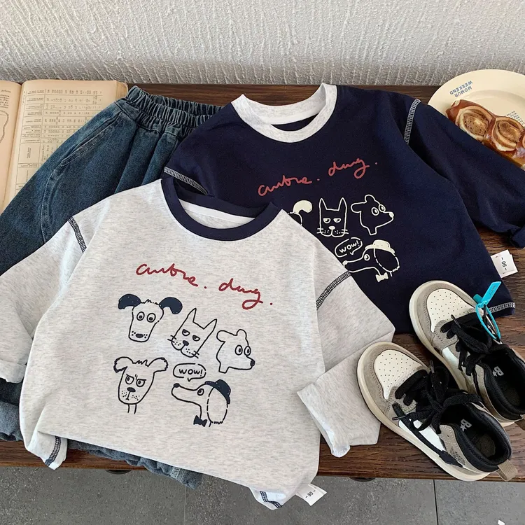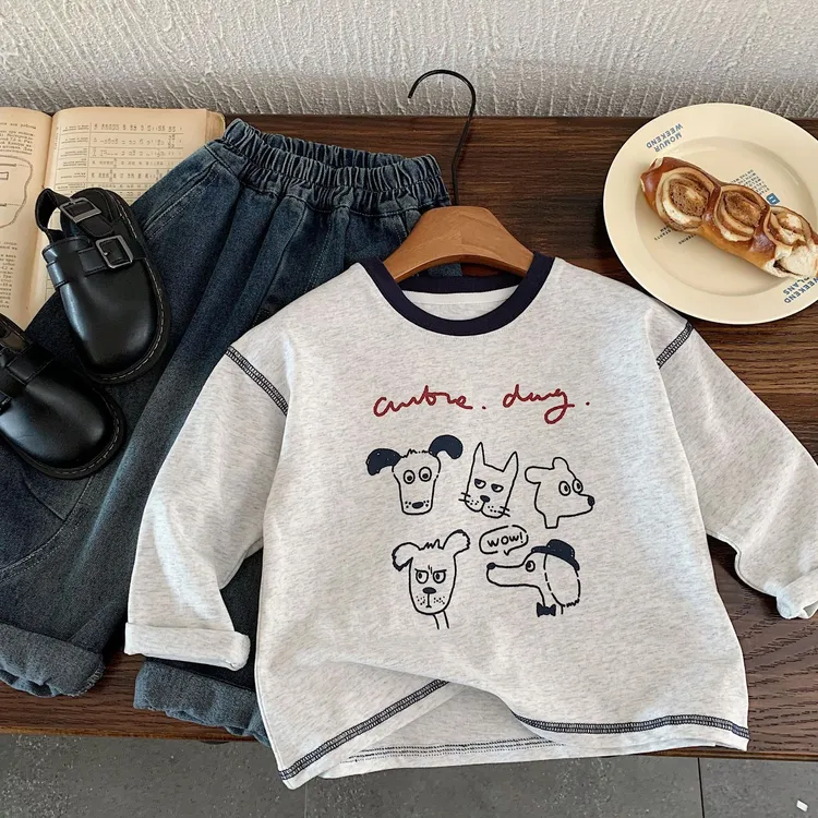 [90-130碼]日常手繪風狗狗印花明線上衣-2色