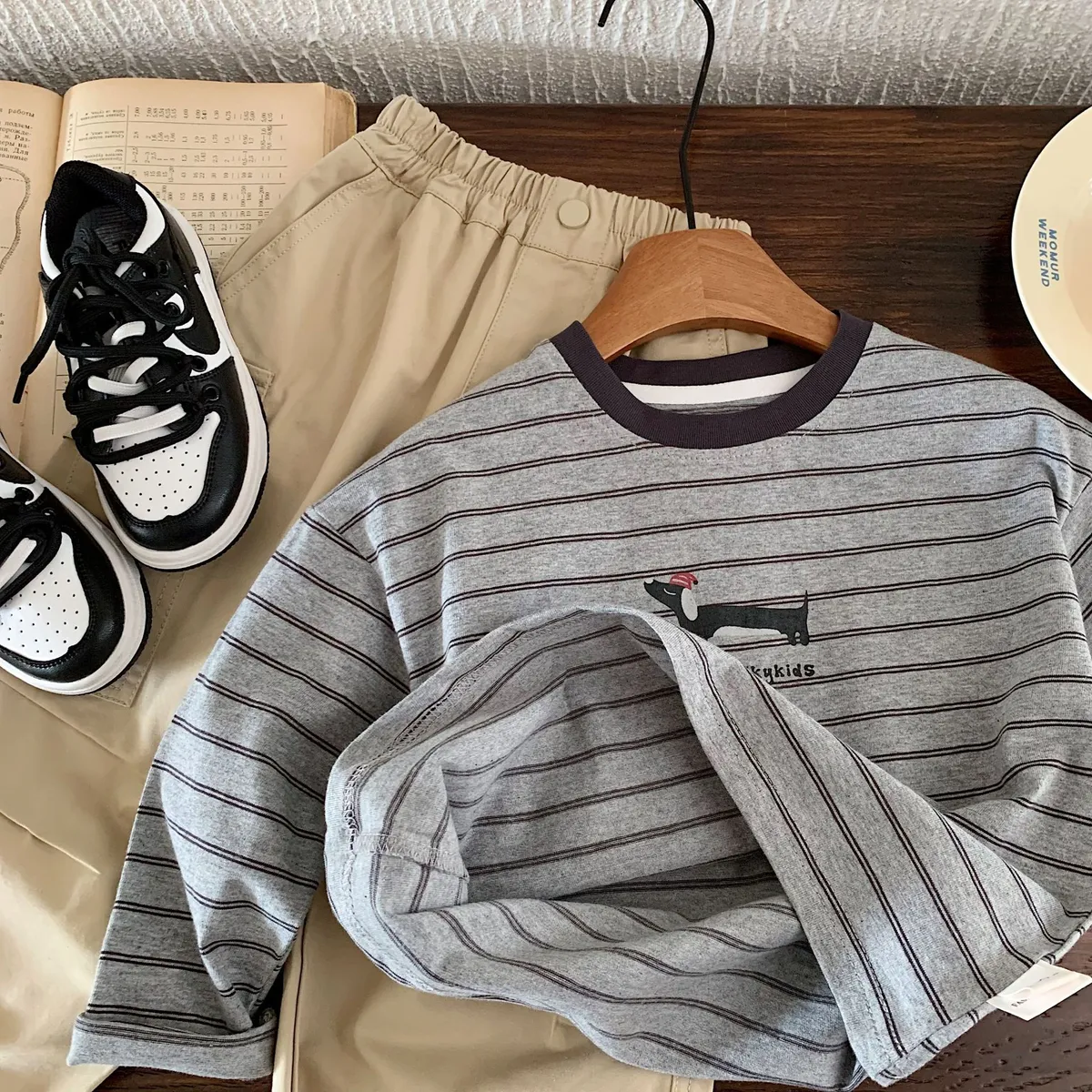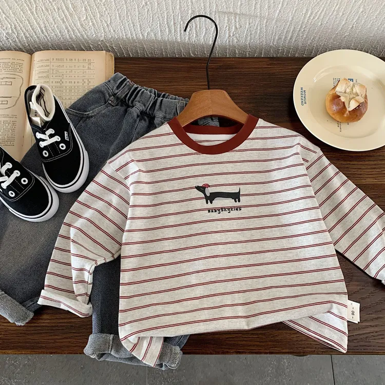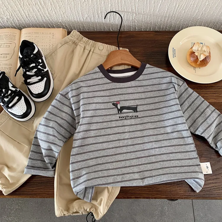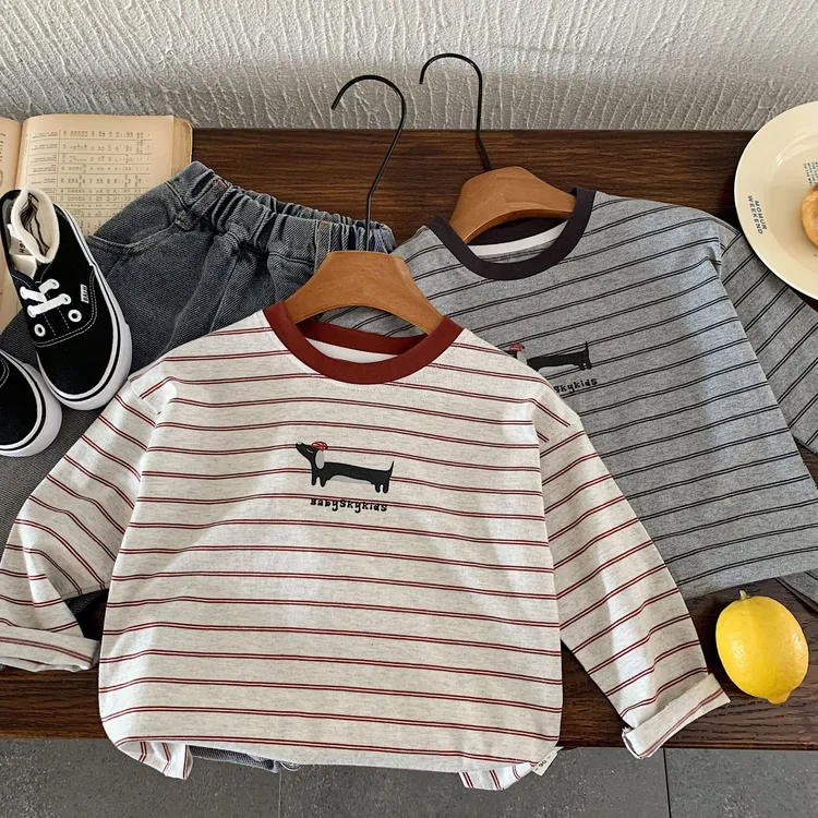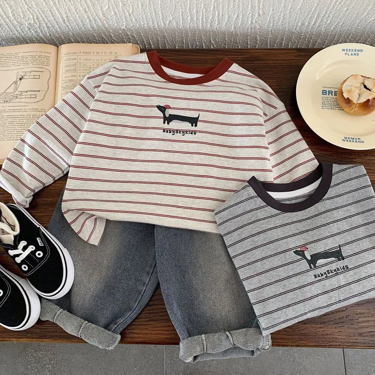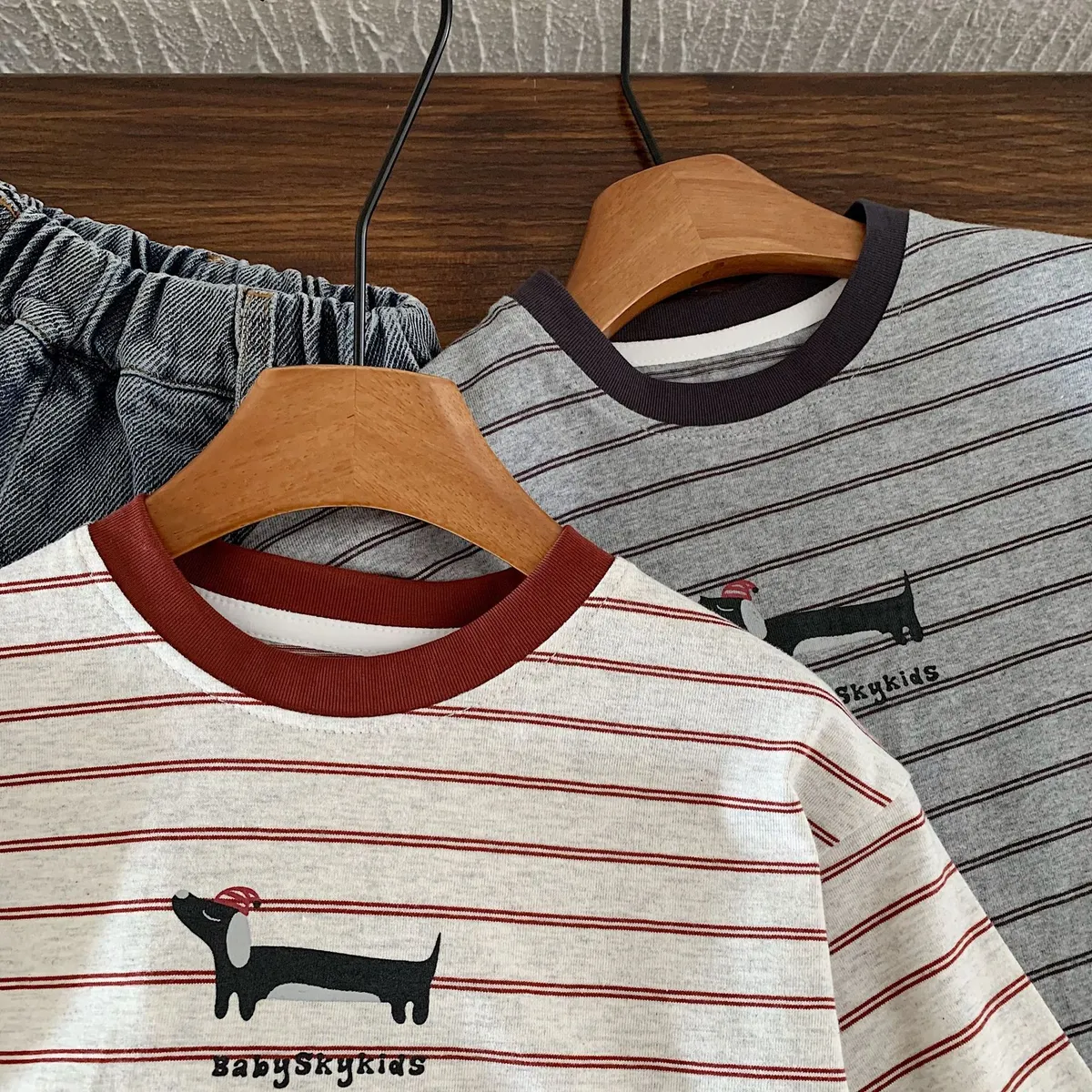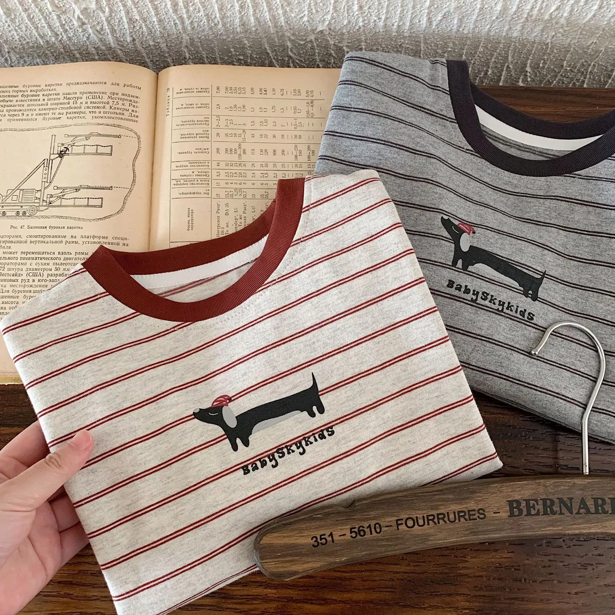 [90-140碼]可愛臘腸狗條紋上衣-2色