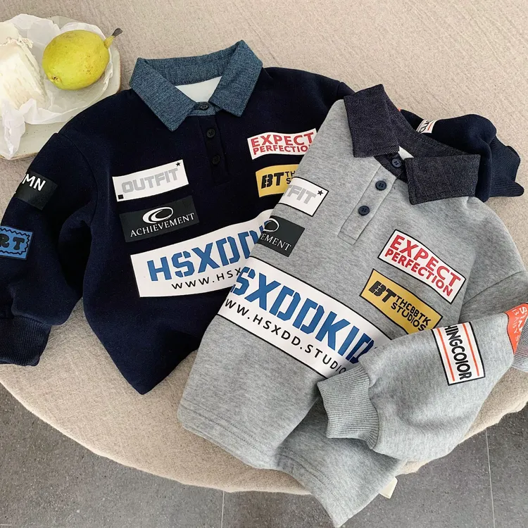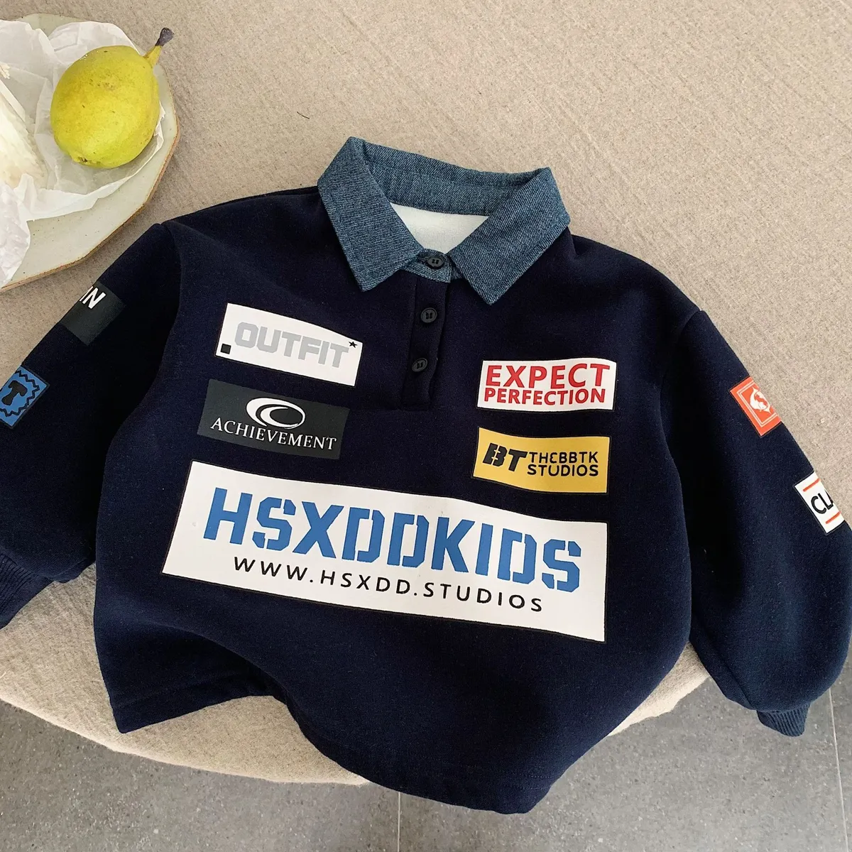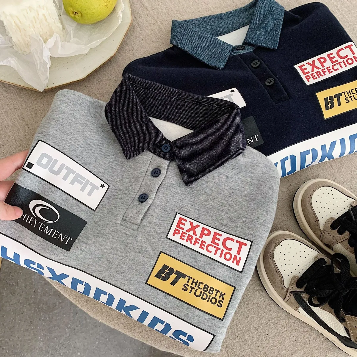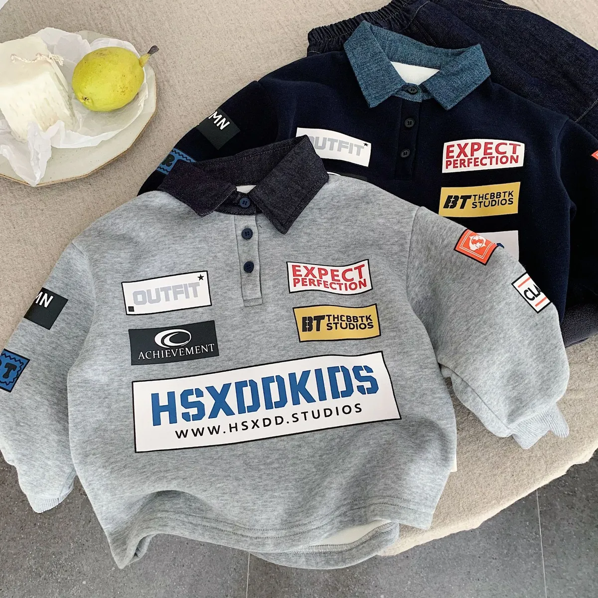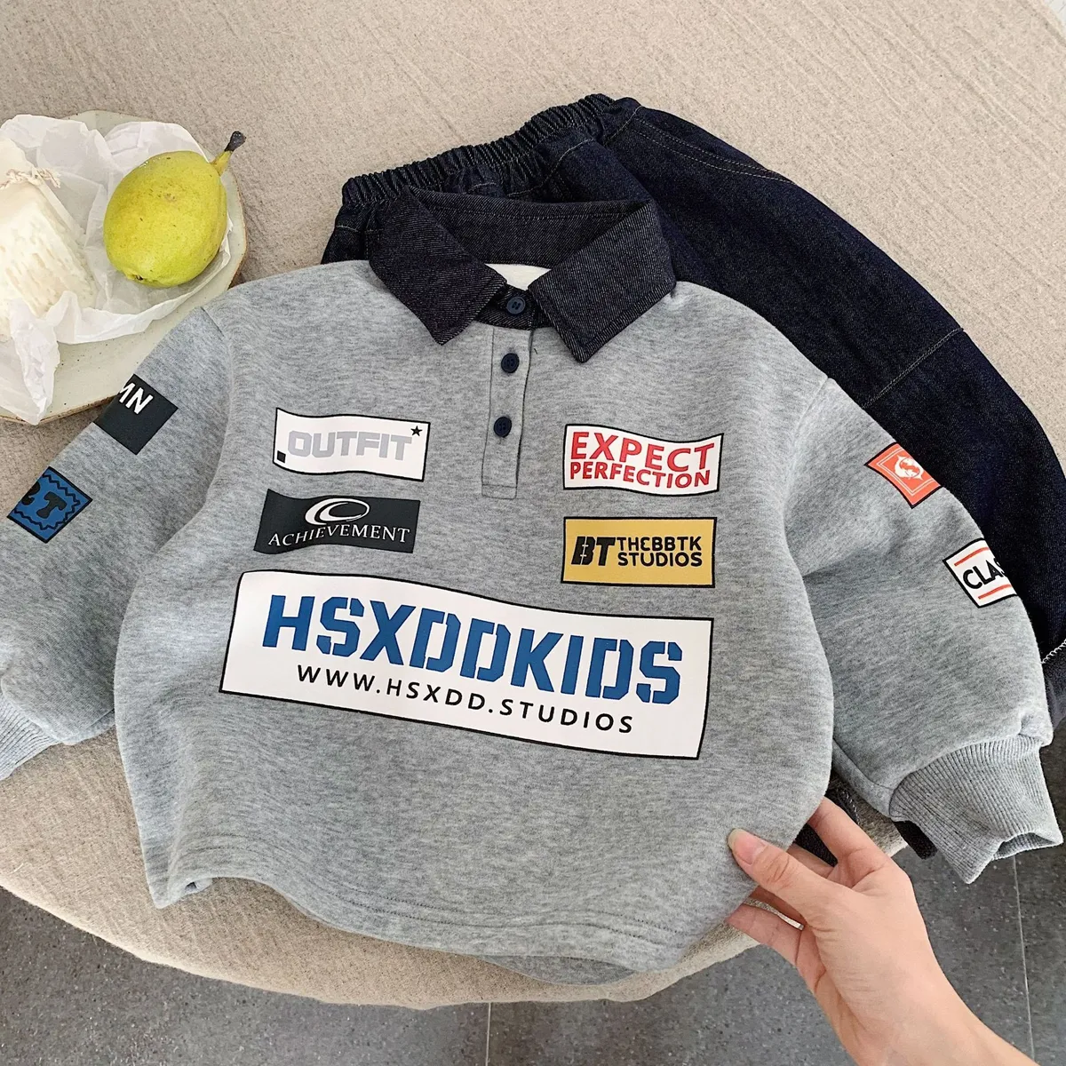 [90-140碼]加絨款#痞帥機車風牛仔領上衣-2色