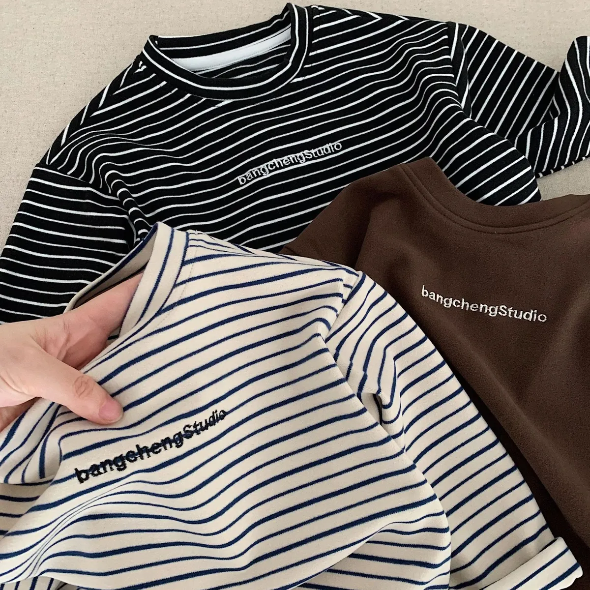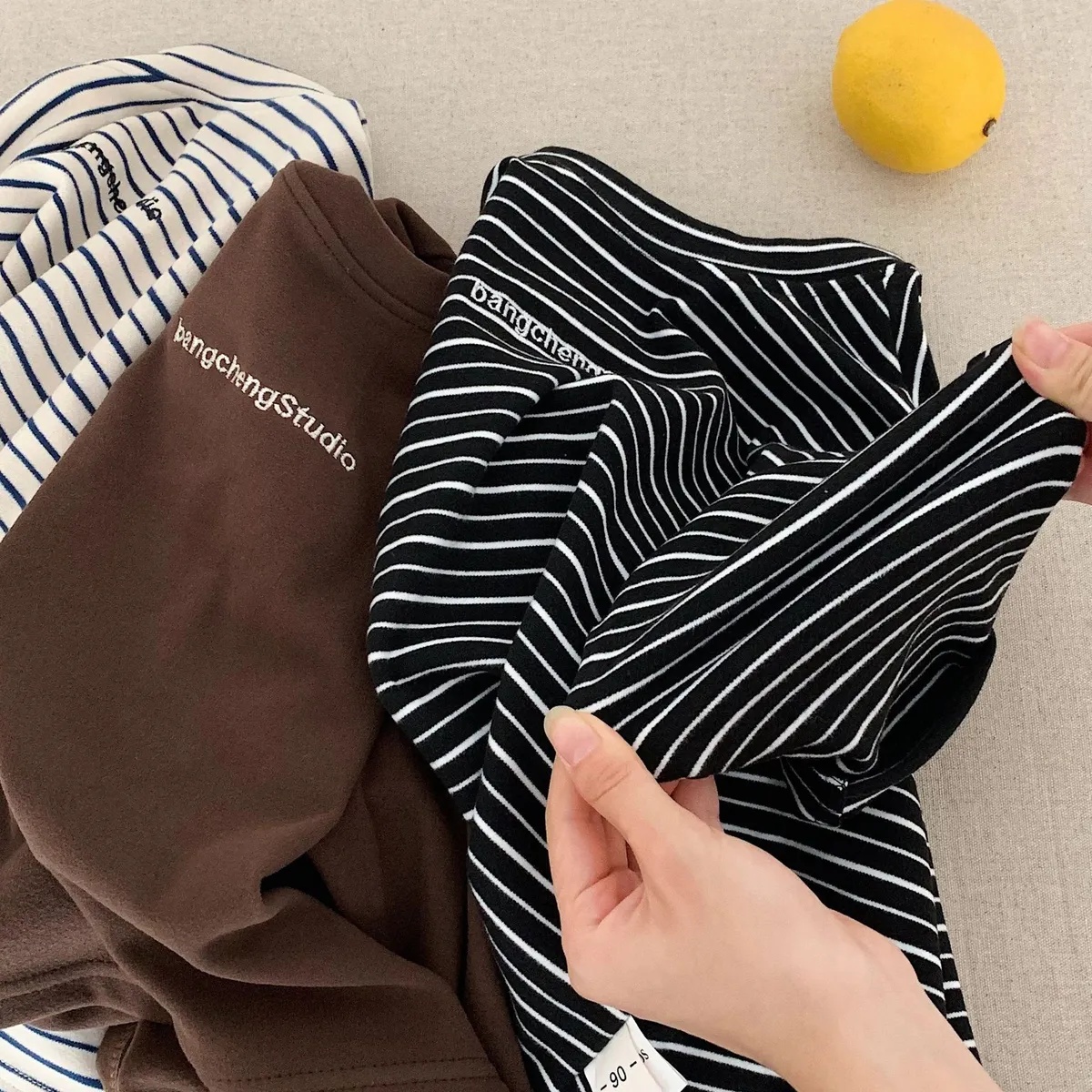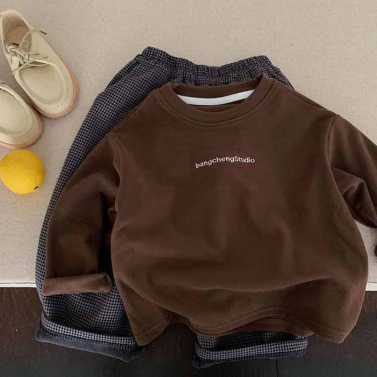 [90-140碼]基礎百搭刺繡英文內磨毛打底上衣-3色