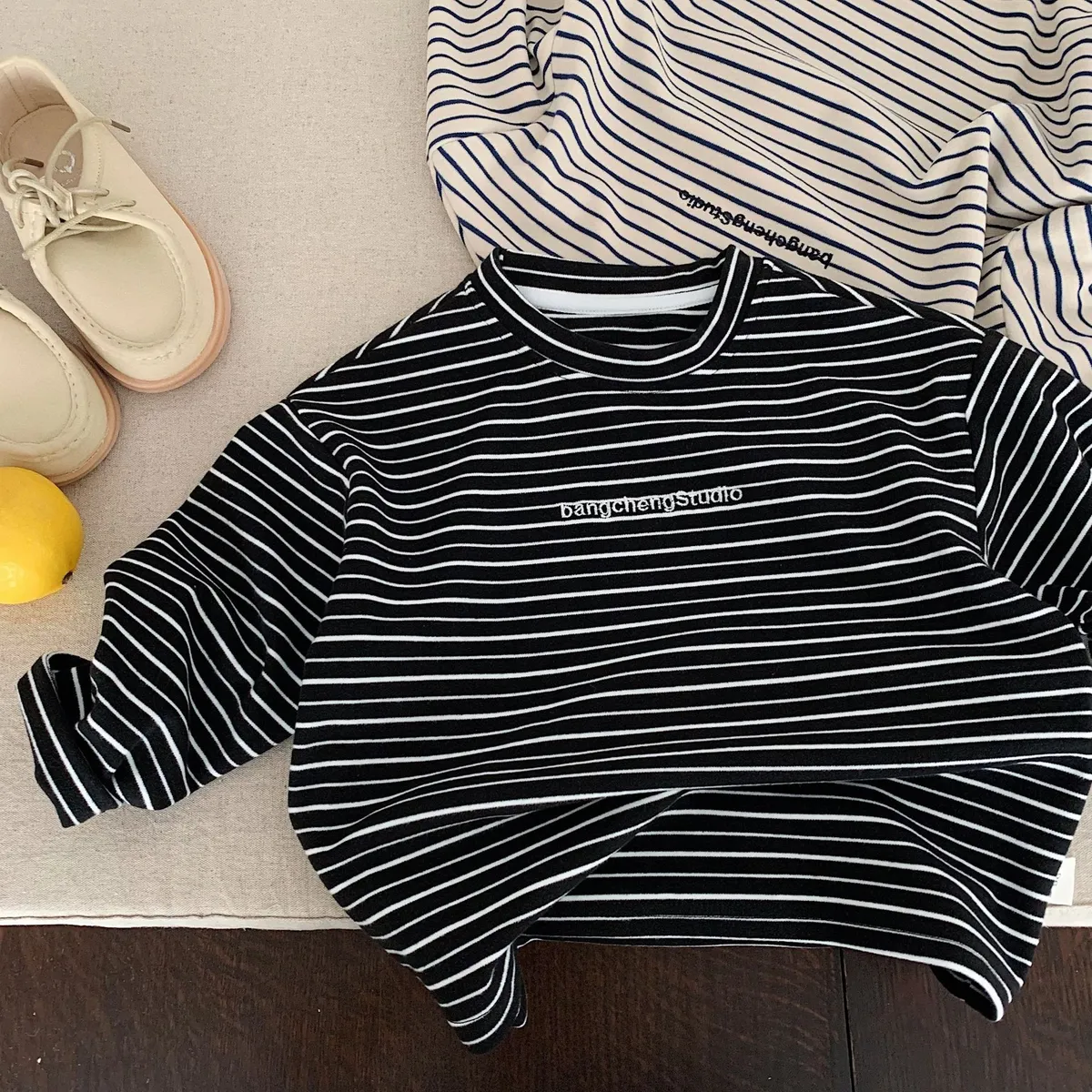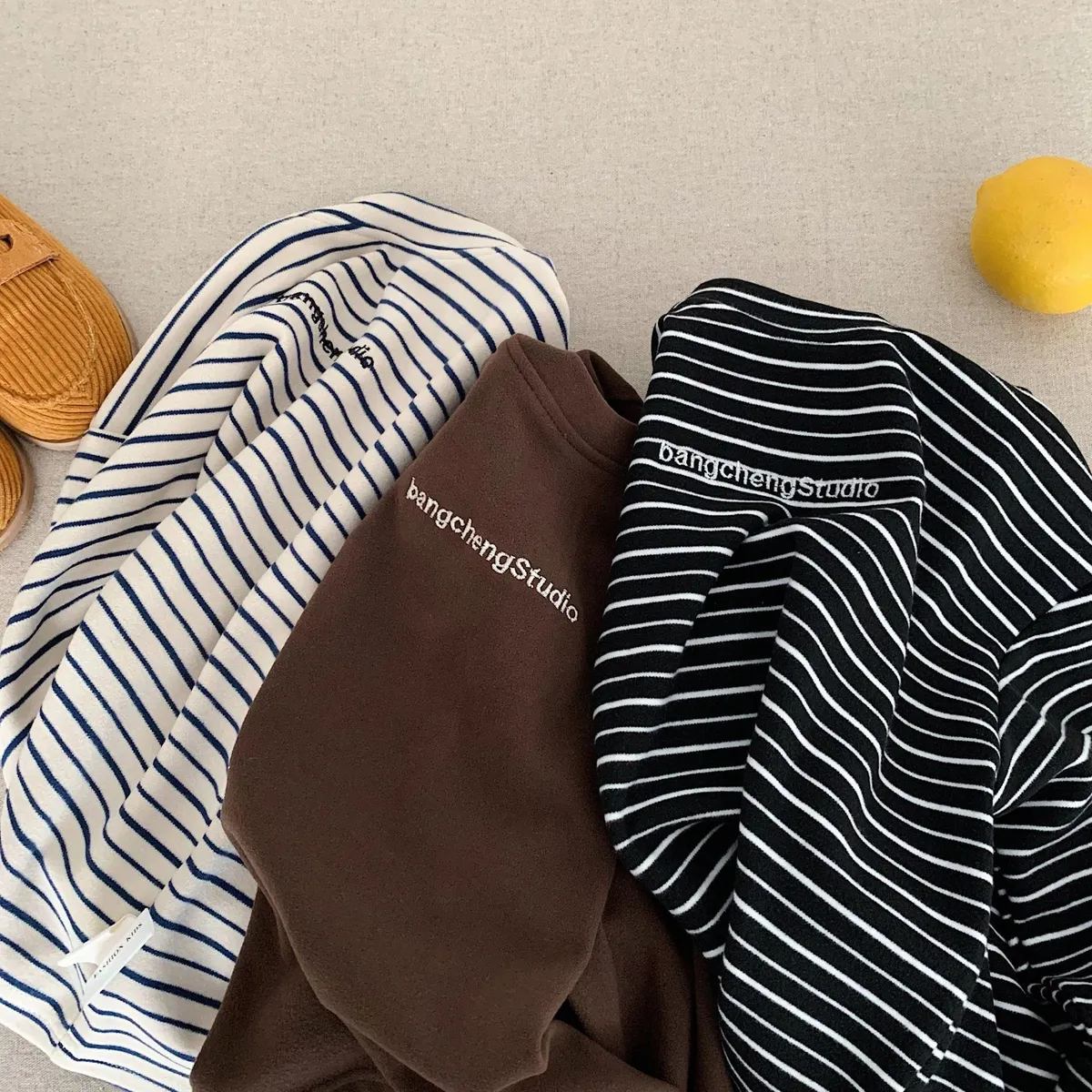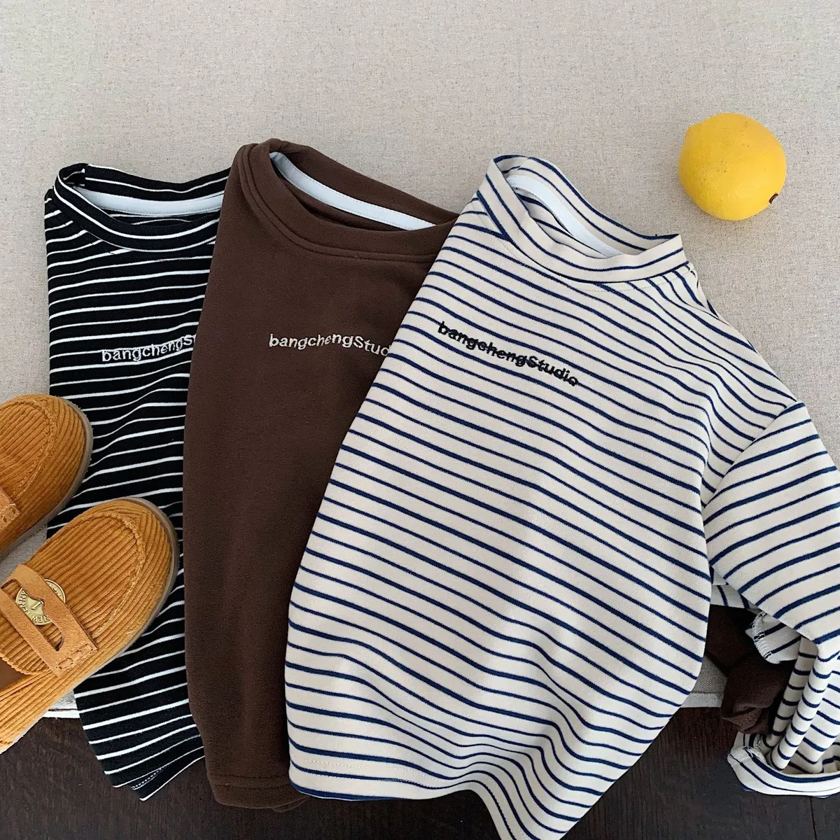 [90-140碼]基礎百搭刺繡英文內磨毛打底上衣-3色