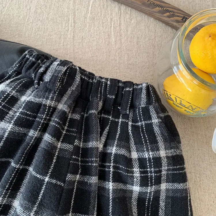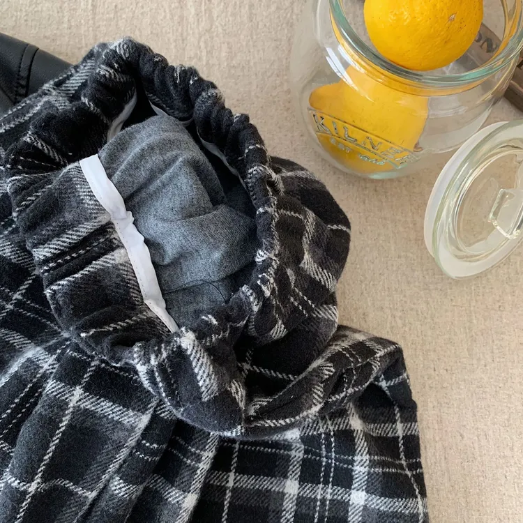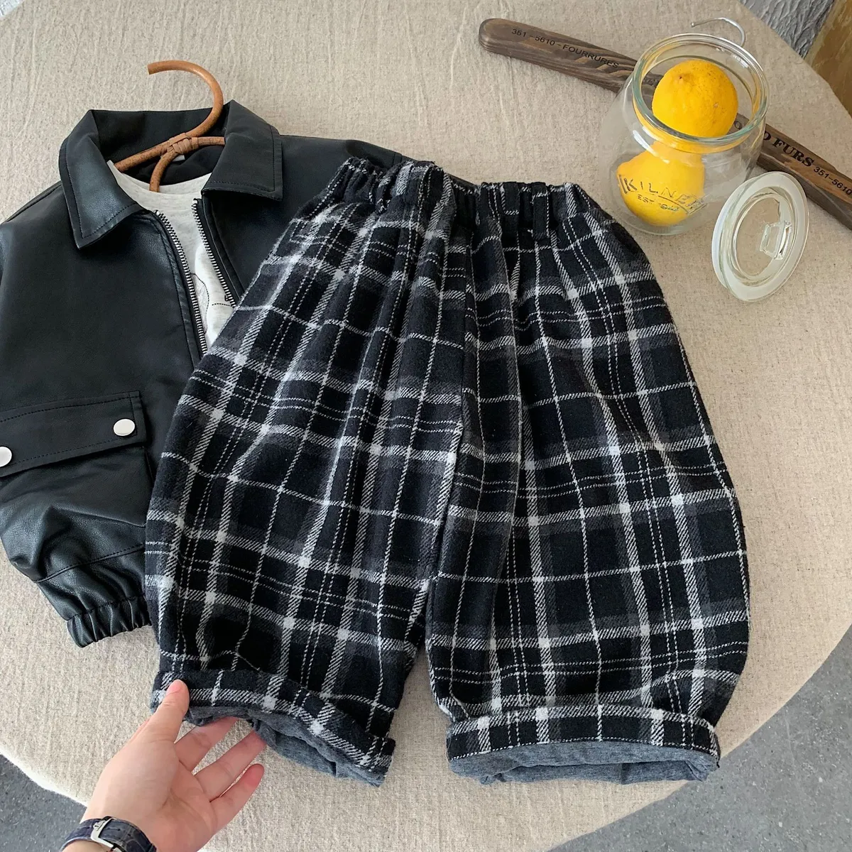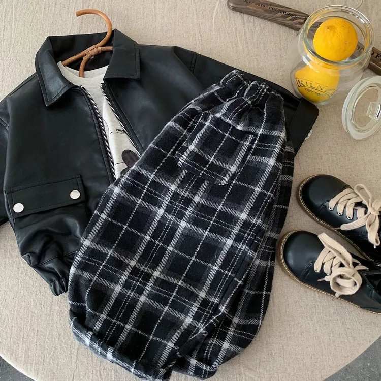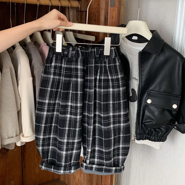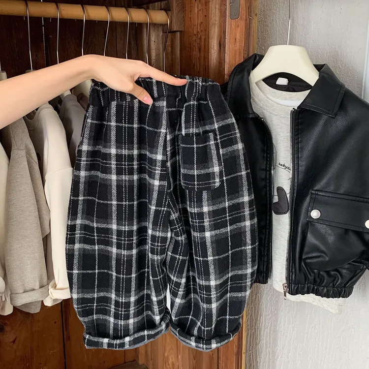 [90-140碼]加厚款#率性黑格紋休閒長褲