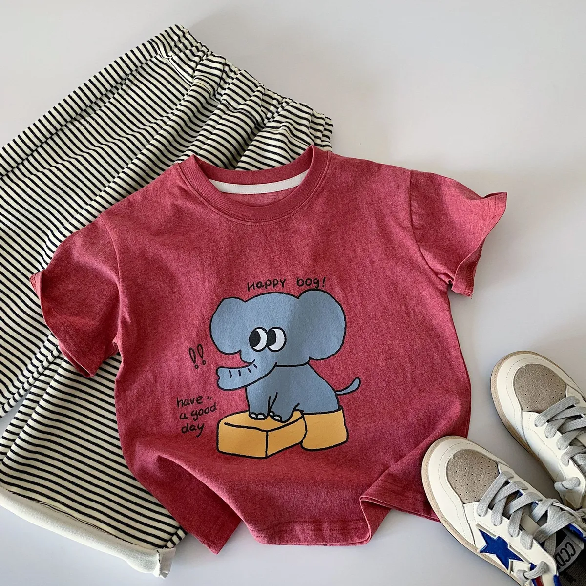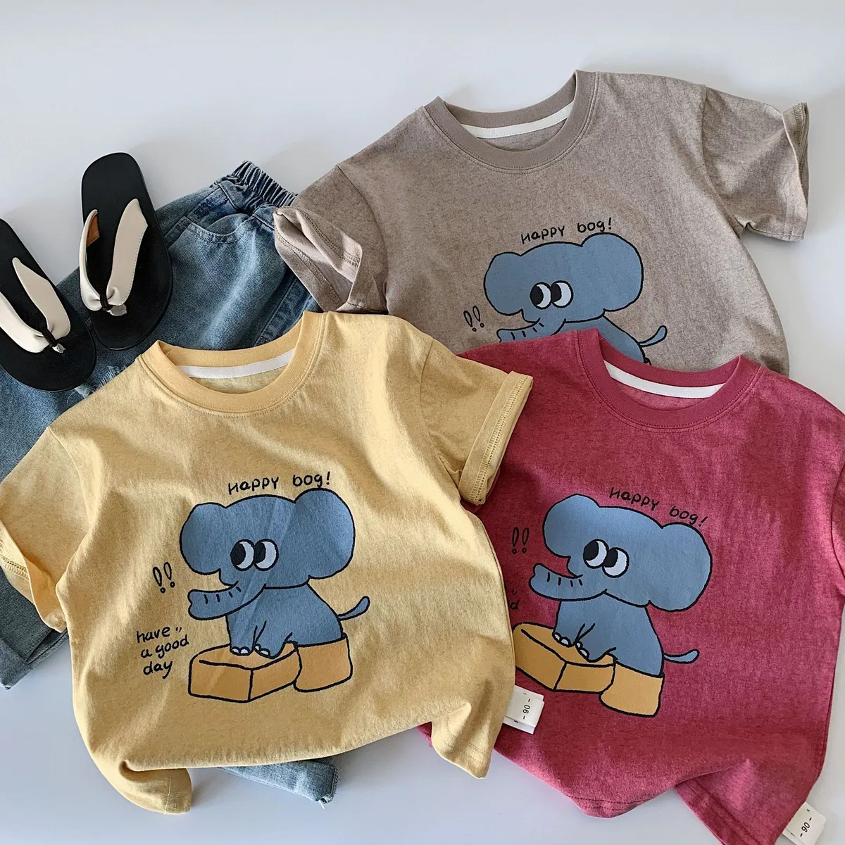 (90-140碼)可愛大象印花短T-3色