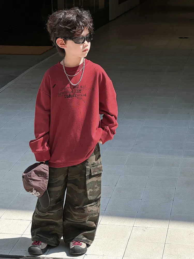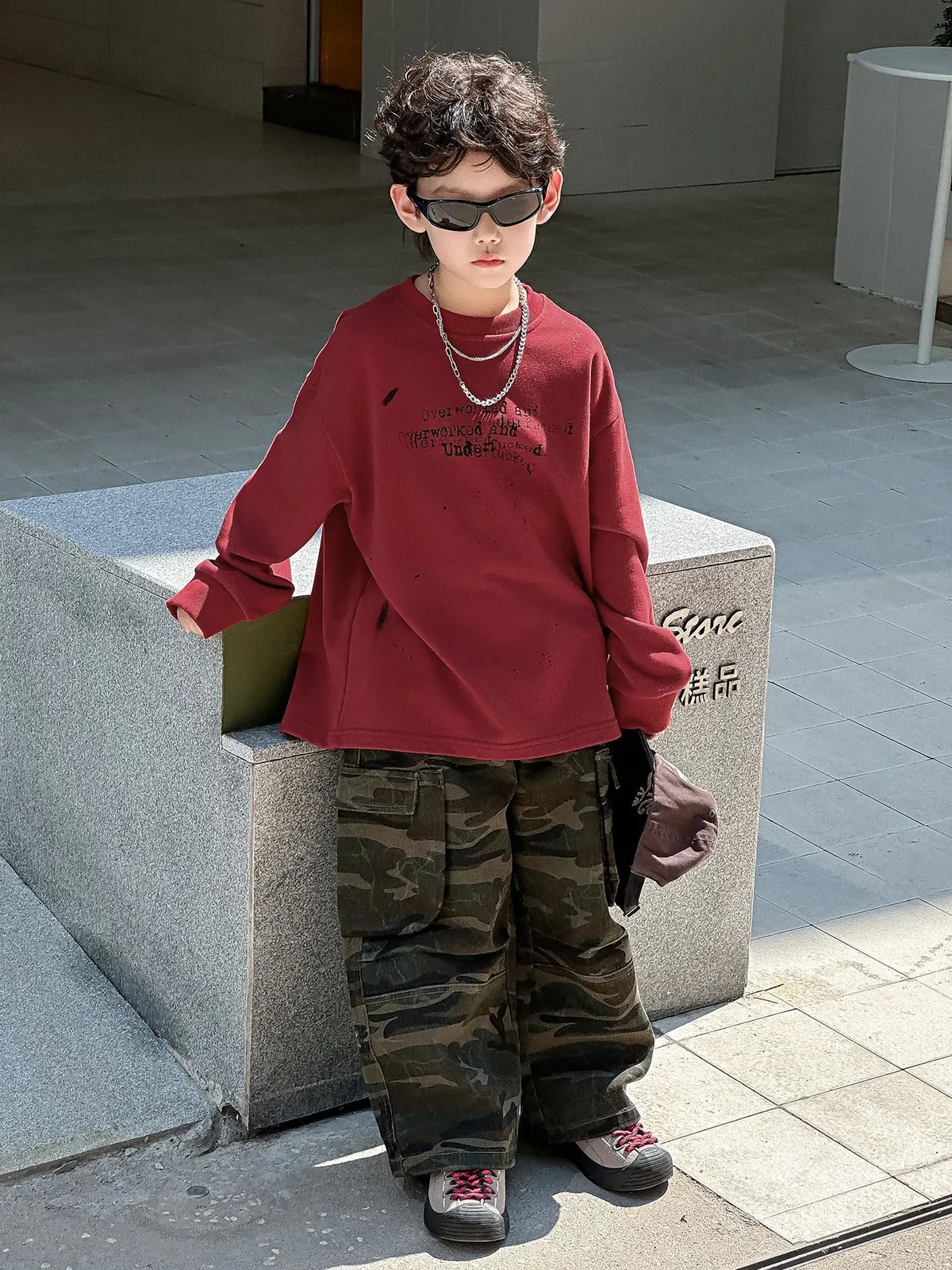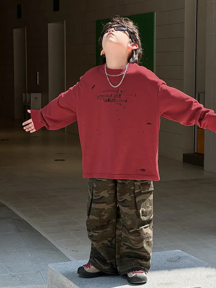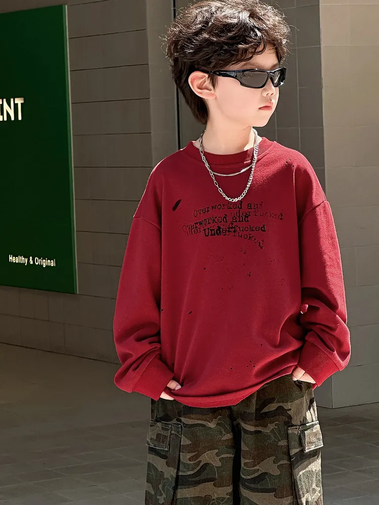 [90-150碼]潮帥仿舊感安可拉紅落肩上衣