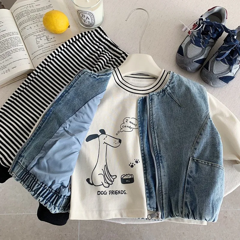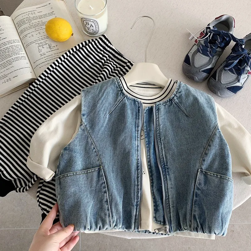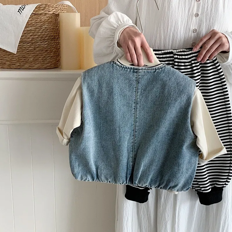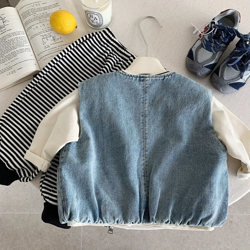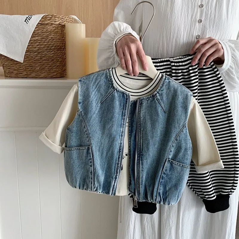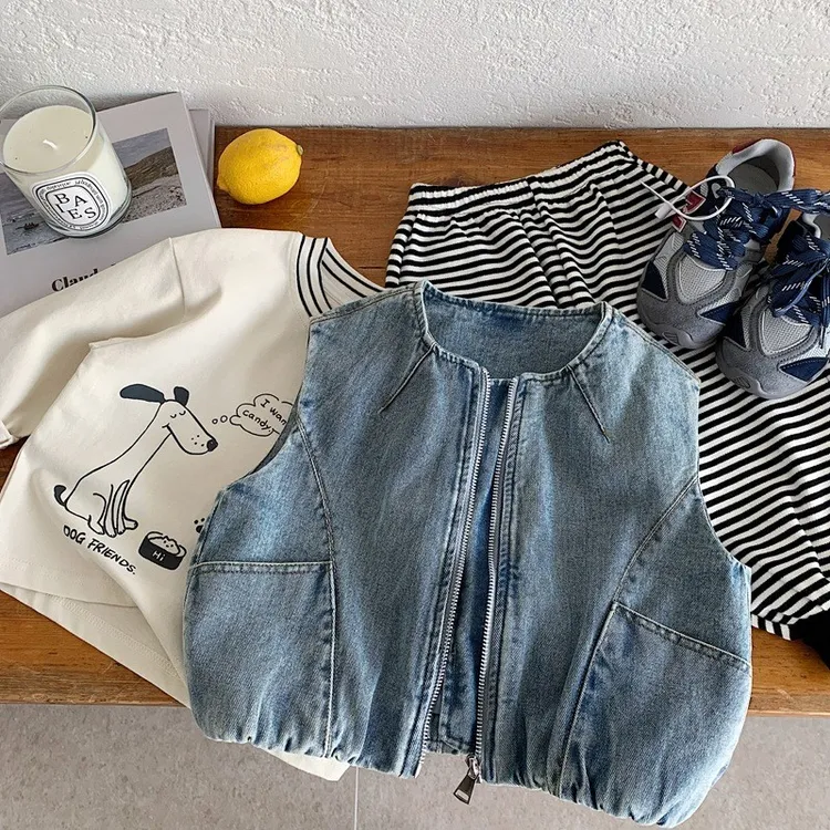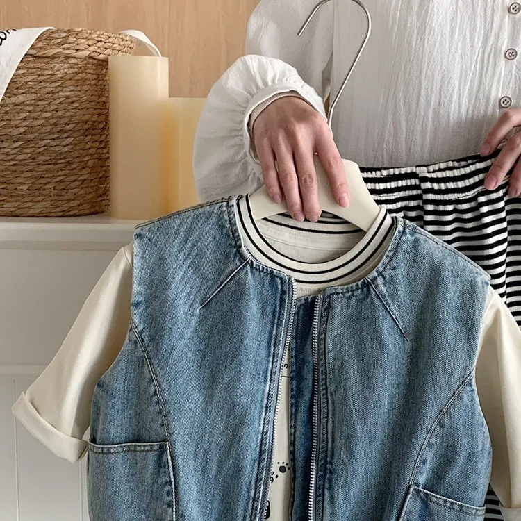 {90-130碼)痞帥牛仔拉鍊背心