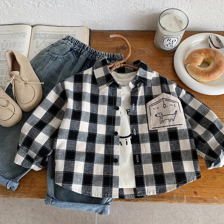 {90-130碼)超級帥~日系格紋襯衫
