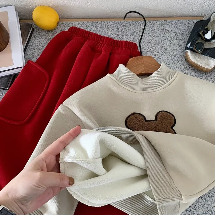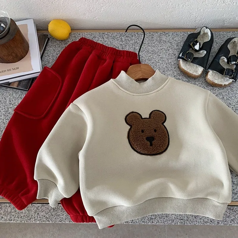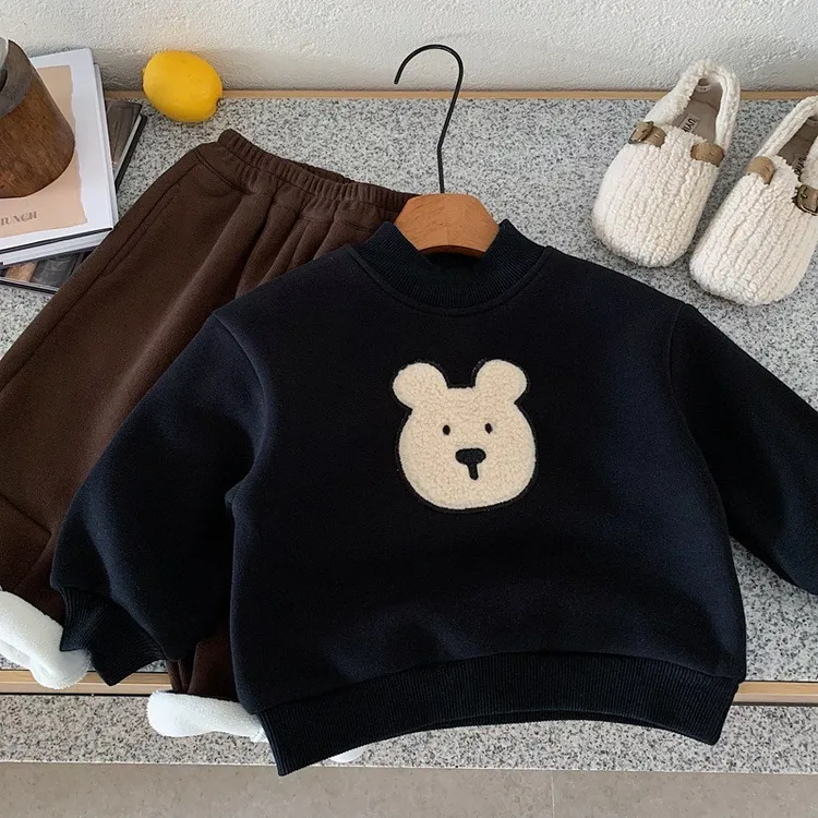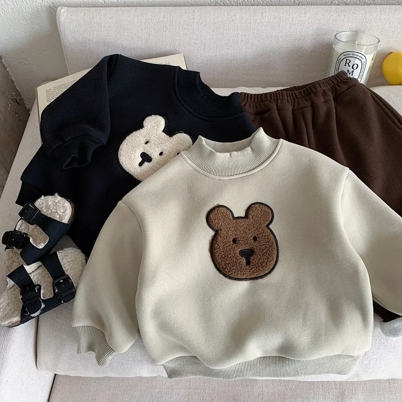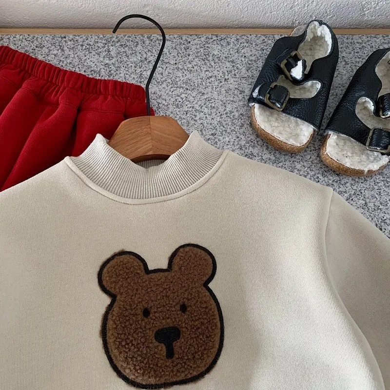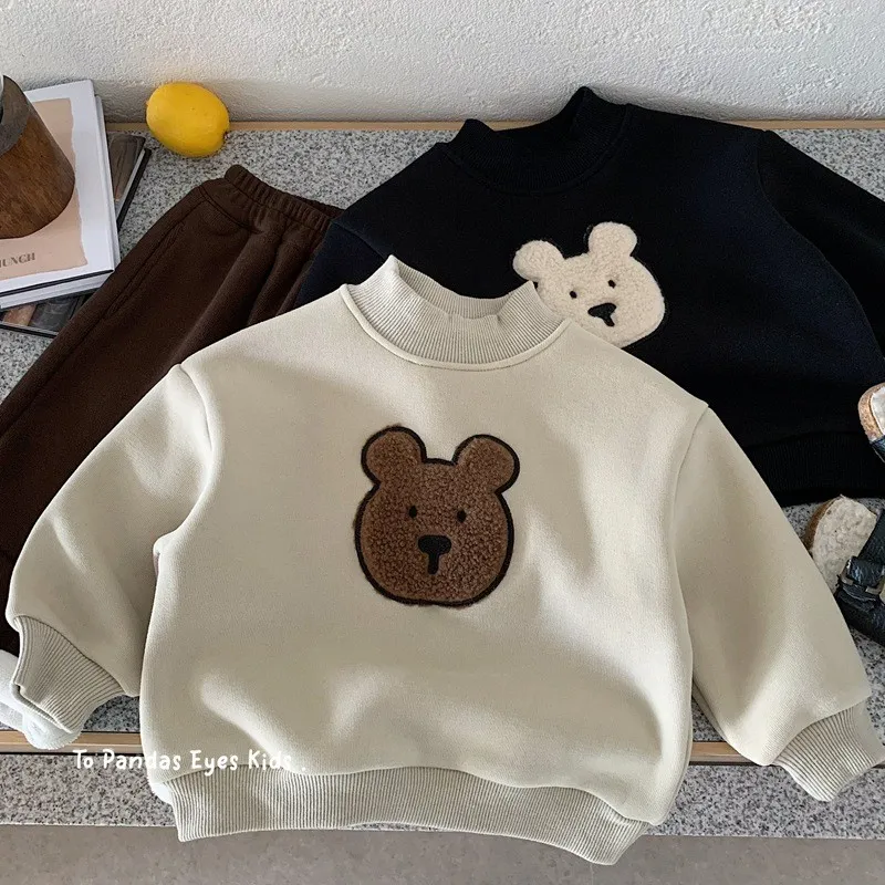 [90-130碼]加絨款#小熊熊印花大學T-2色