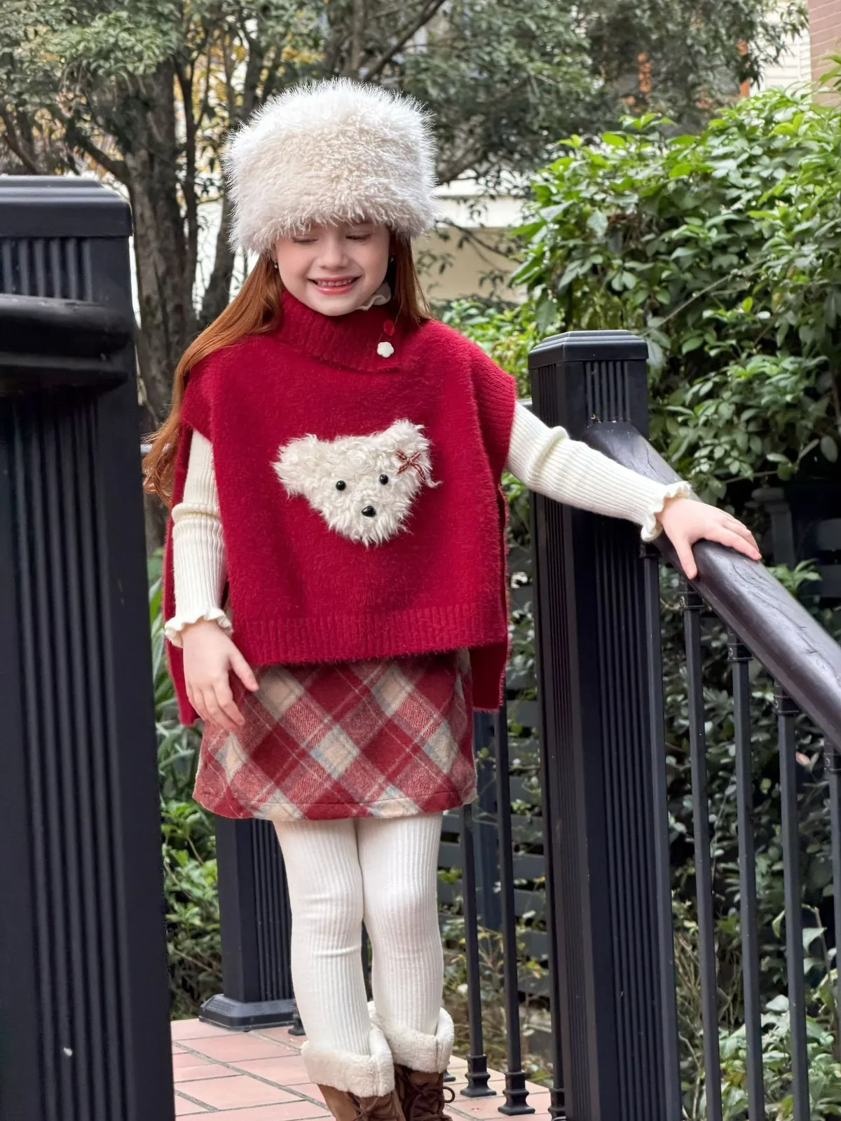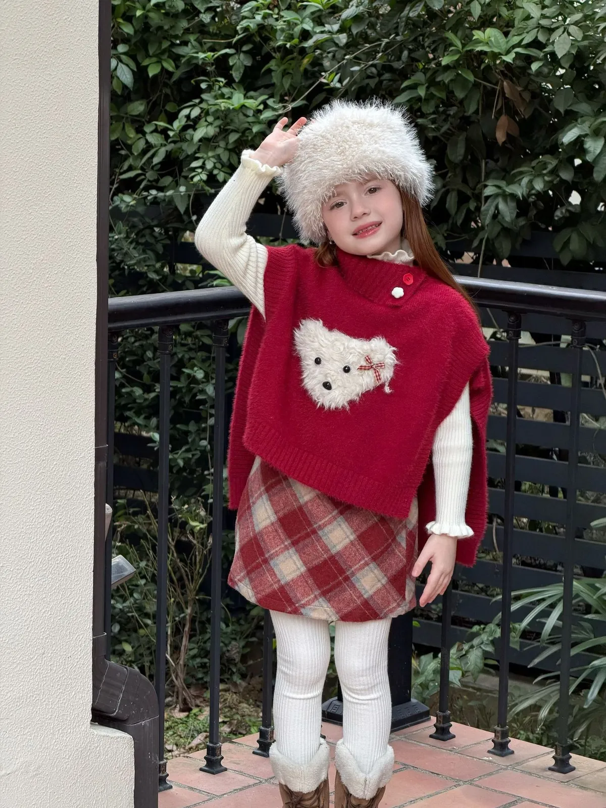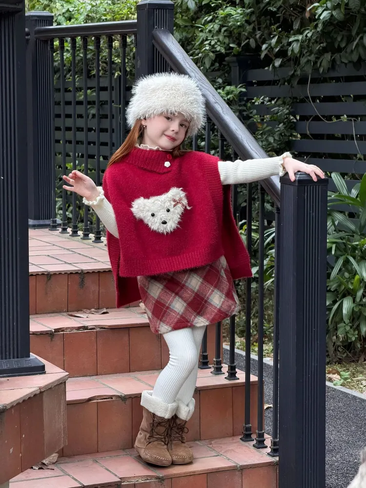 [90-150碼]甜美小狗狗半高領毛衣斗篷