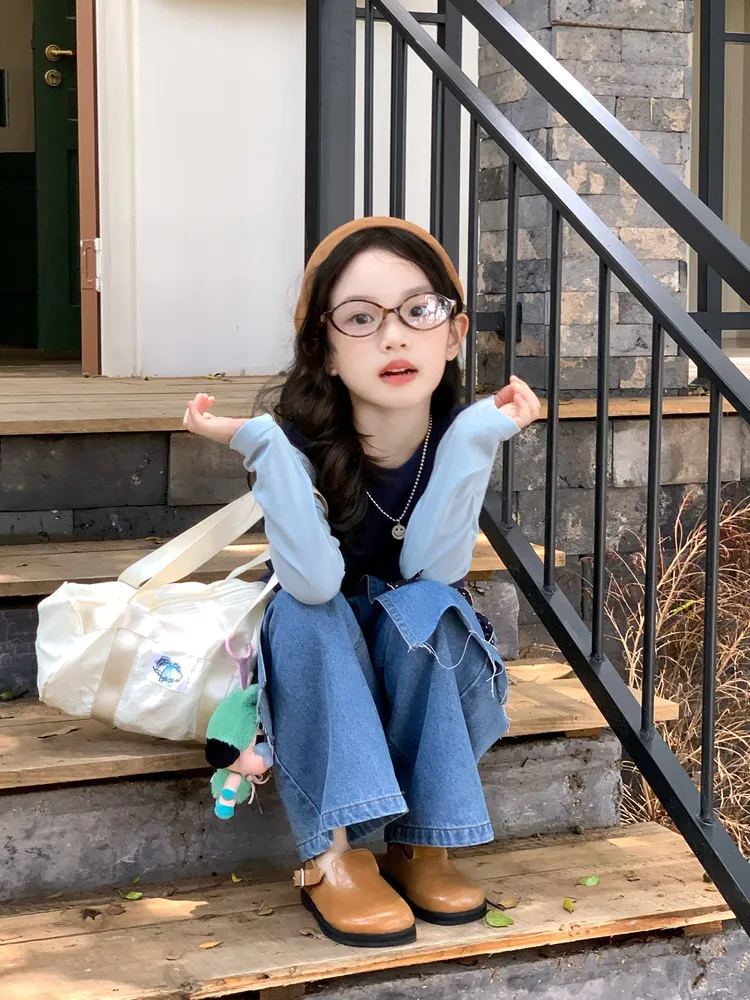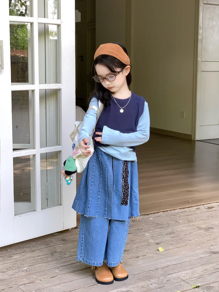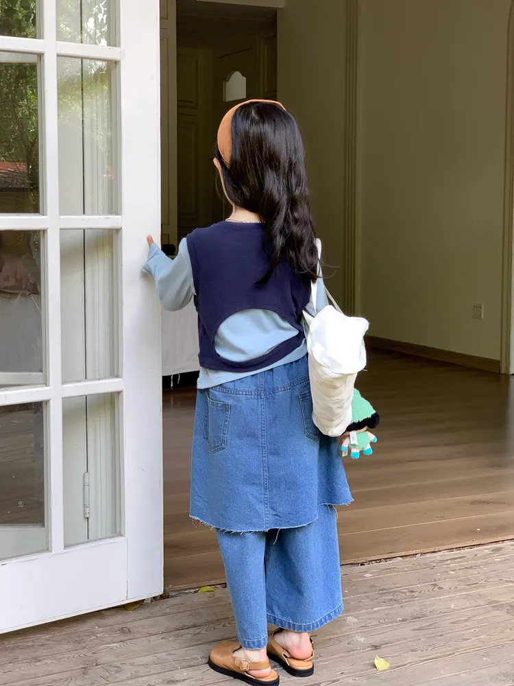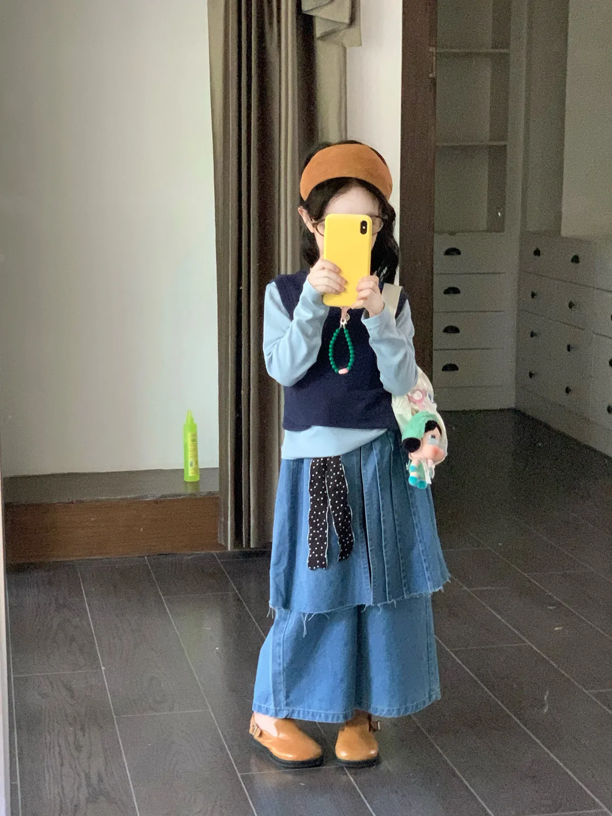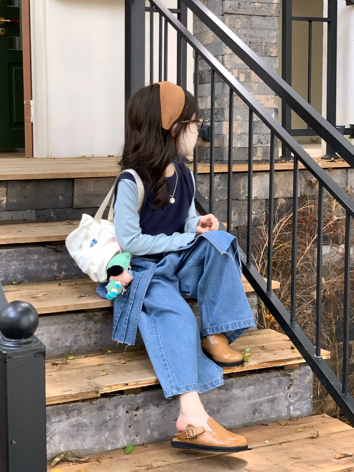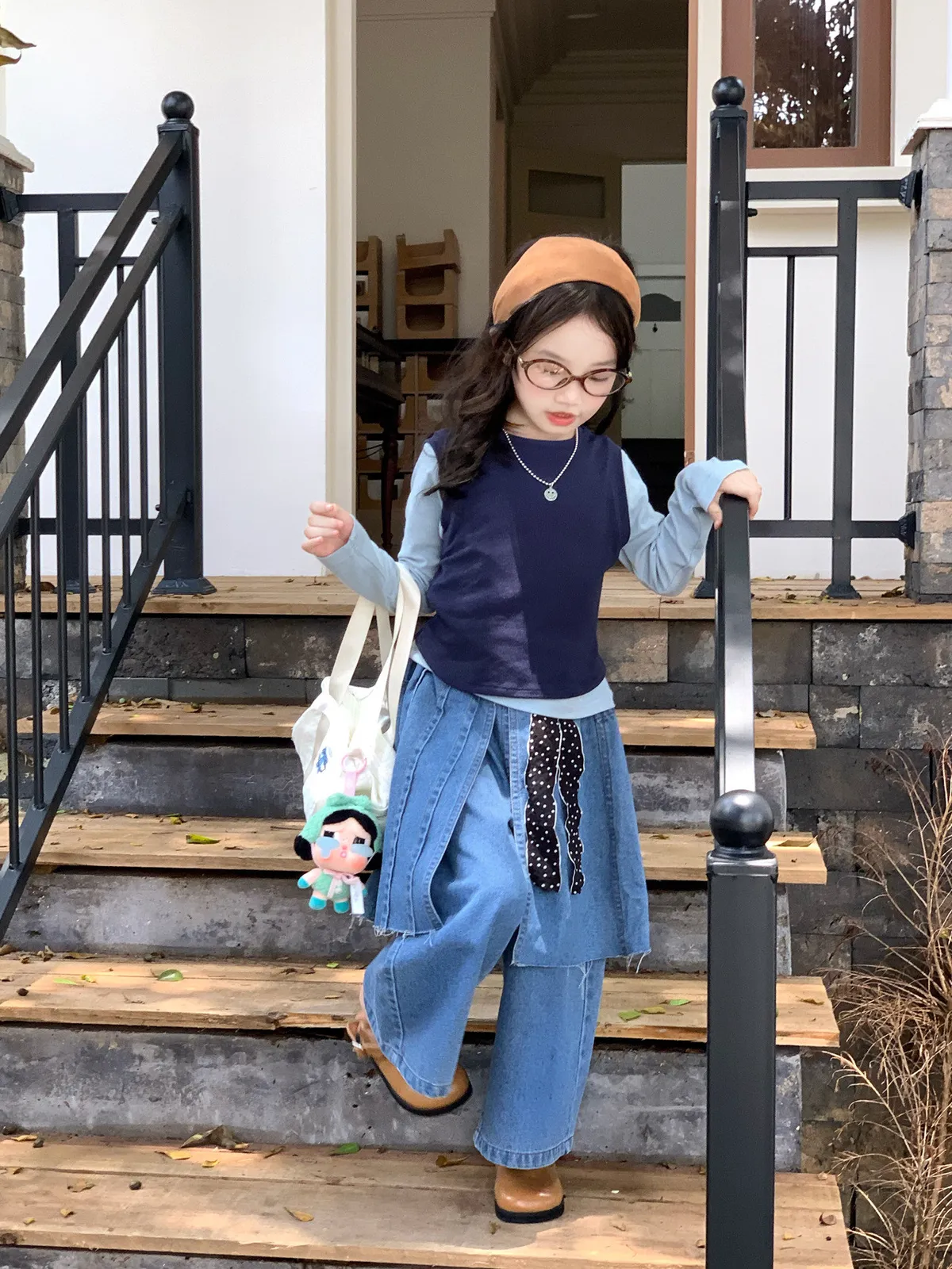 [90-140碼]設計感堆疊上衣/屁簾牛仔褲