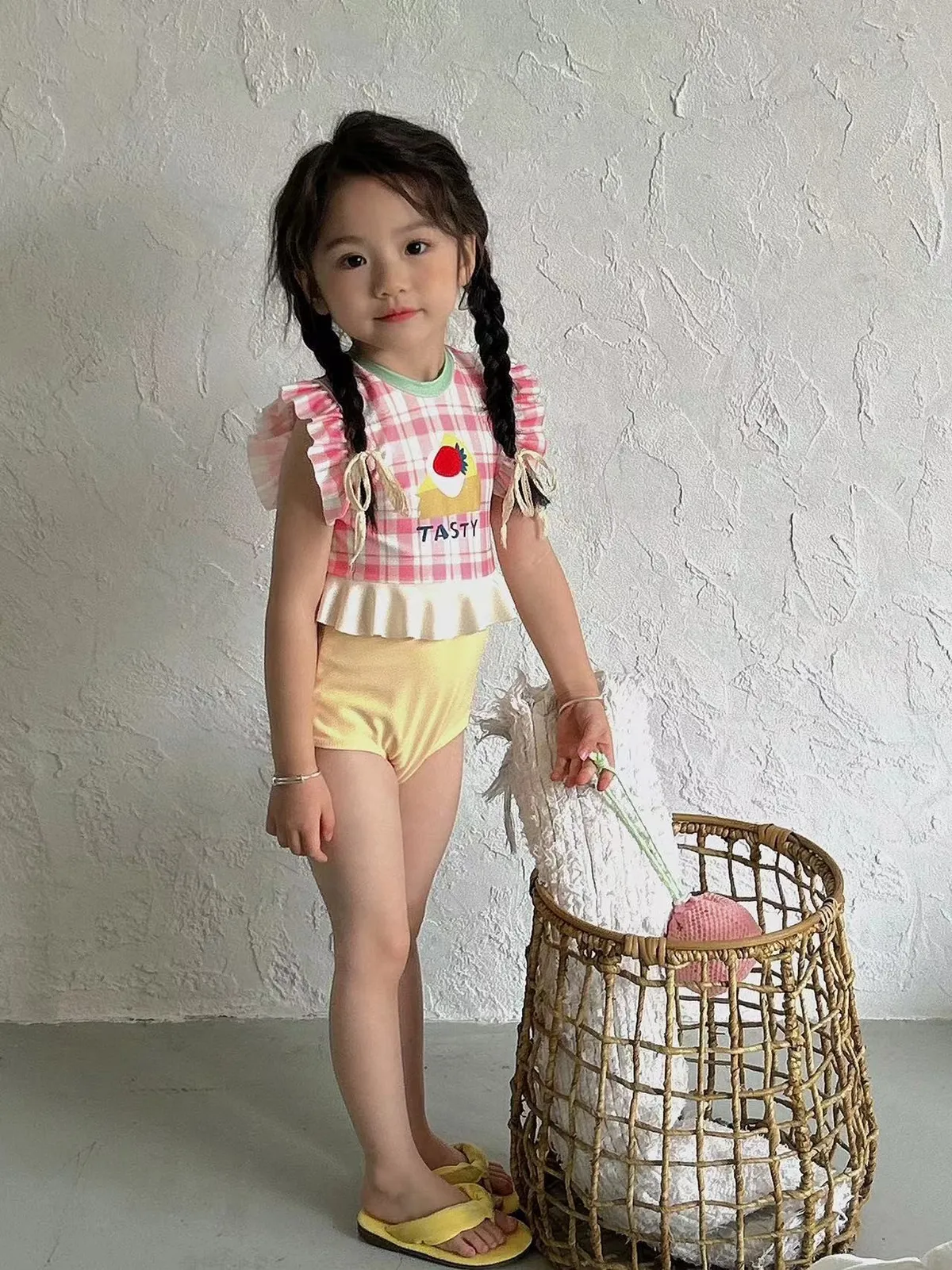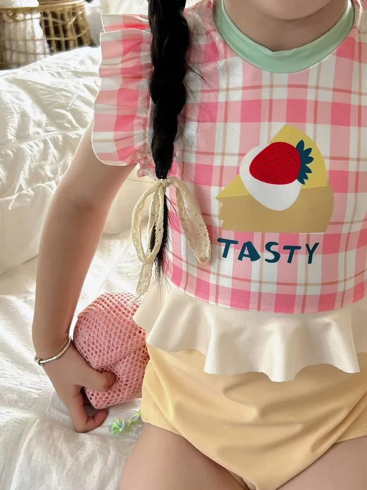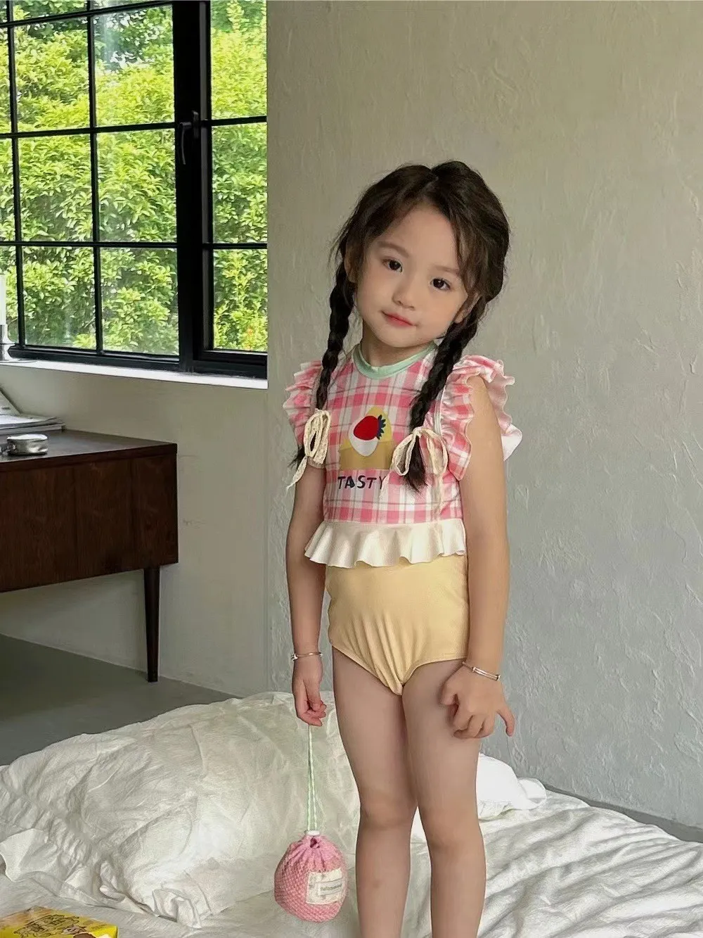 (90-140碼)甜美小蛋糕連身泳裝-送泳帽