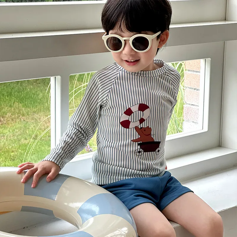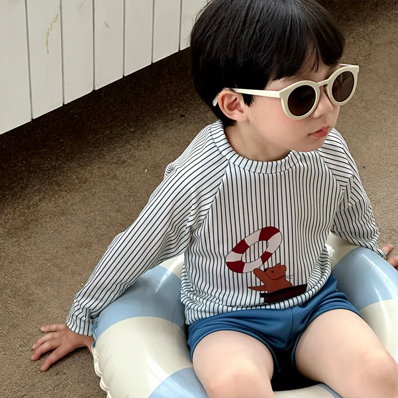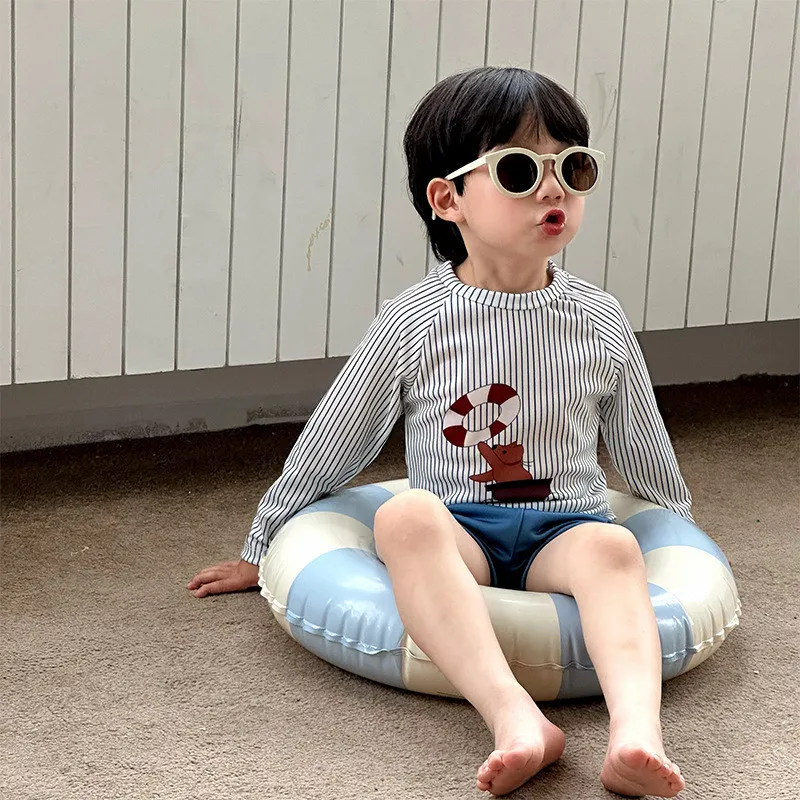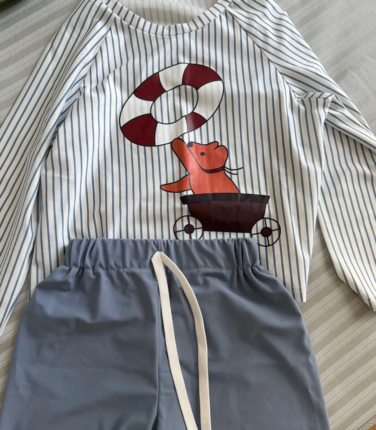 材質:聚酯纖維(長袖+褲子+同款條紋泳帽set) 💡泳衣建議身高+10公分選尺碼 比較有肉的寶寶建議身高+20公分選購泳裝材質和普通衣物不同❗️貼身更好穿,太寬鬆下水會飄起來加上阻力較大 ,游泳不好穿哦❗️
