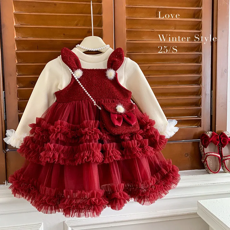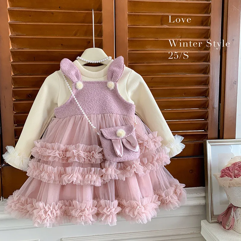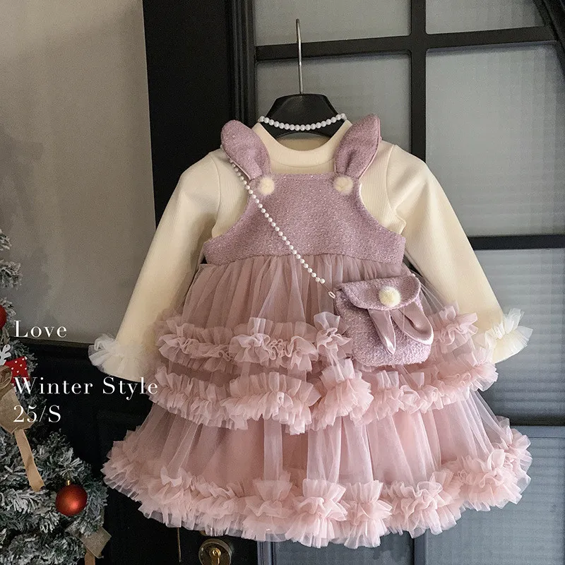 [90-130碼]加絨款#小香風兩件式連身洋送包包-2色