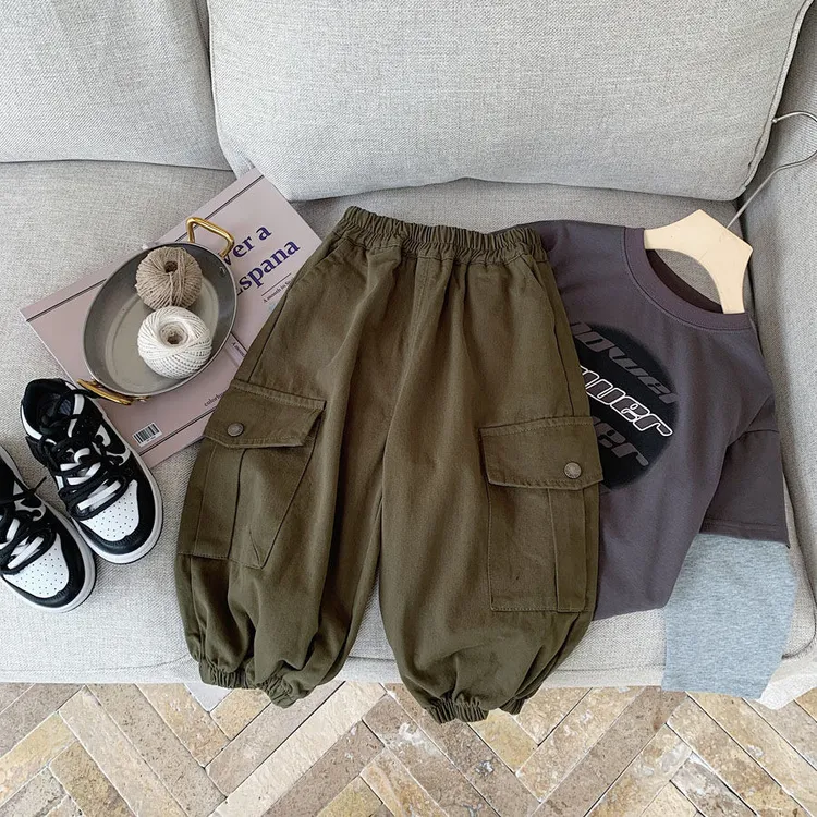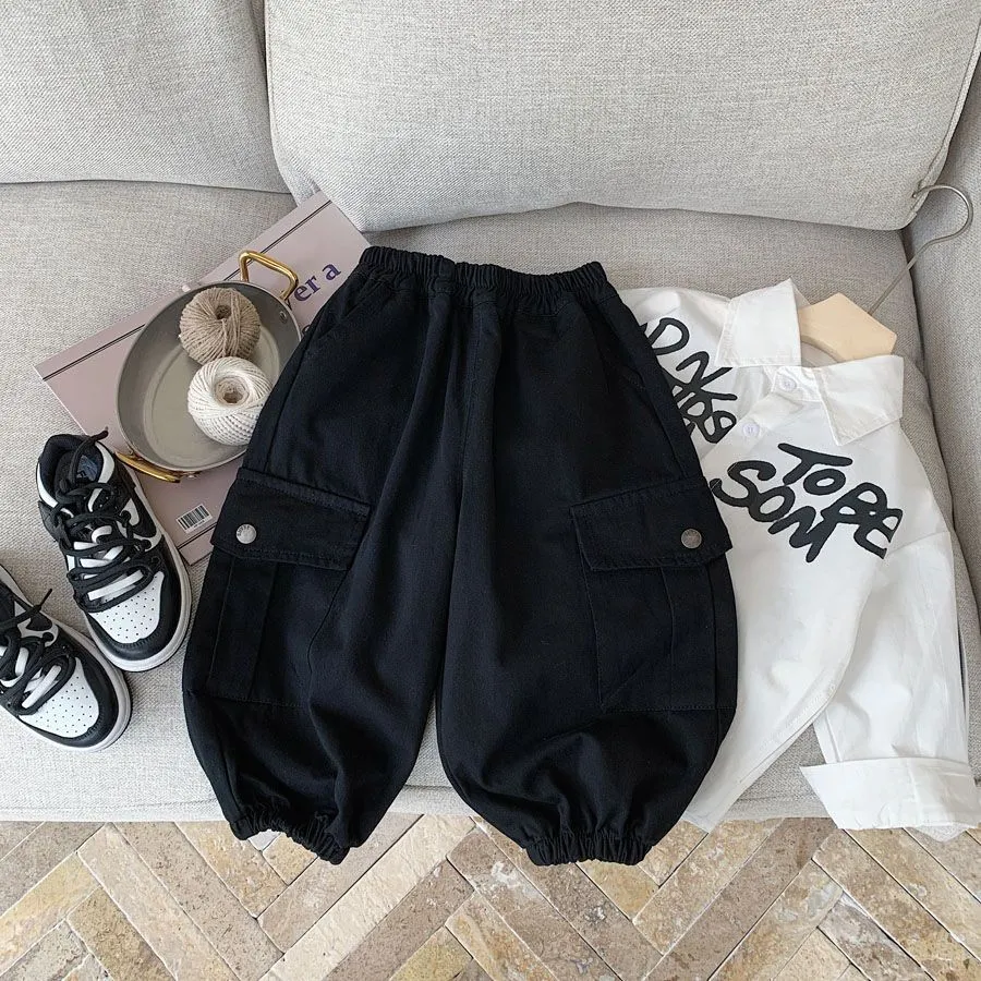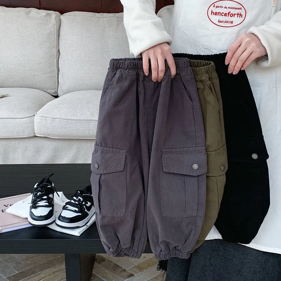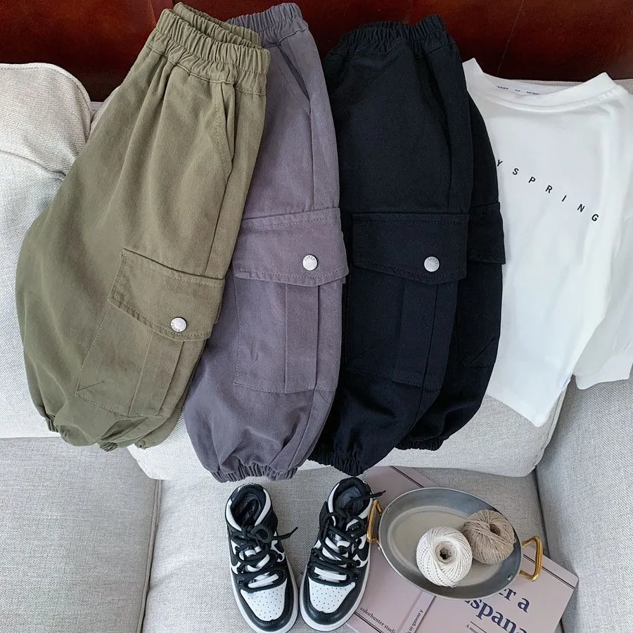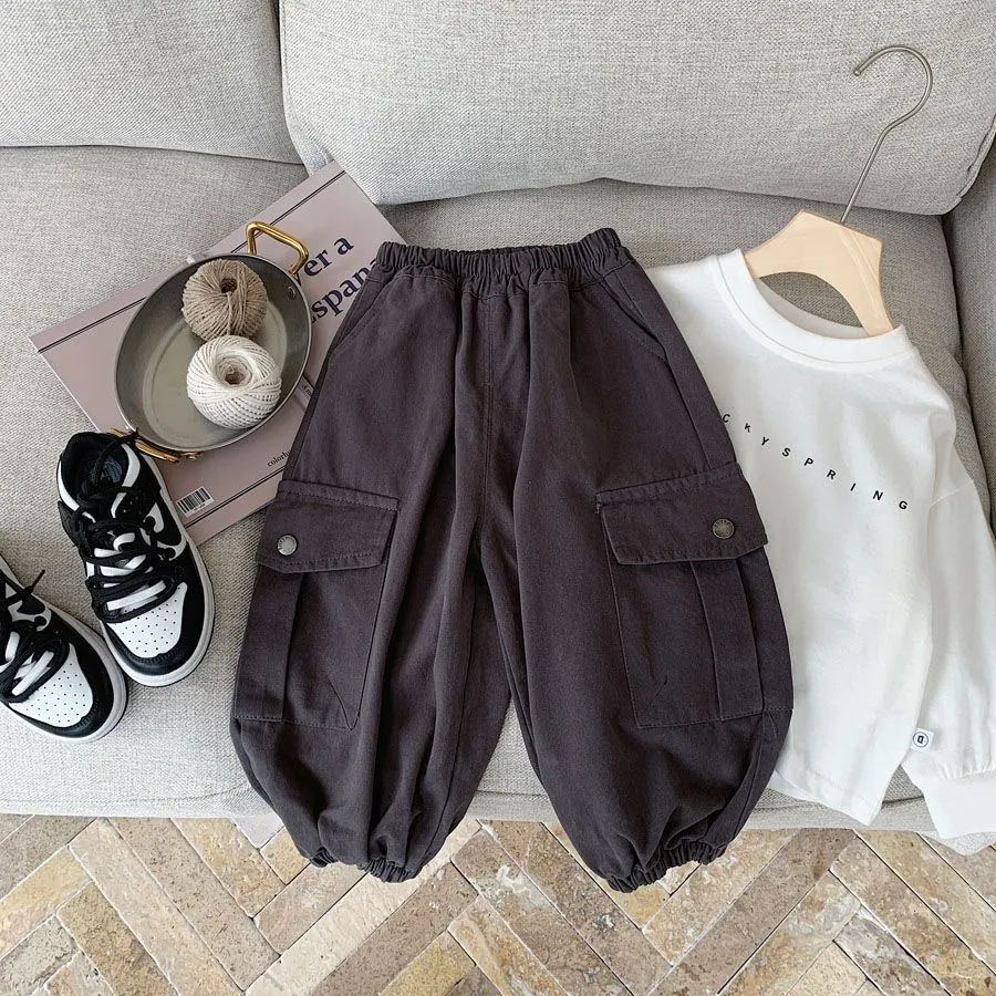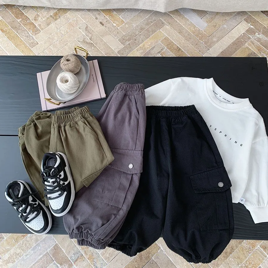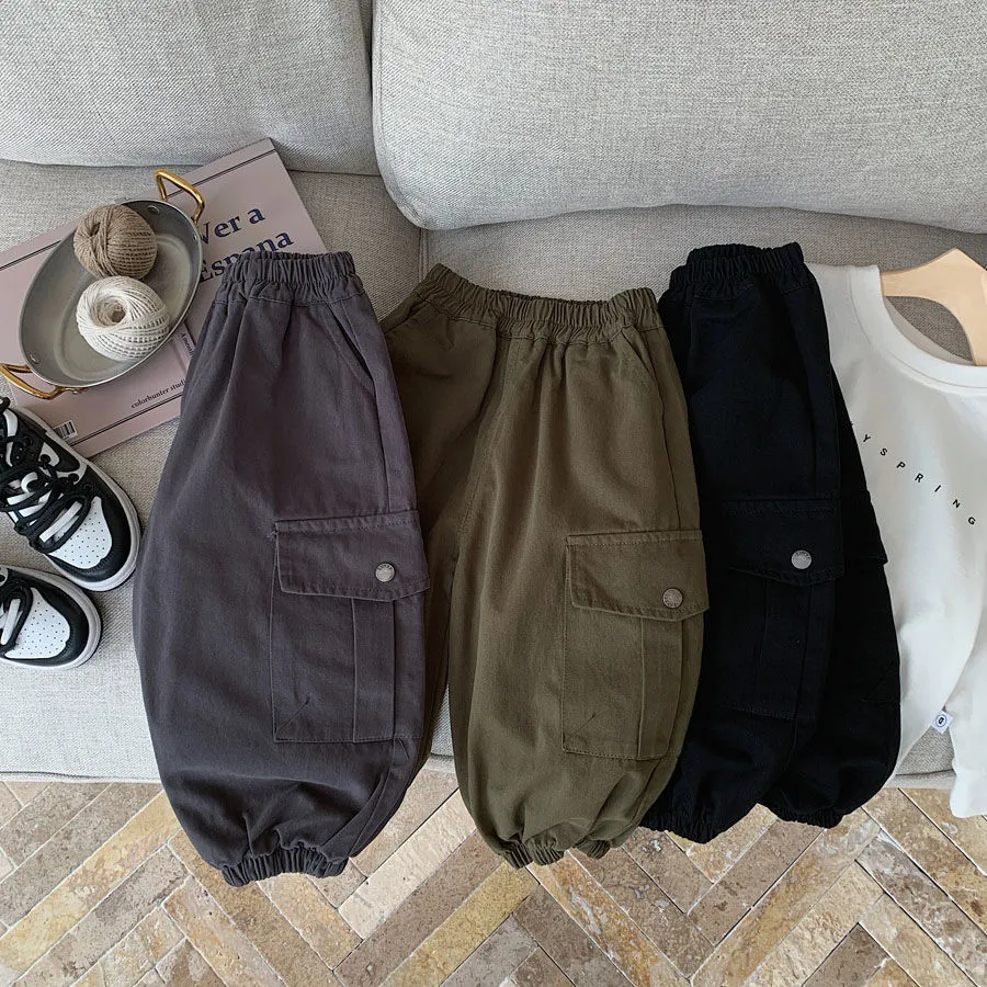 [90-140碼]基礎百搭側貼袋束腳工裝褲-3色