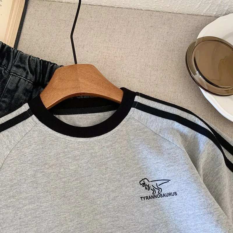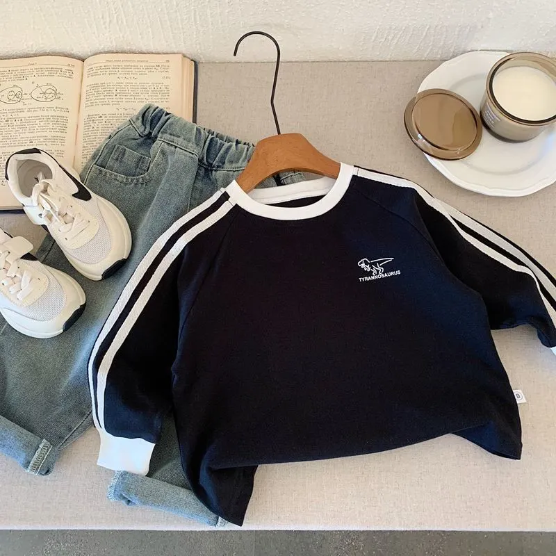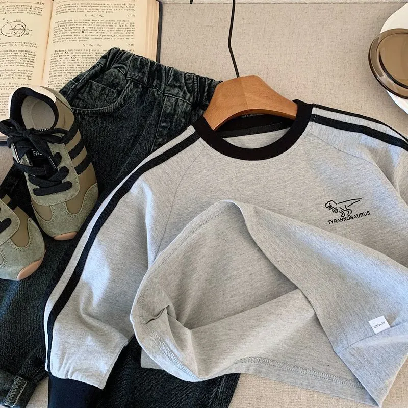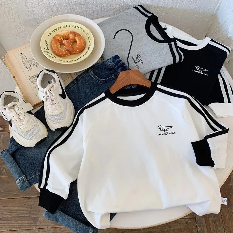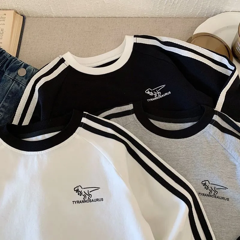 [90-140碼]恐龍印花撞色休閒上衣-3色