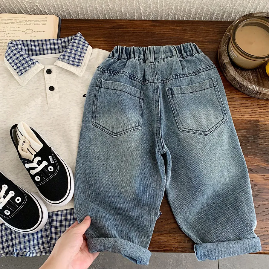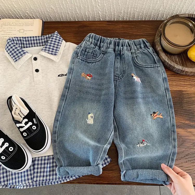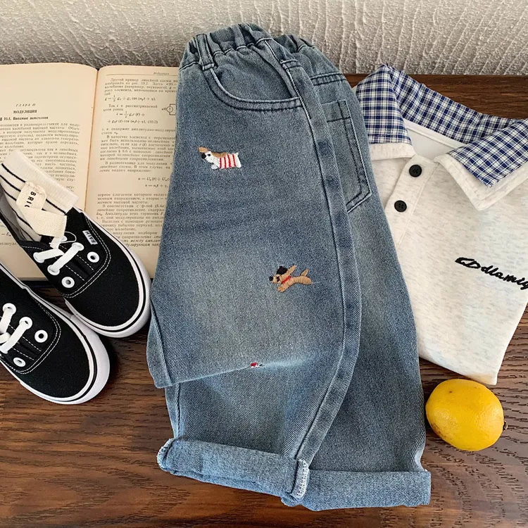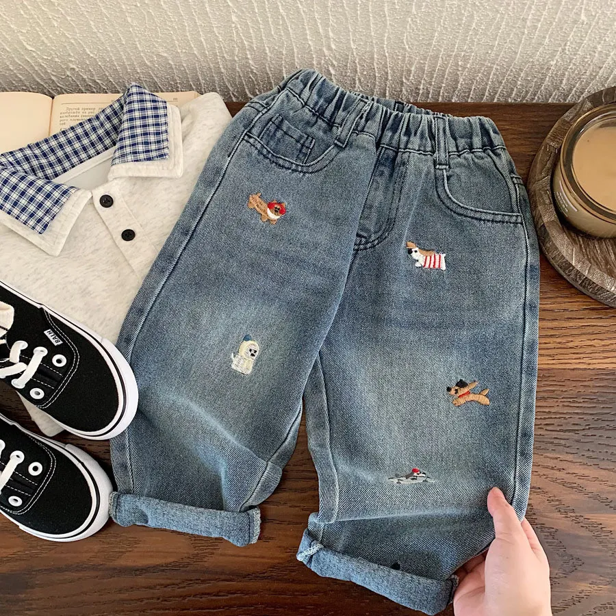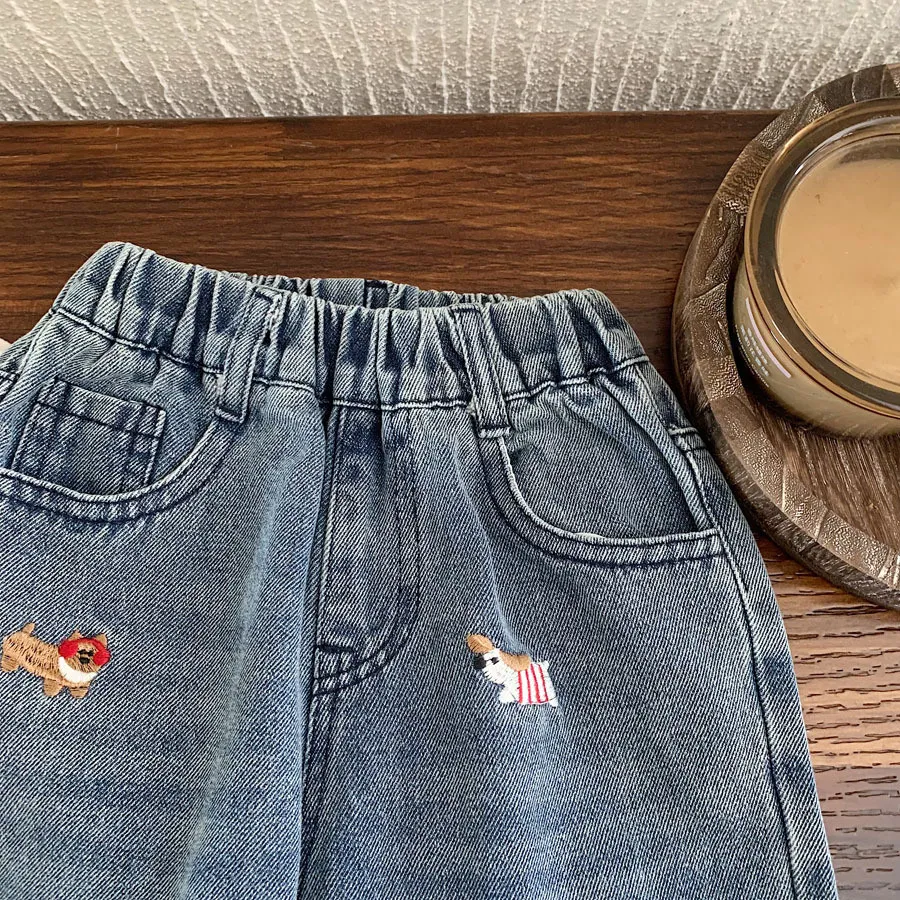 [90-140碼]重工刺繡水洗柔軟牛仔褲