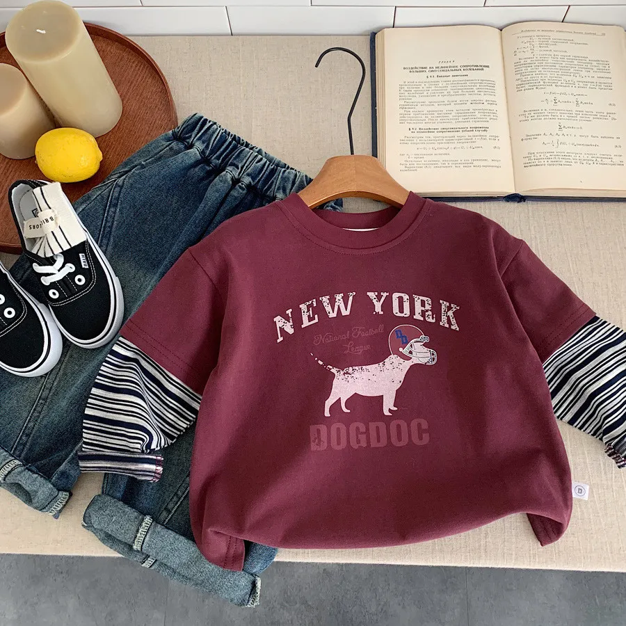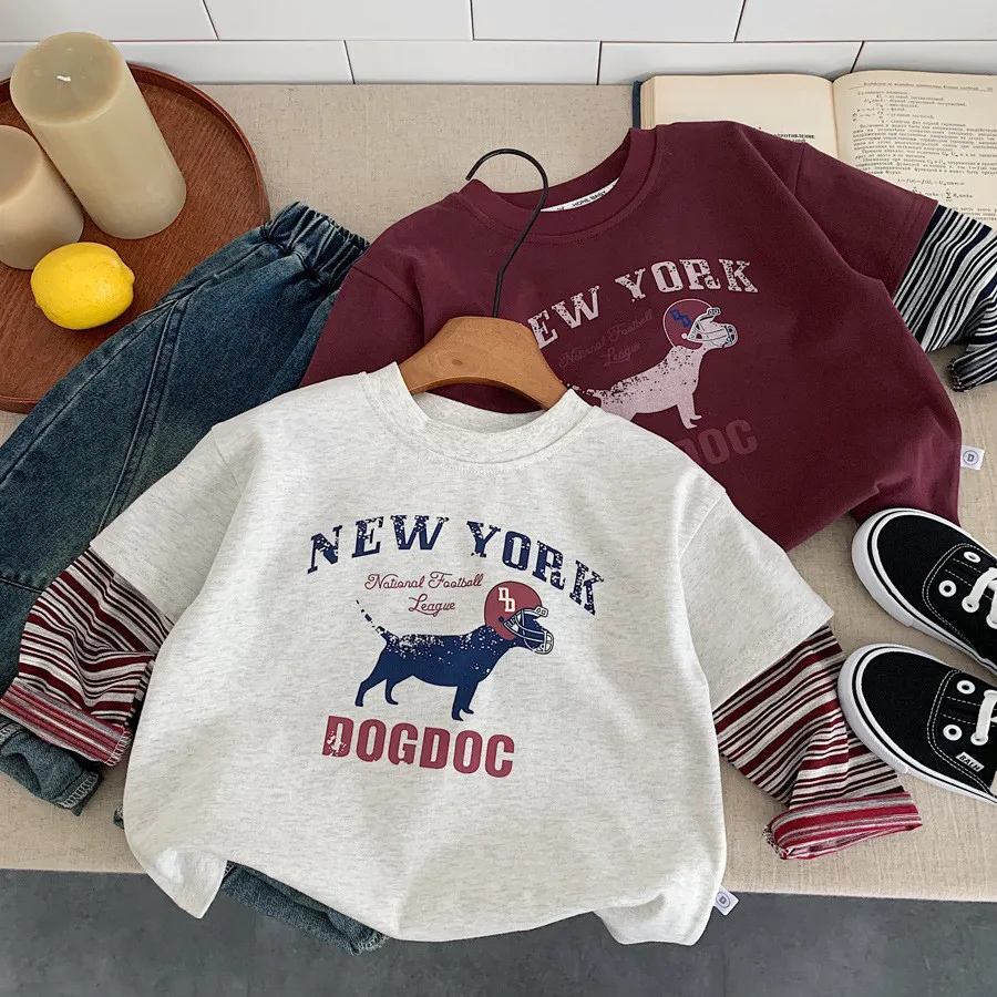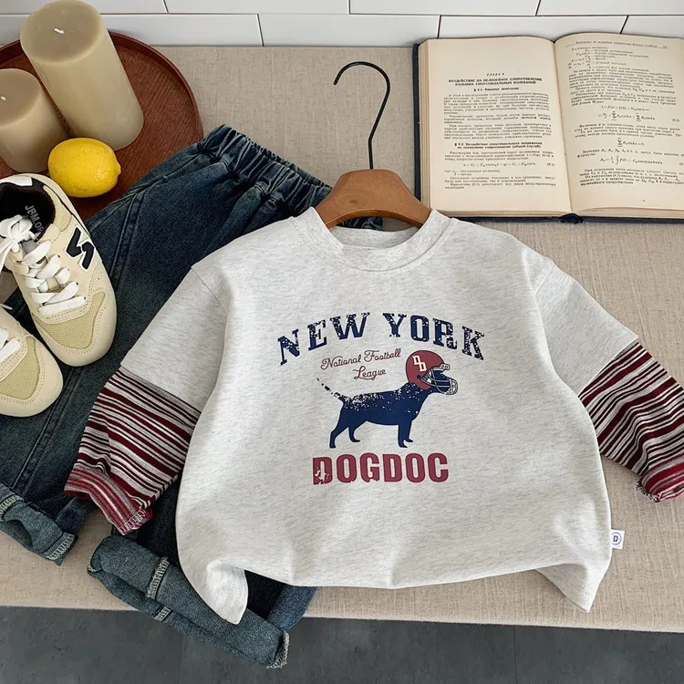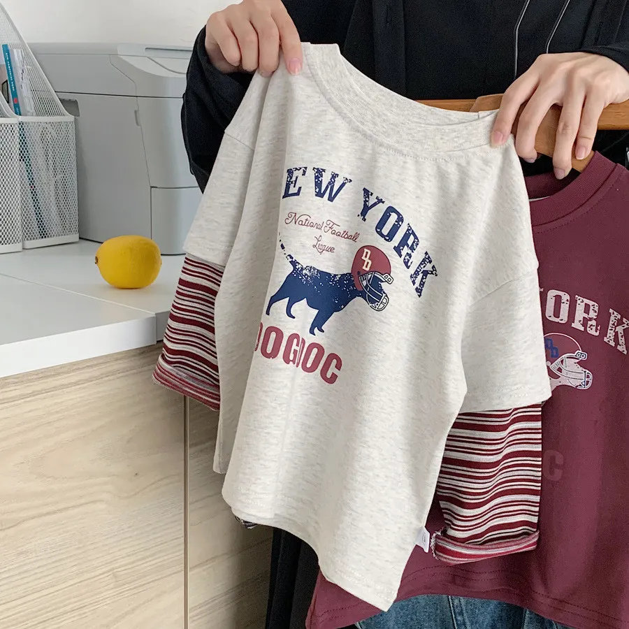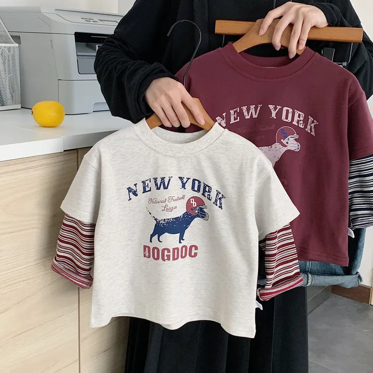 [90-140碼]美式狗狗假兩件上衣-2色