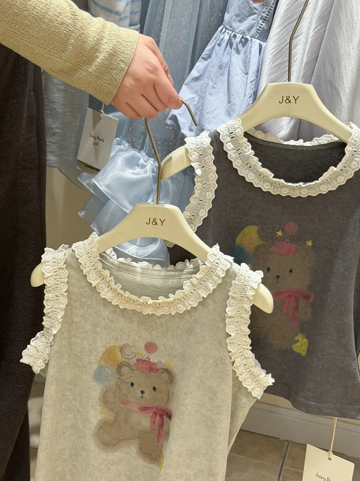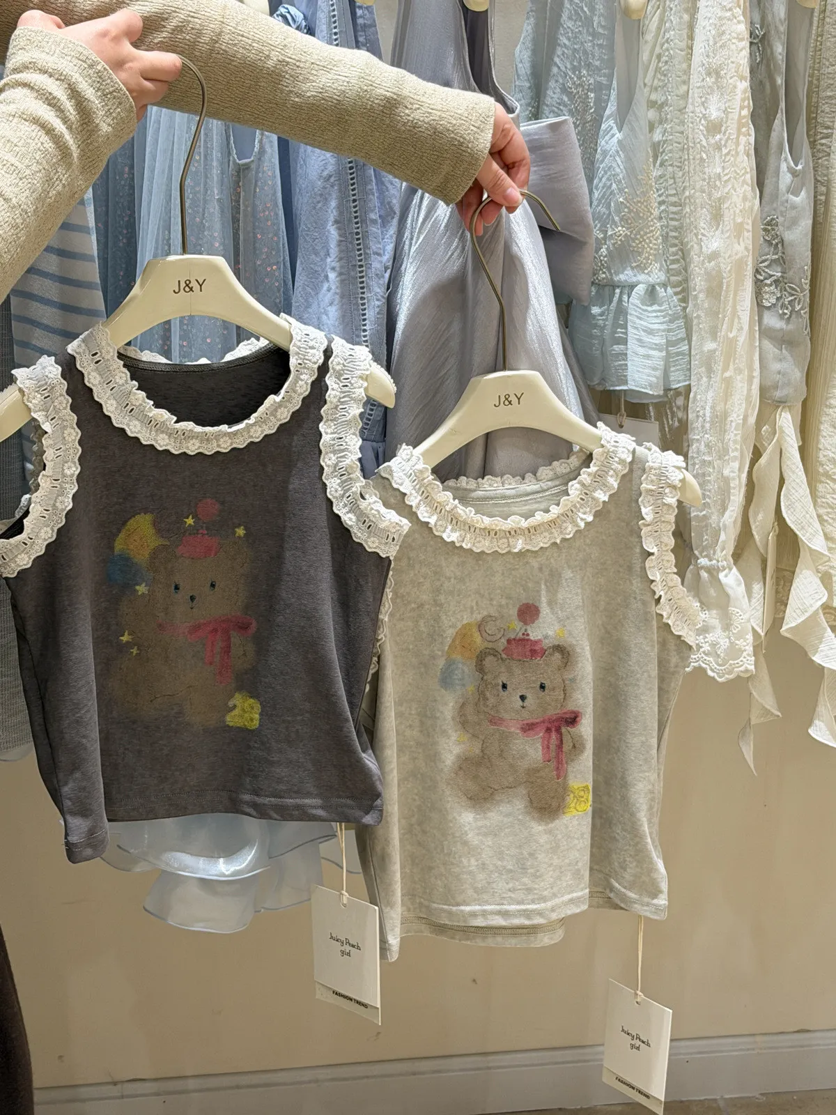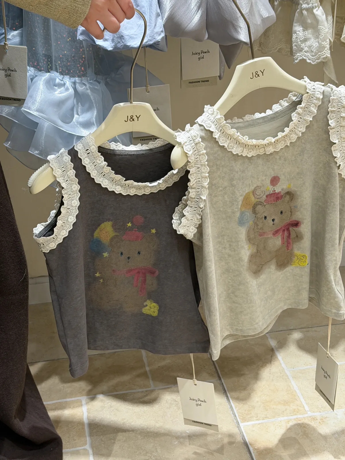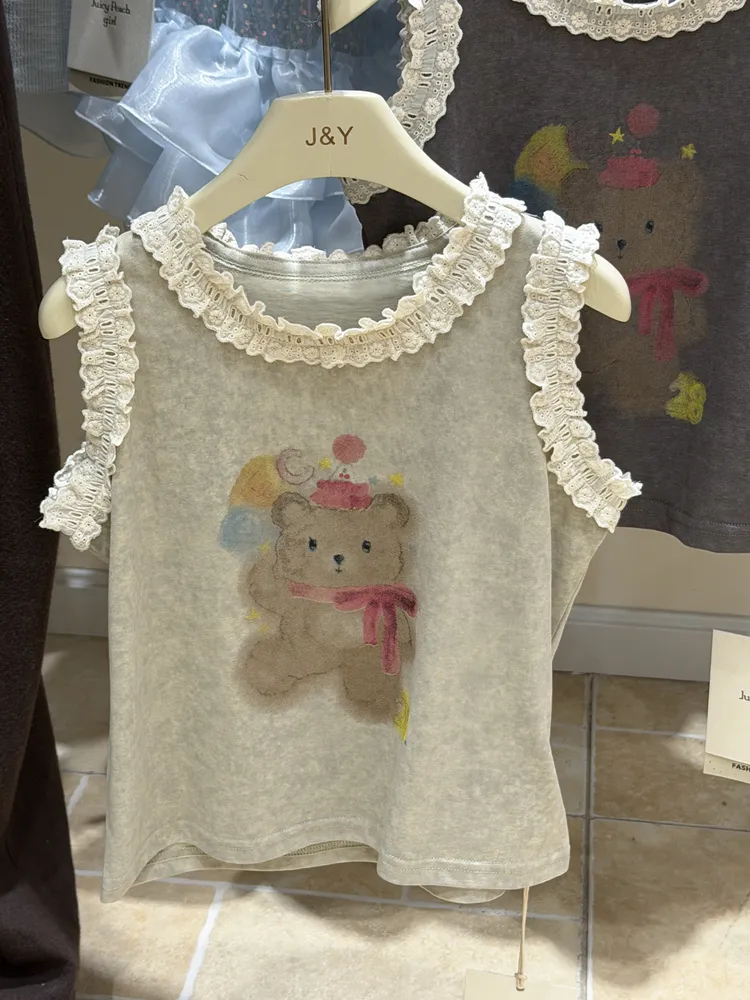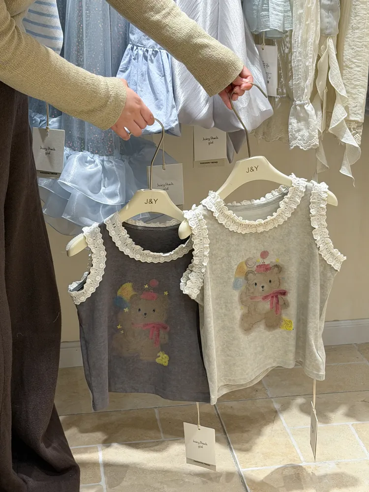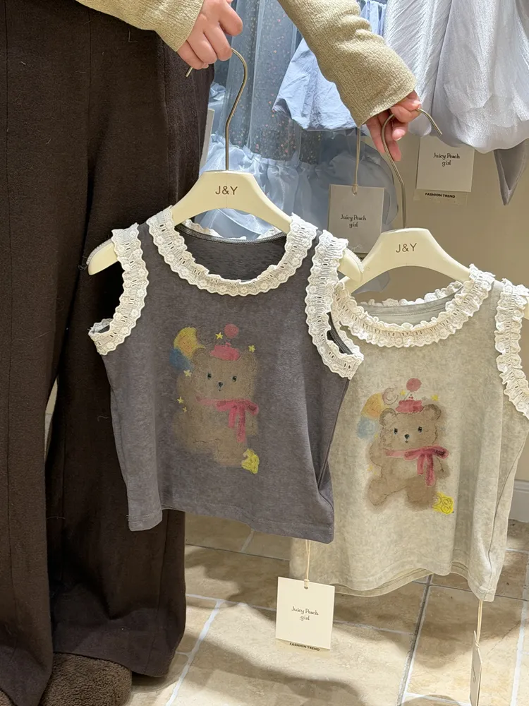 (90-150碼)可愛小熊印花蕾絲邊背心