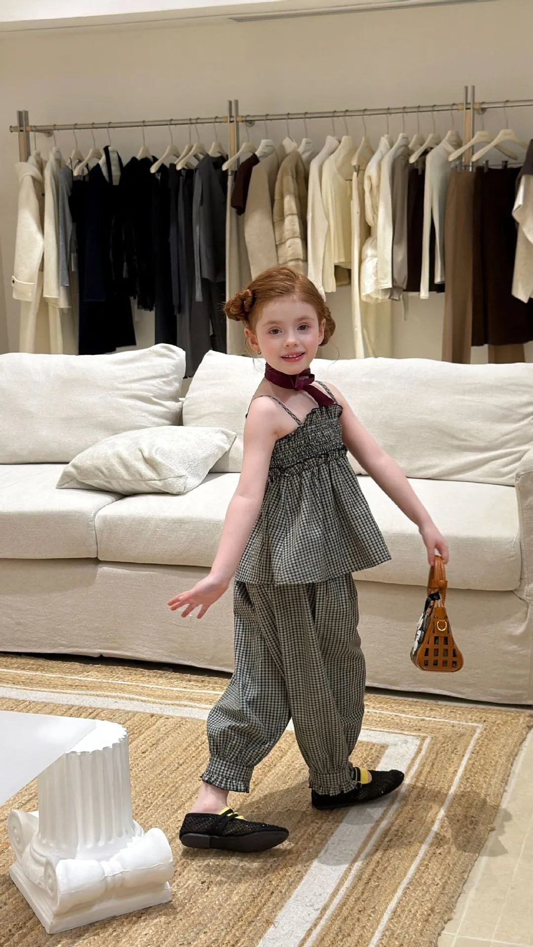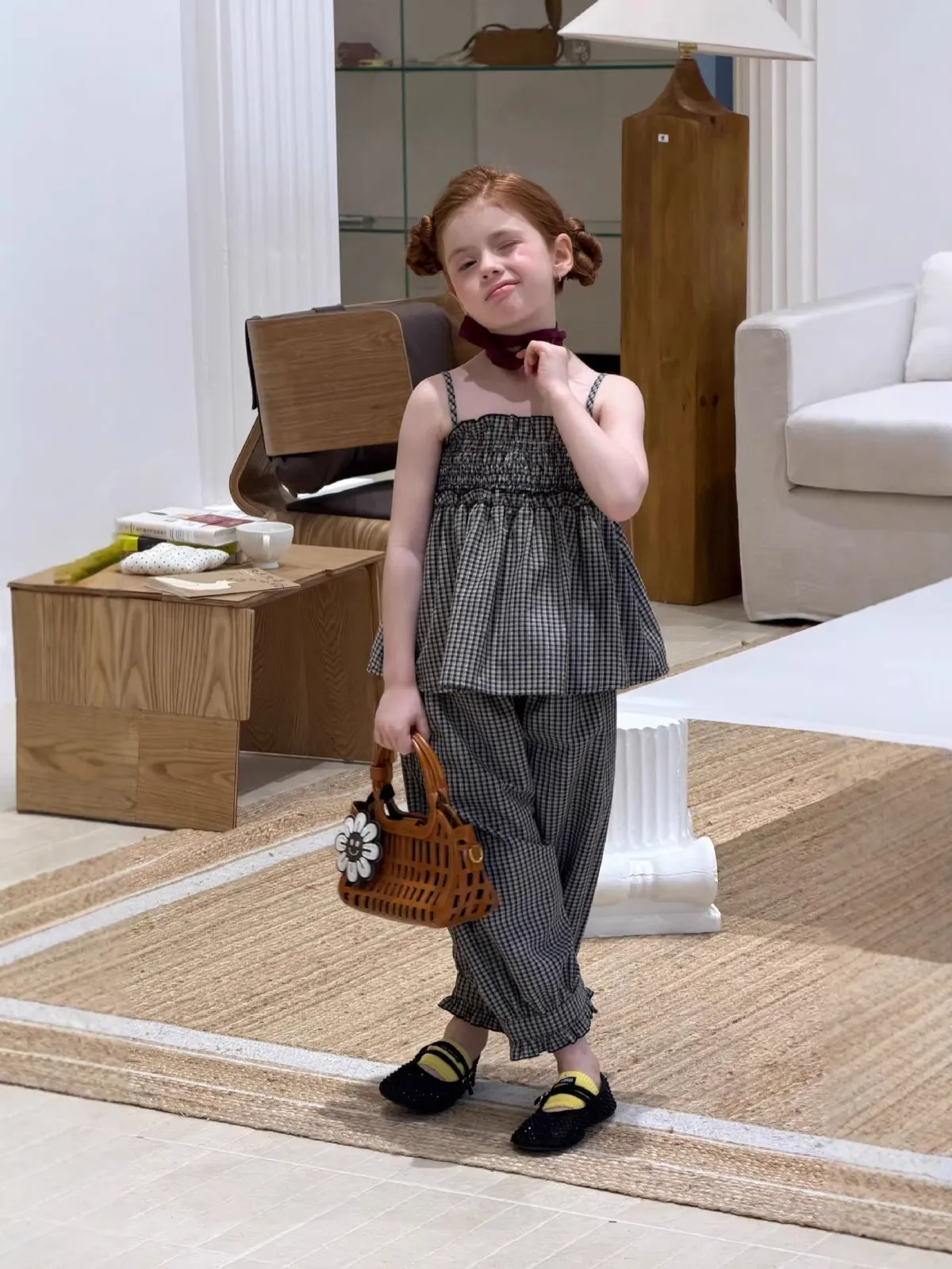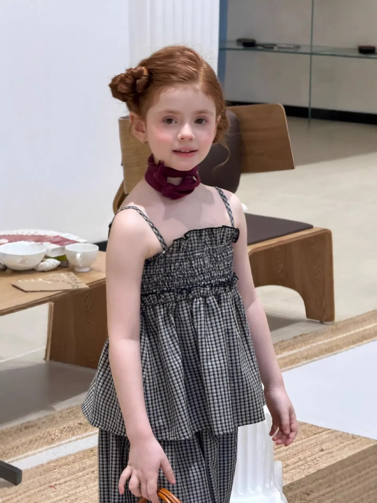 (90-150碼)度假感棉麻格紋套裝