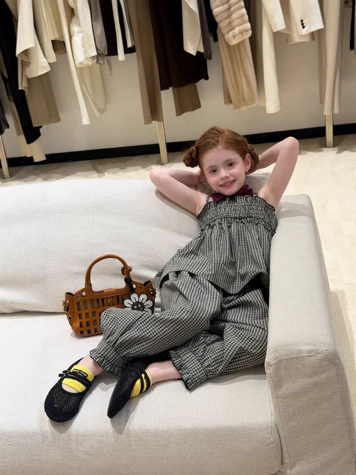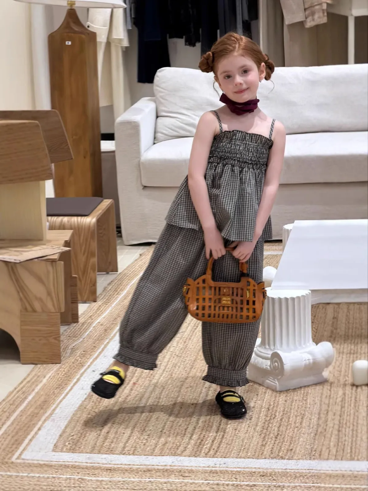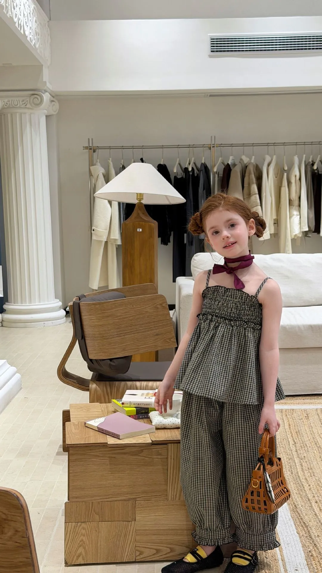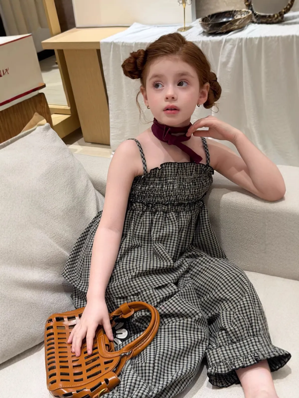 (90-150碼)度假感棉麻格紋套裝