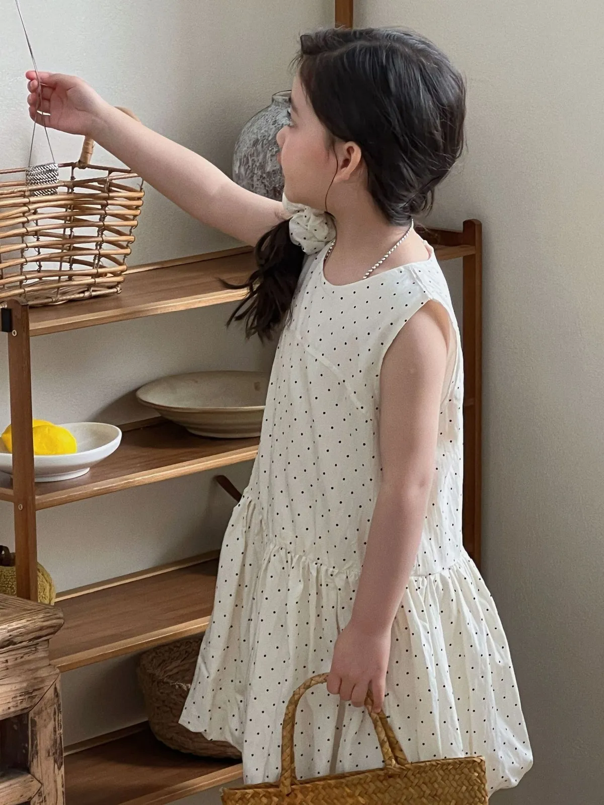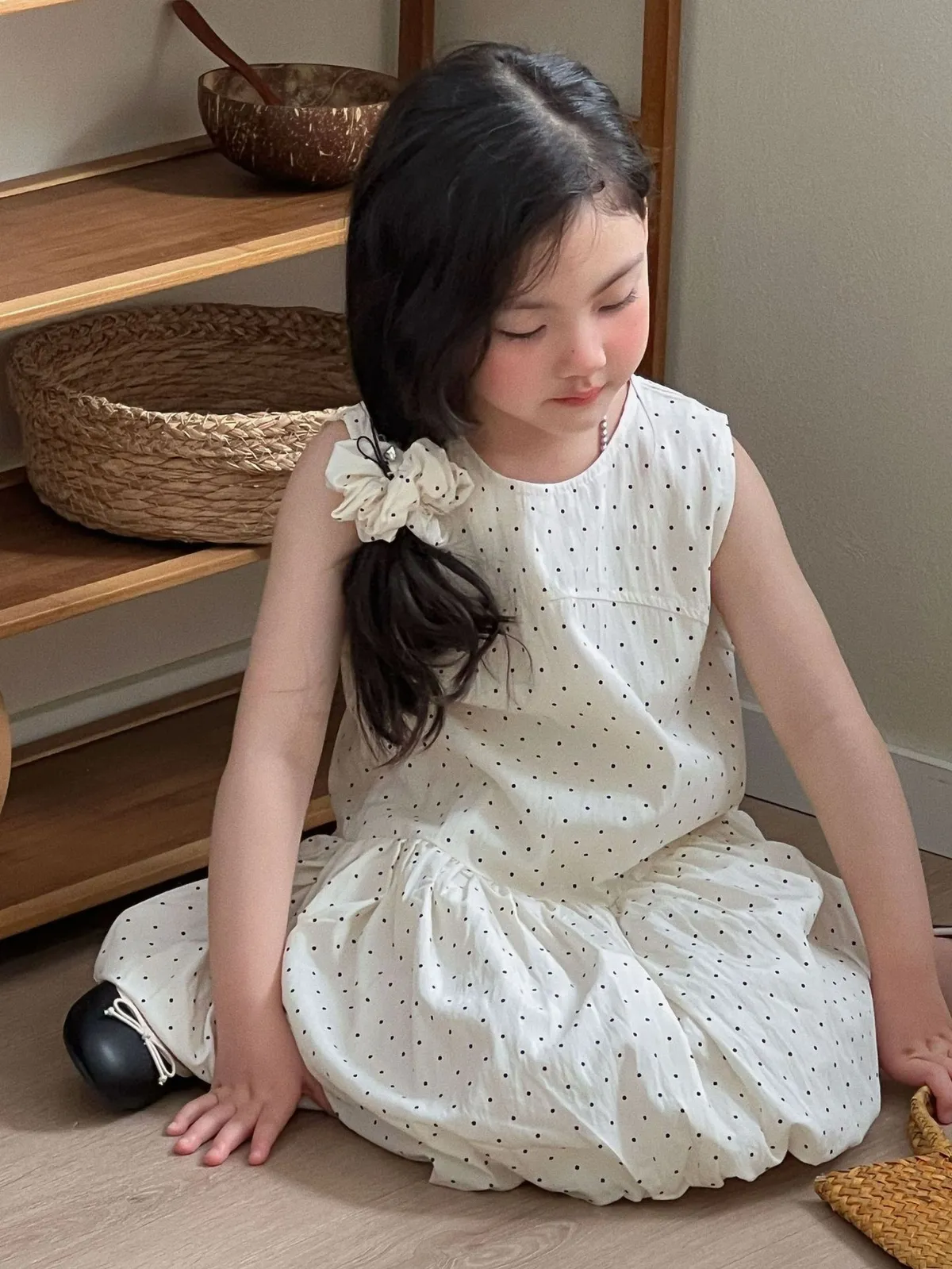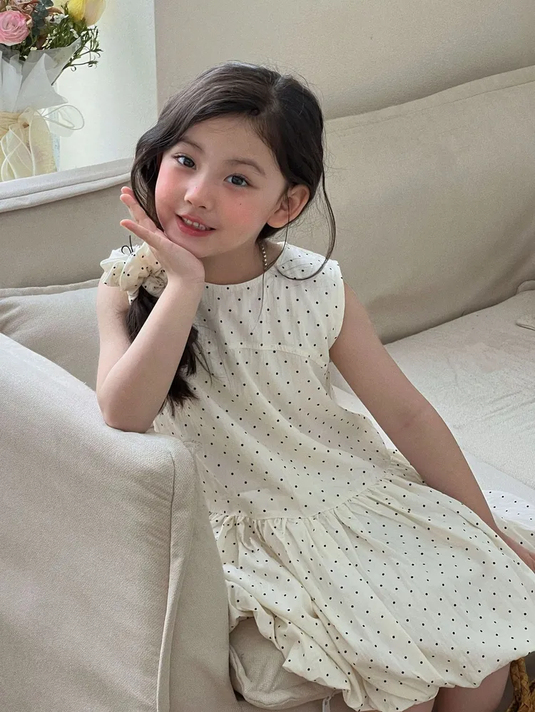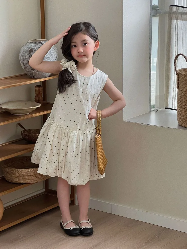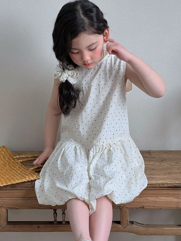 (90-140碼)森系點點印花連身裙-送髮圈