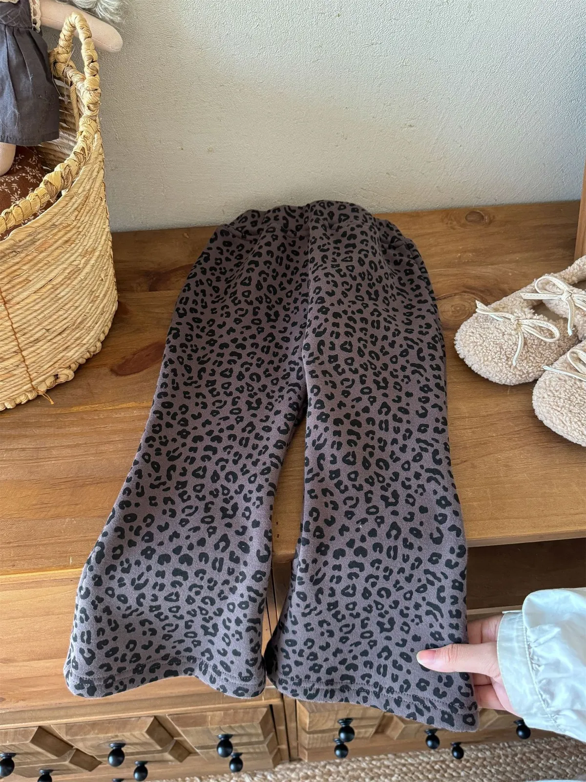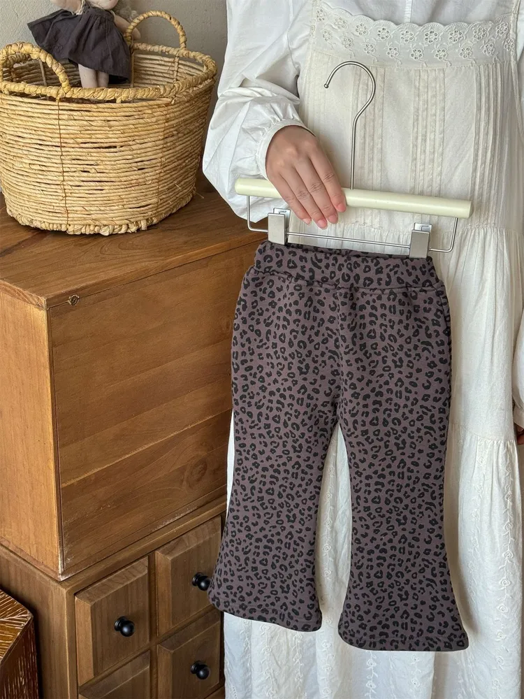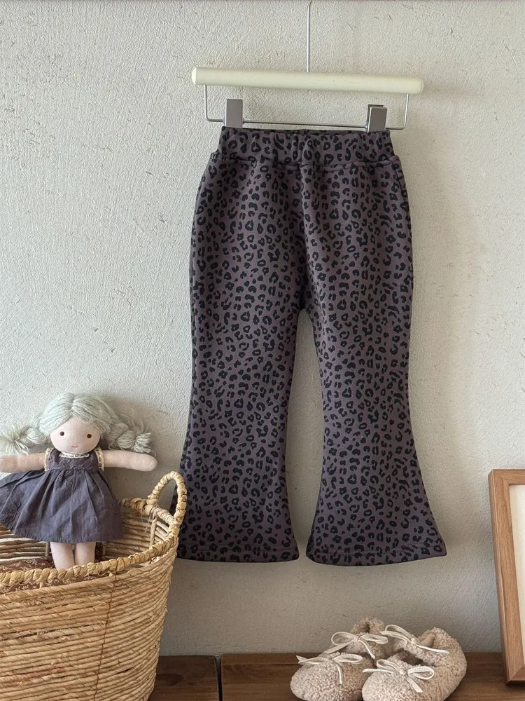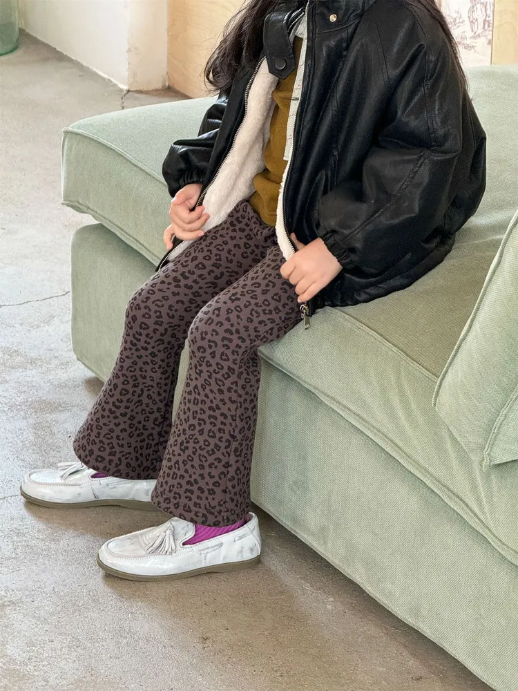 [90-130碼]加絨款#時髦豹紋喇叭褲